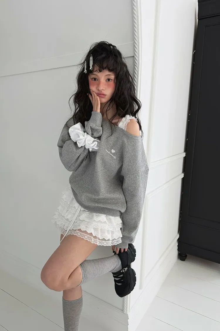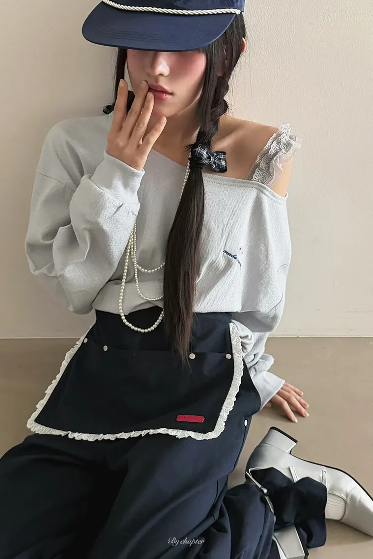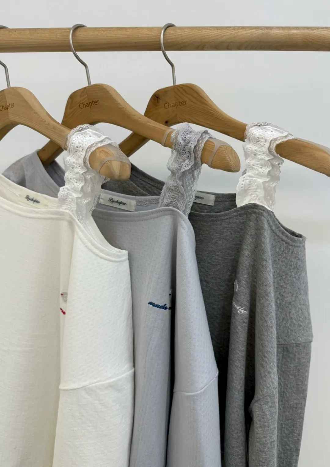 一看就很有質感又帶點甜美小巧思~ 非常柔軟的棉料自帶紋理感,單肩有棉蕾絲和網紗蕾絲層次拼接的肩帶設計 讓整體多了幾分精緻與浪漫感,穿起來輕鬆卻很有造型亮點 寬鬆版型,S-L妞都可以穿 胸口有小小刺繡和母貝小愛心,低調卻很加分 韓國熱銷色是白、藍