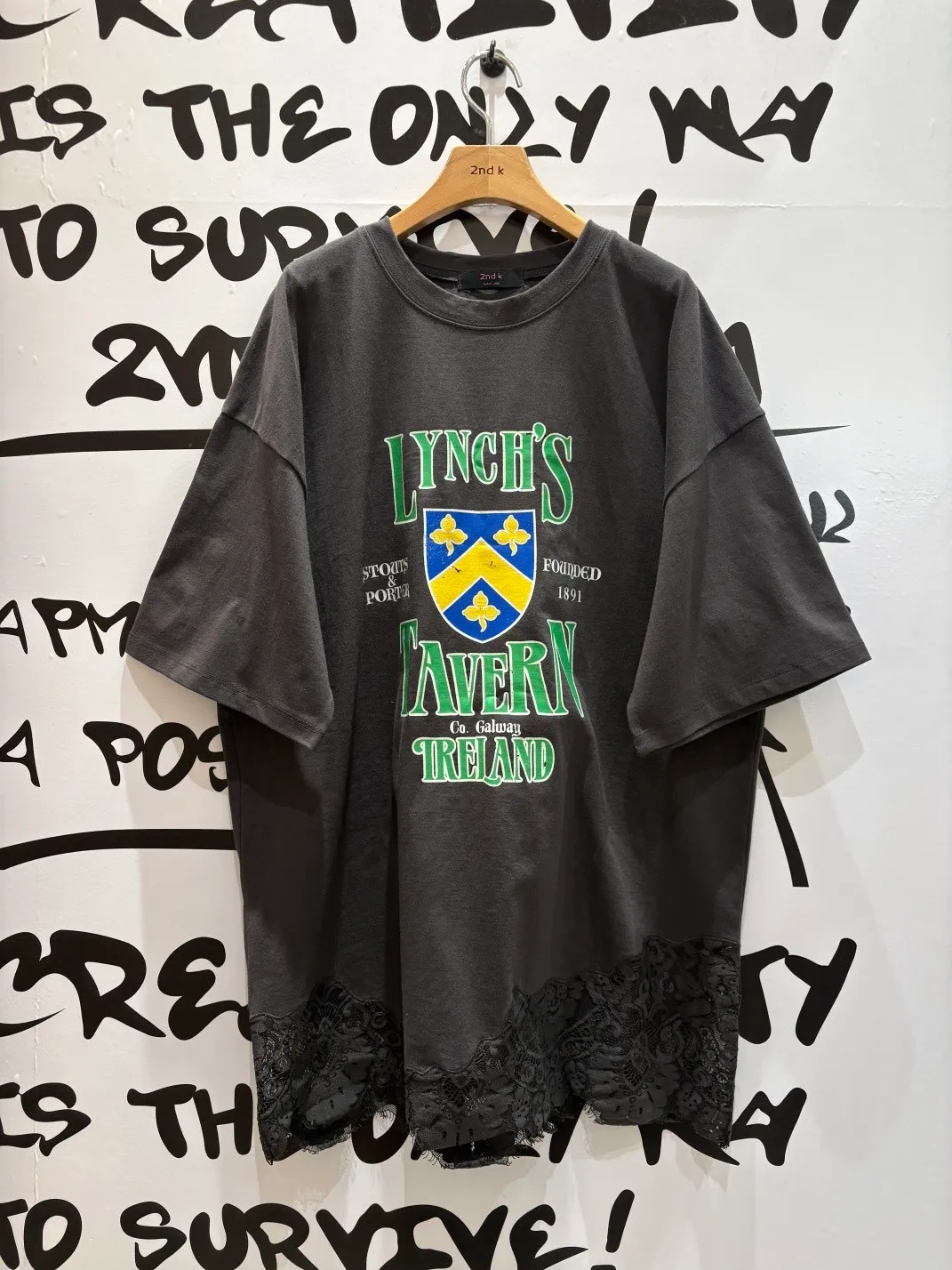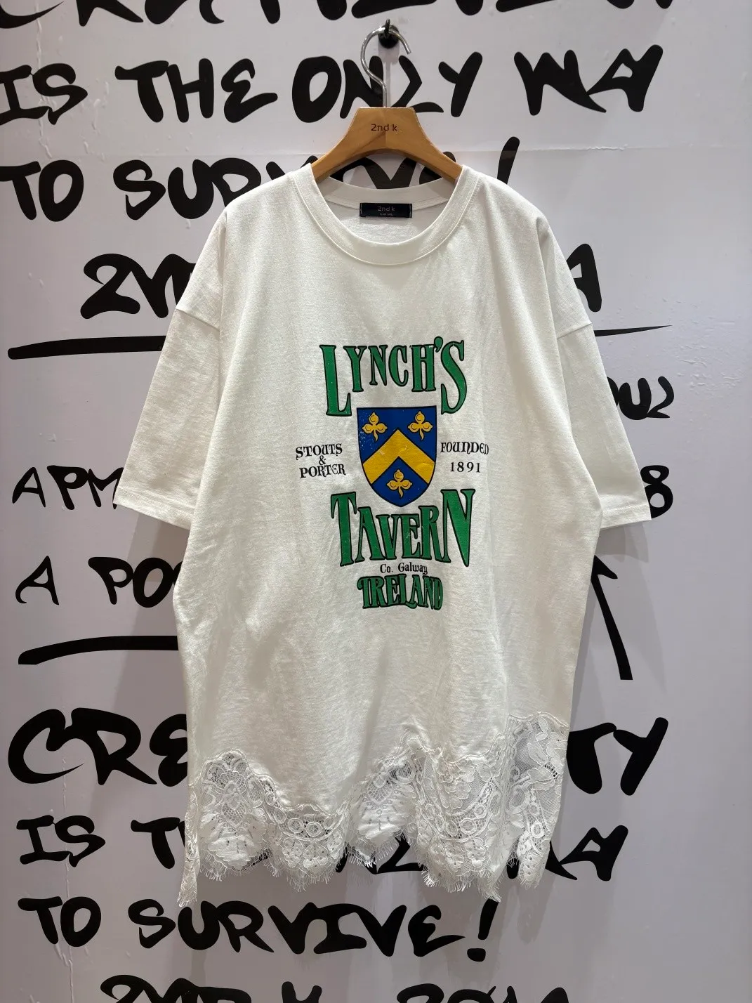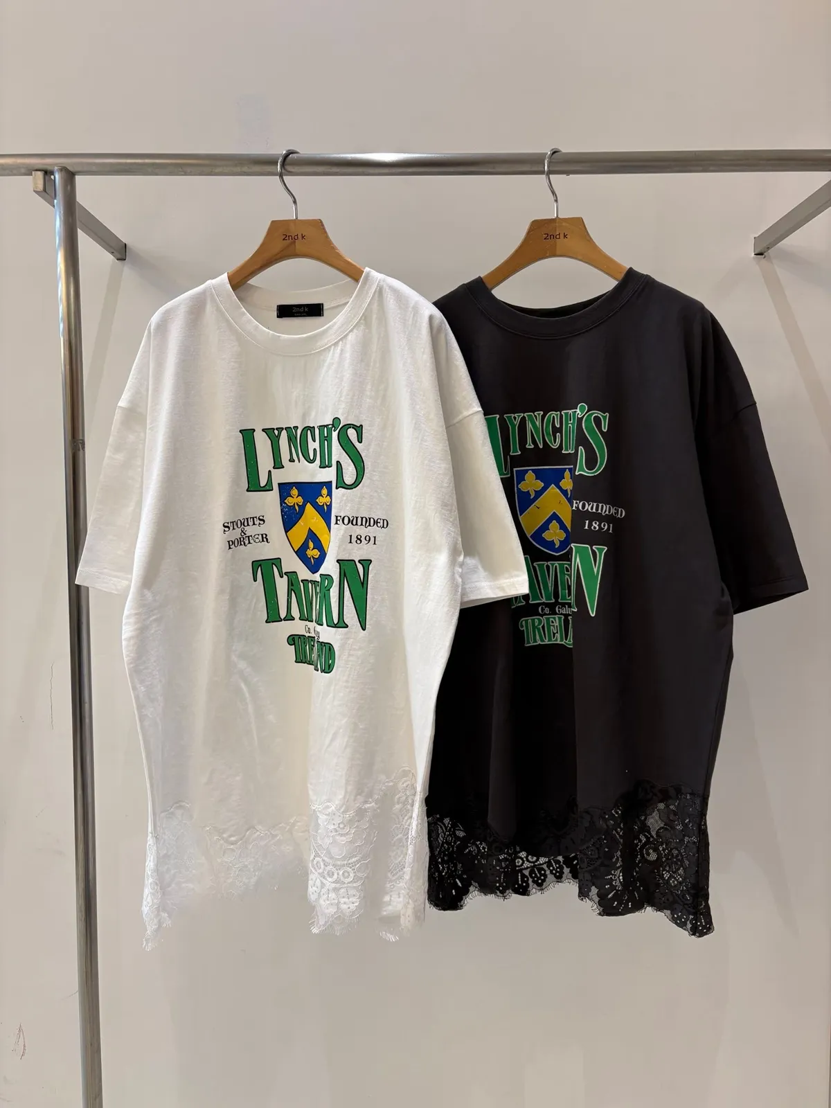 JYT22徽章日常蕾絲拼接落肩棉T上衣