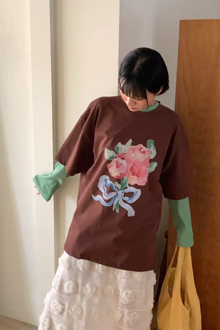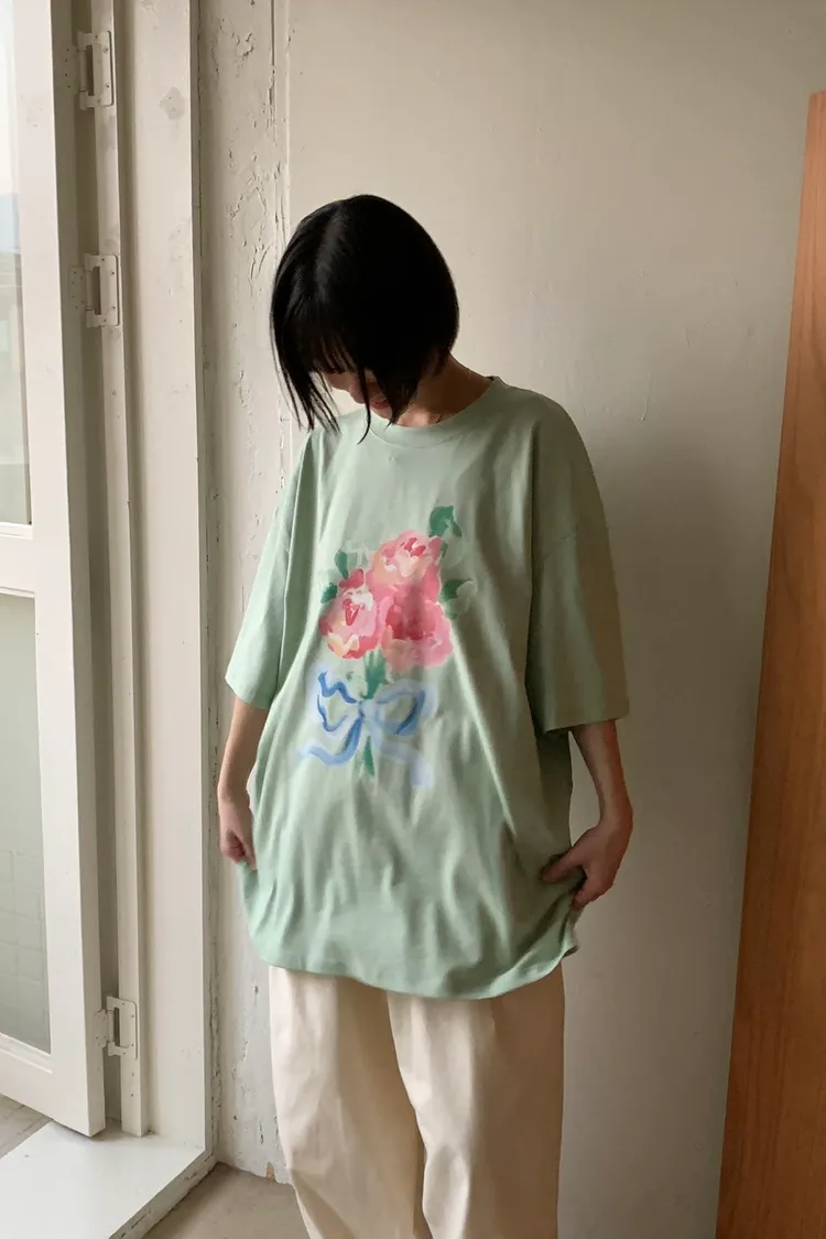 把藝術感穿上身🎨 棉料材質、落肩寬鬆蓋臀版型,自帶慵懶氛圍又超修飾 S-XL妞都可以穿 油畫風格的花束印花,色彩像被時間柔化過一樣溫柔有層次 隨便一穿都有種文藝又高級的氣質 衣襬兩側還貼心做了開衩設計,走動時線條更輕盈 不會整件卡卡的,也讓下身搭配更有變化感 韓國熱銷色是綠色