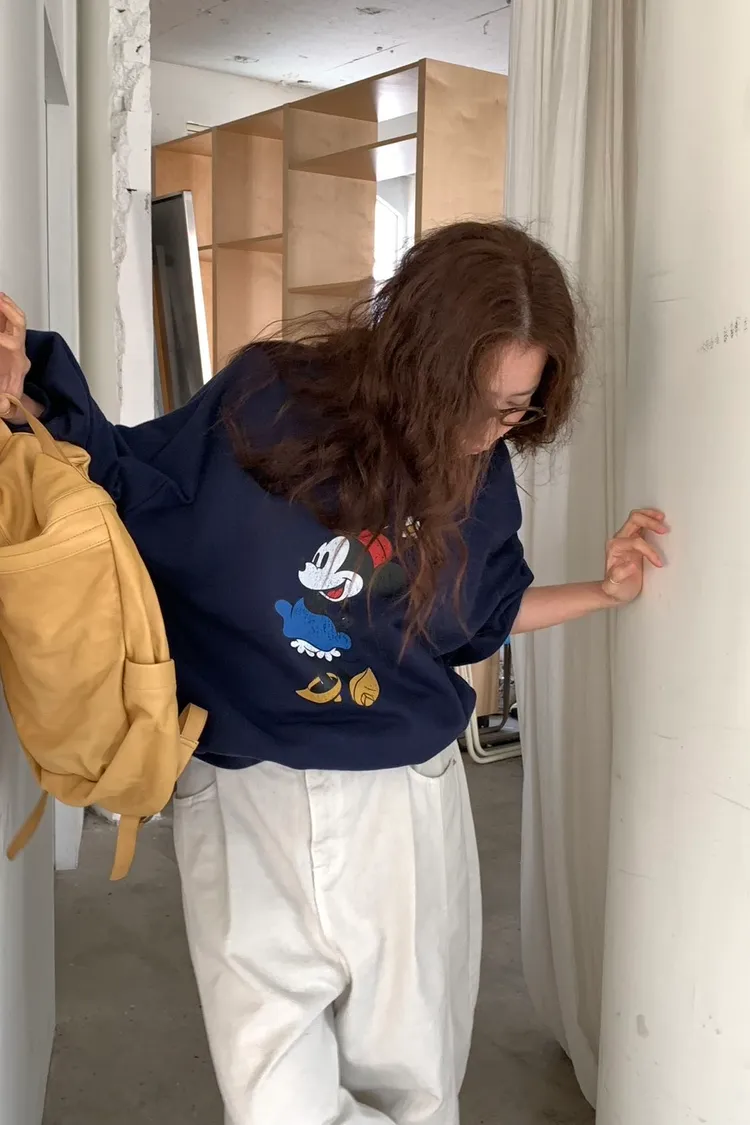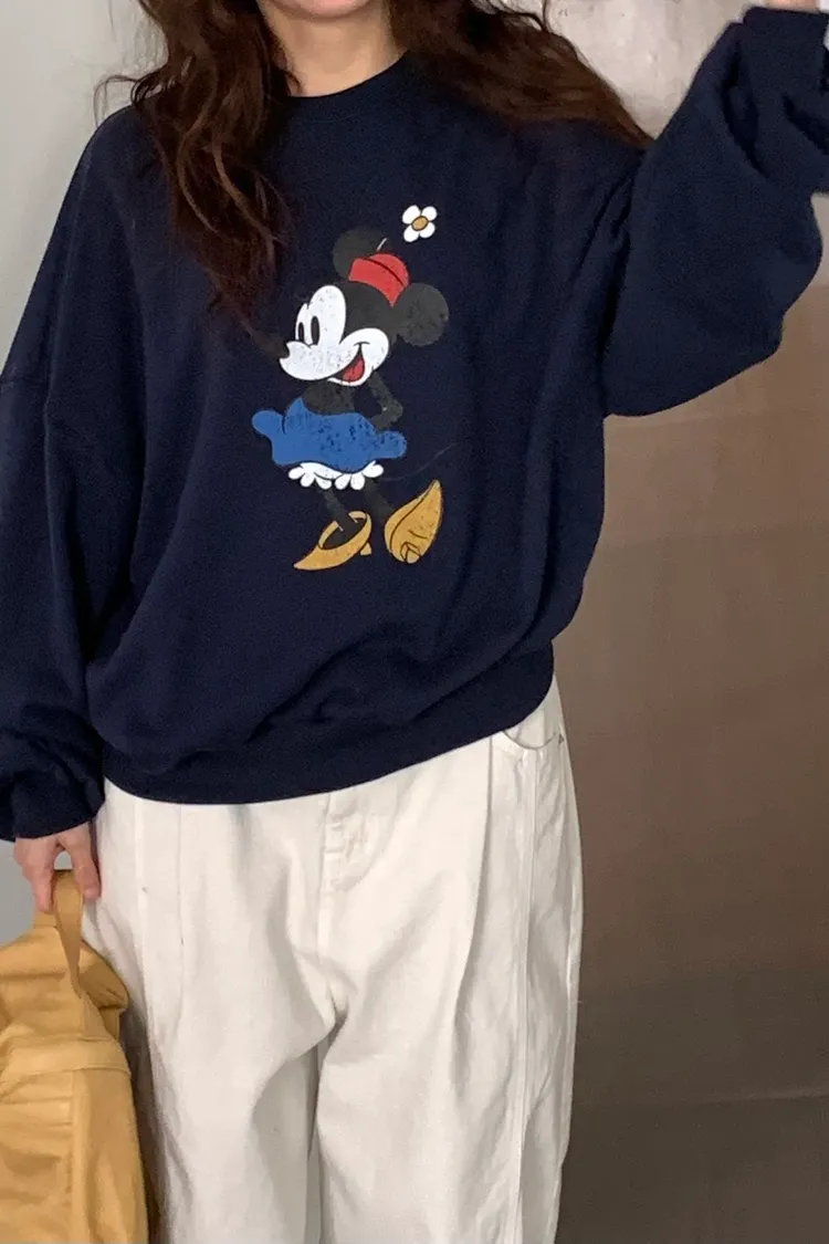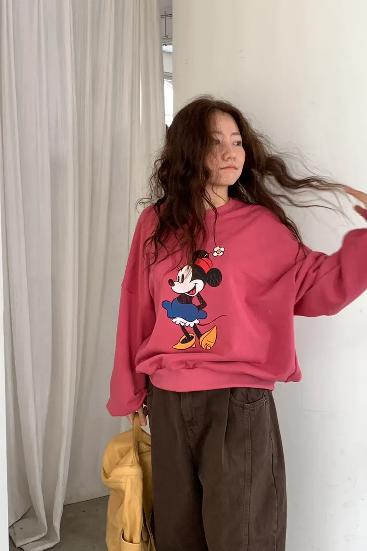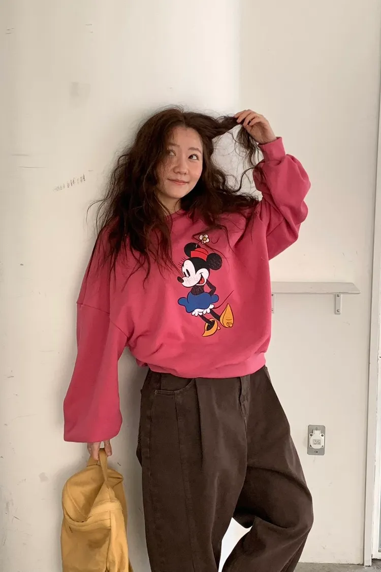 讓人一秒回到少女心時代🎀 迪士尼正版授權 米妮印花,把經典可愛變成日常穿搭的一部分甜而不膩、童趣中帶點時髦感 圖案細節精緻不幼稚,是那種大人也能安心駕馭的可愛 棉料材質、落肩寬鬆版型自帶慵懶感,S-XL妞都可以穿