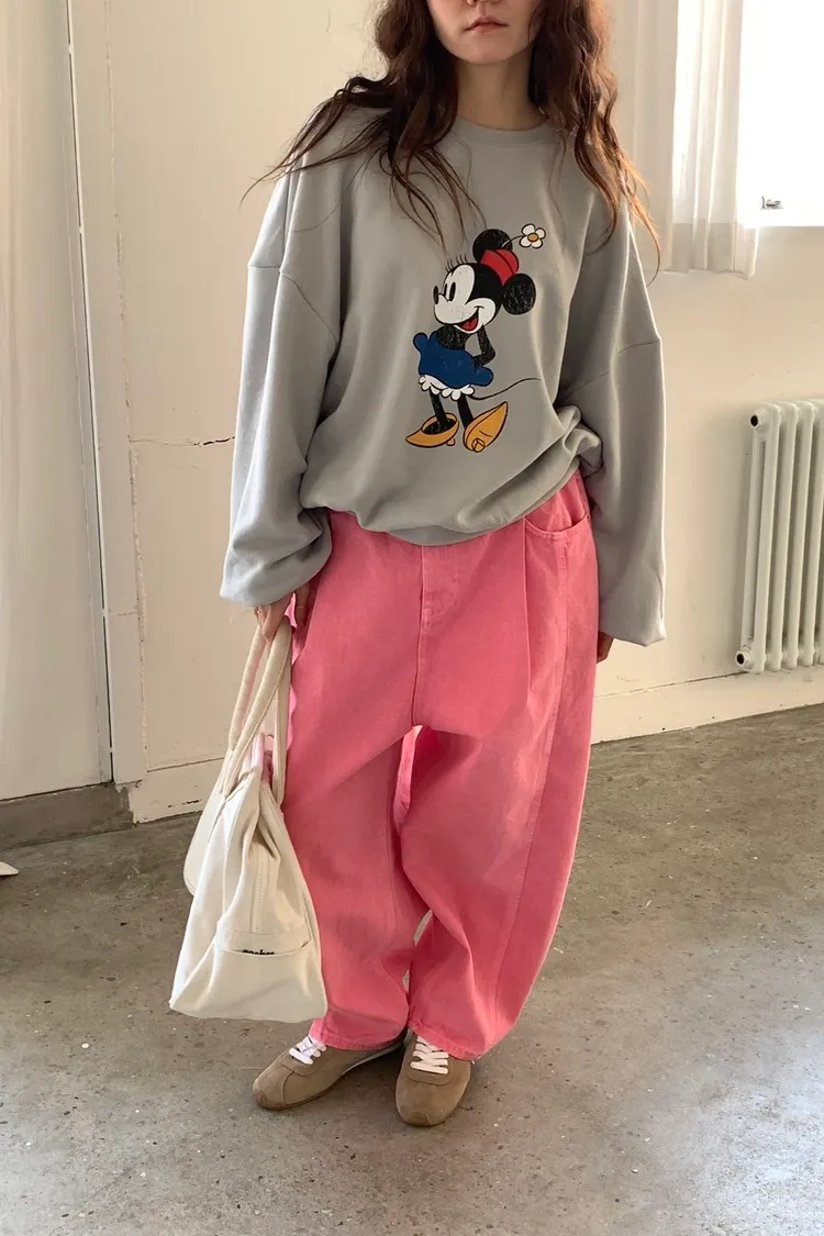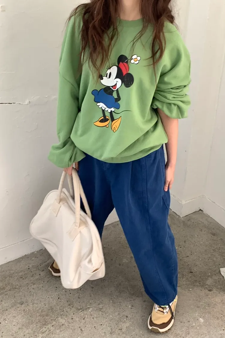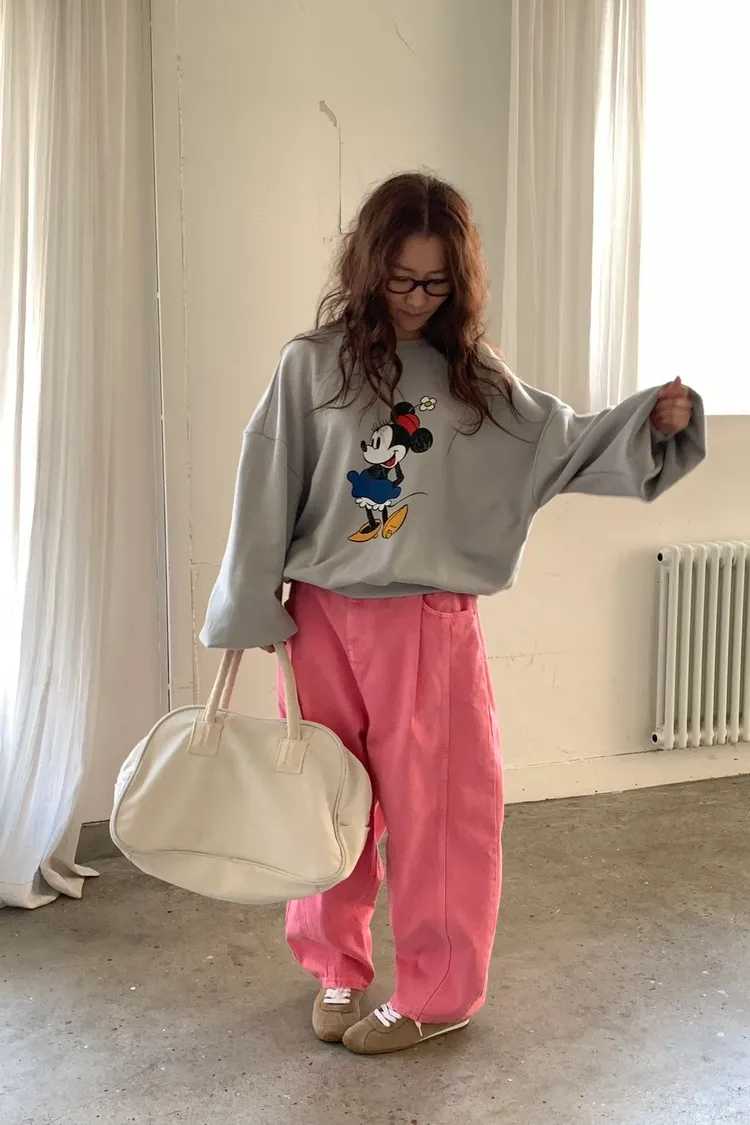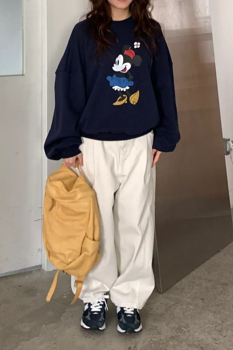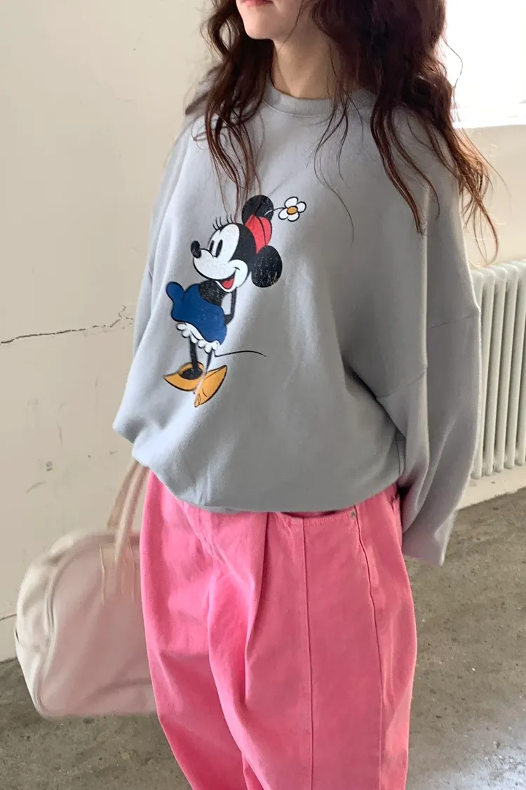 讓人一秒回到少女心時代🎀 迪士尼正版授權 米妮印花,把經典可愛變成日常穿搭的一部分甜而不膩、童趣中帶點時髦感 圖案細節精緻不幼稚,是那種大人也能安心駕馭的可愛 棉料材質、落肩寬鬆版型自帶慵懶感,S-XL妞都可以穿