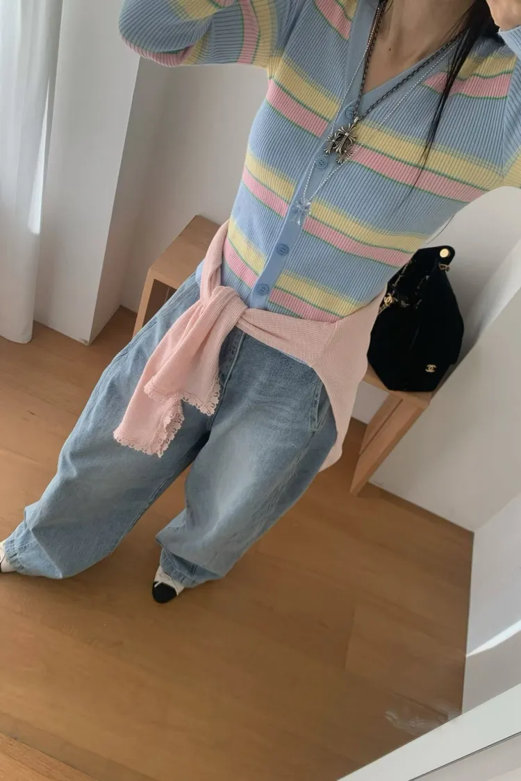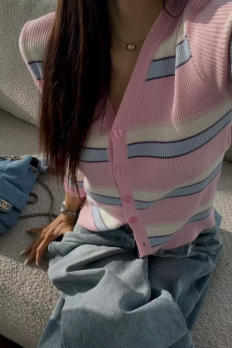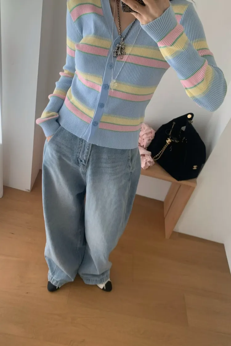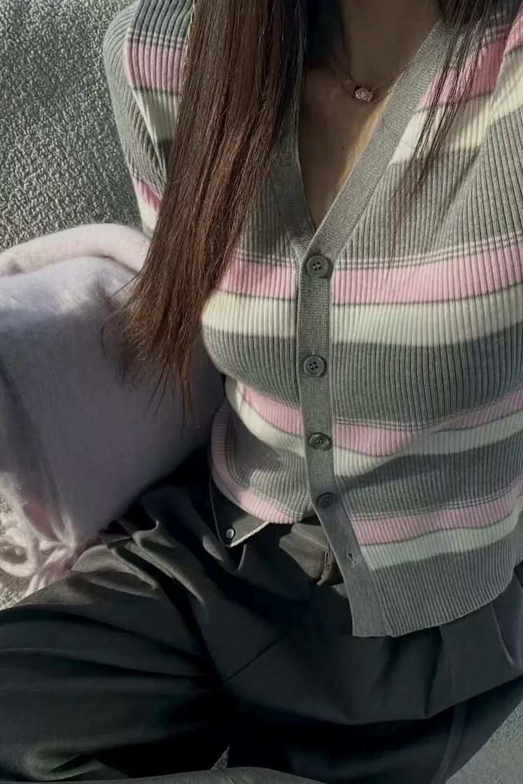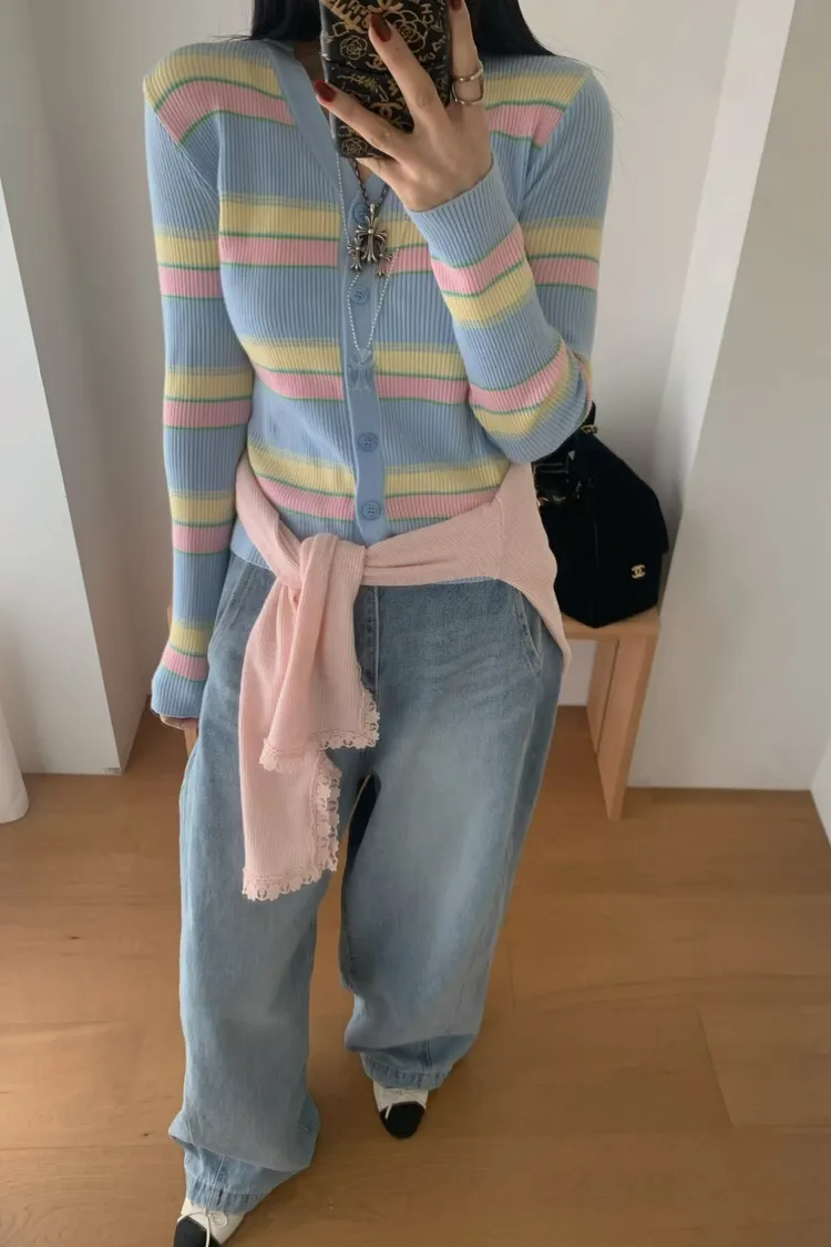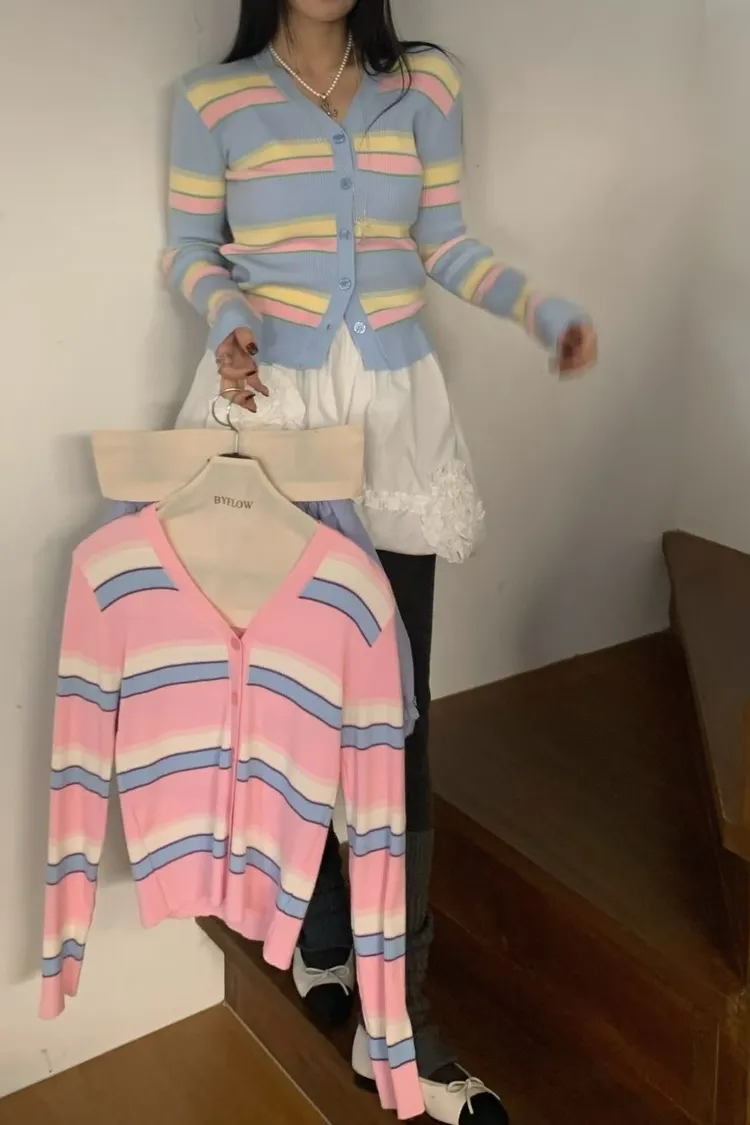 JYU01粉彩條紋針織外套