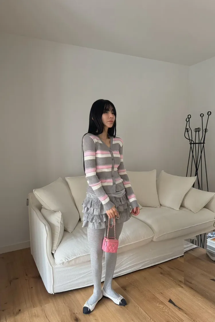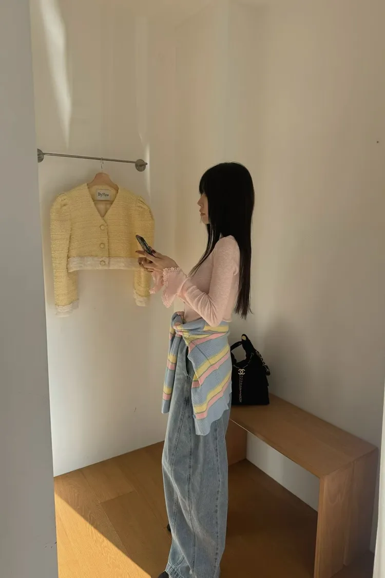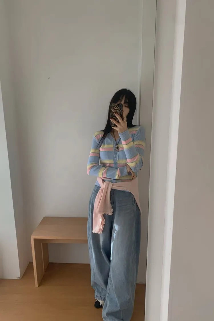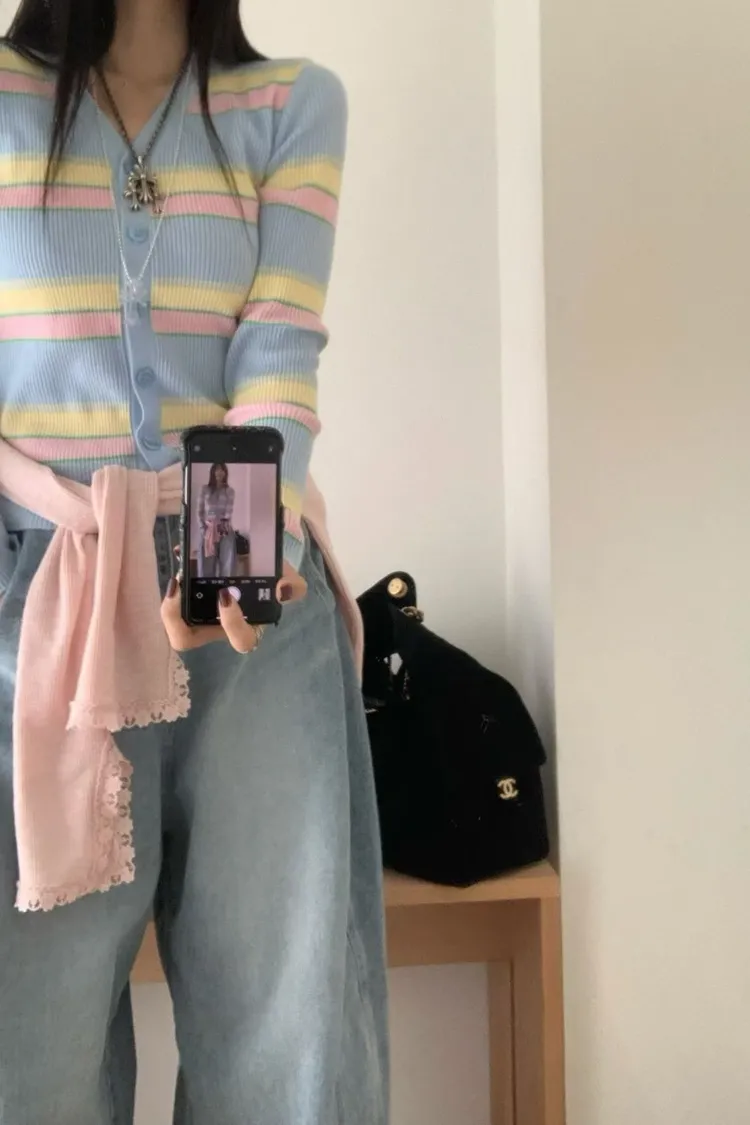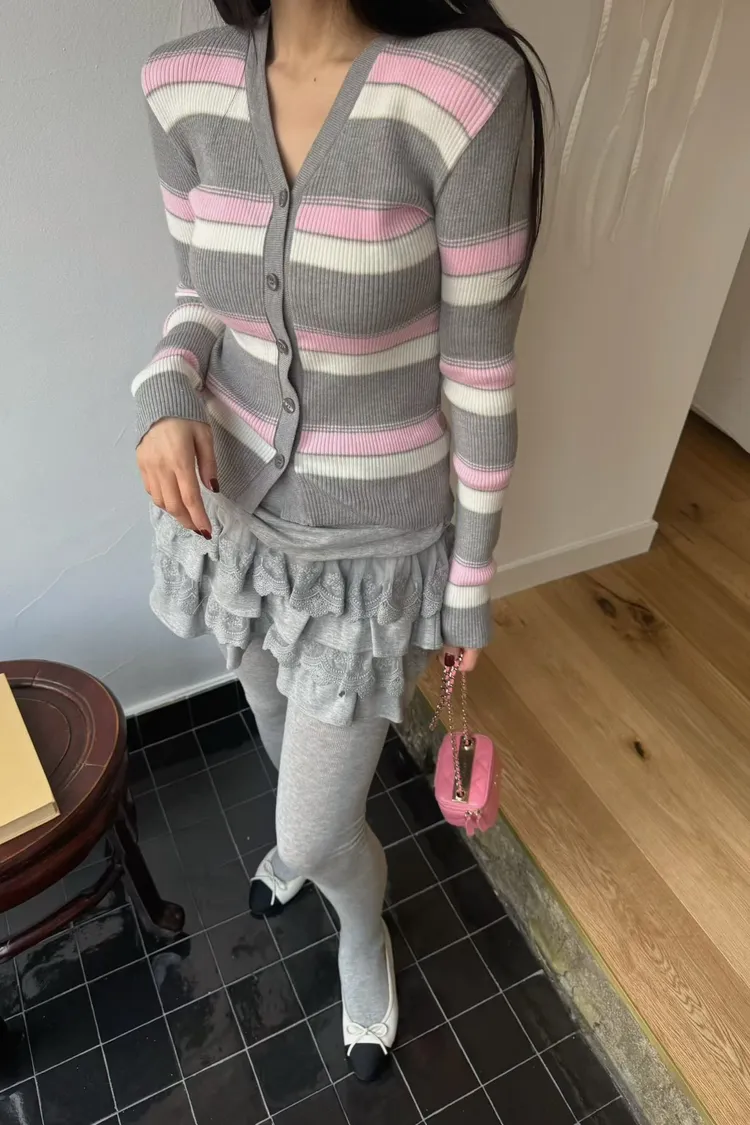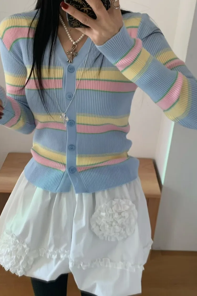 JYU01粉彩條紋針織外套