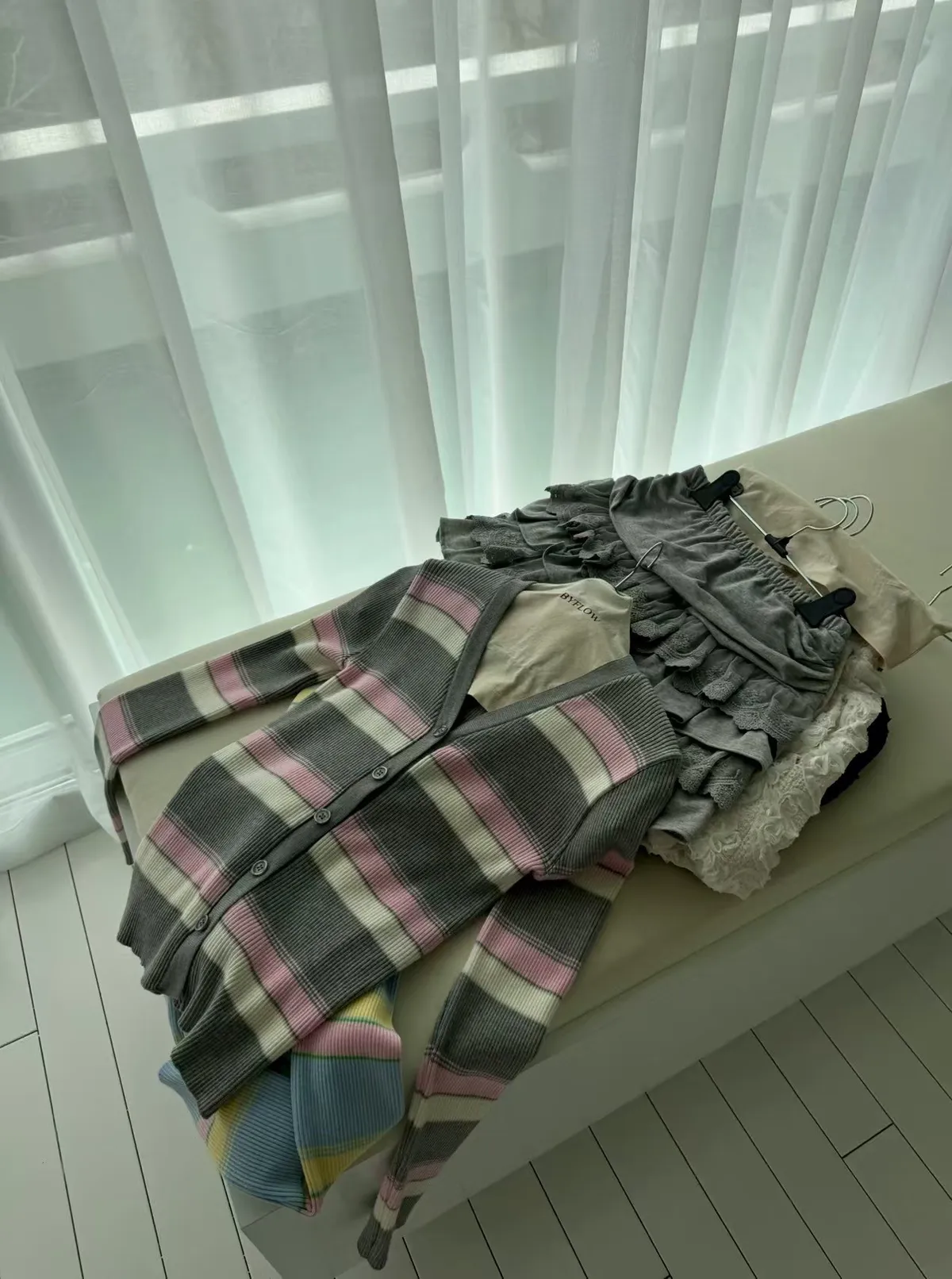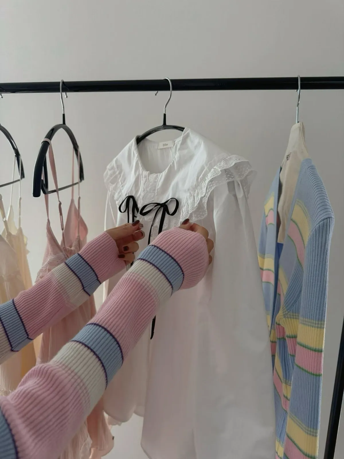 直坑條紋搭配嫩色系拼色粗細條紋