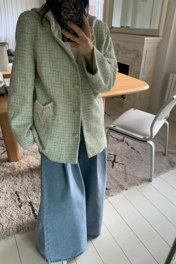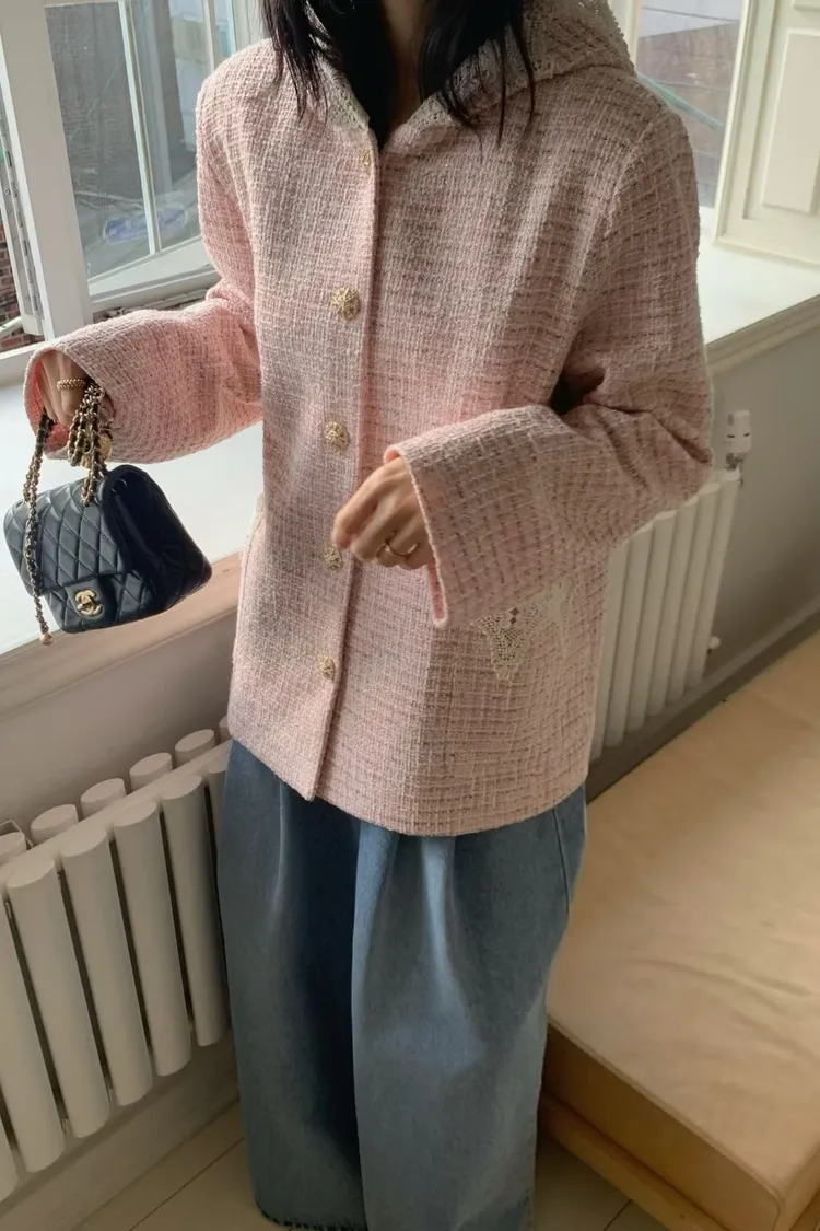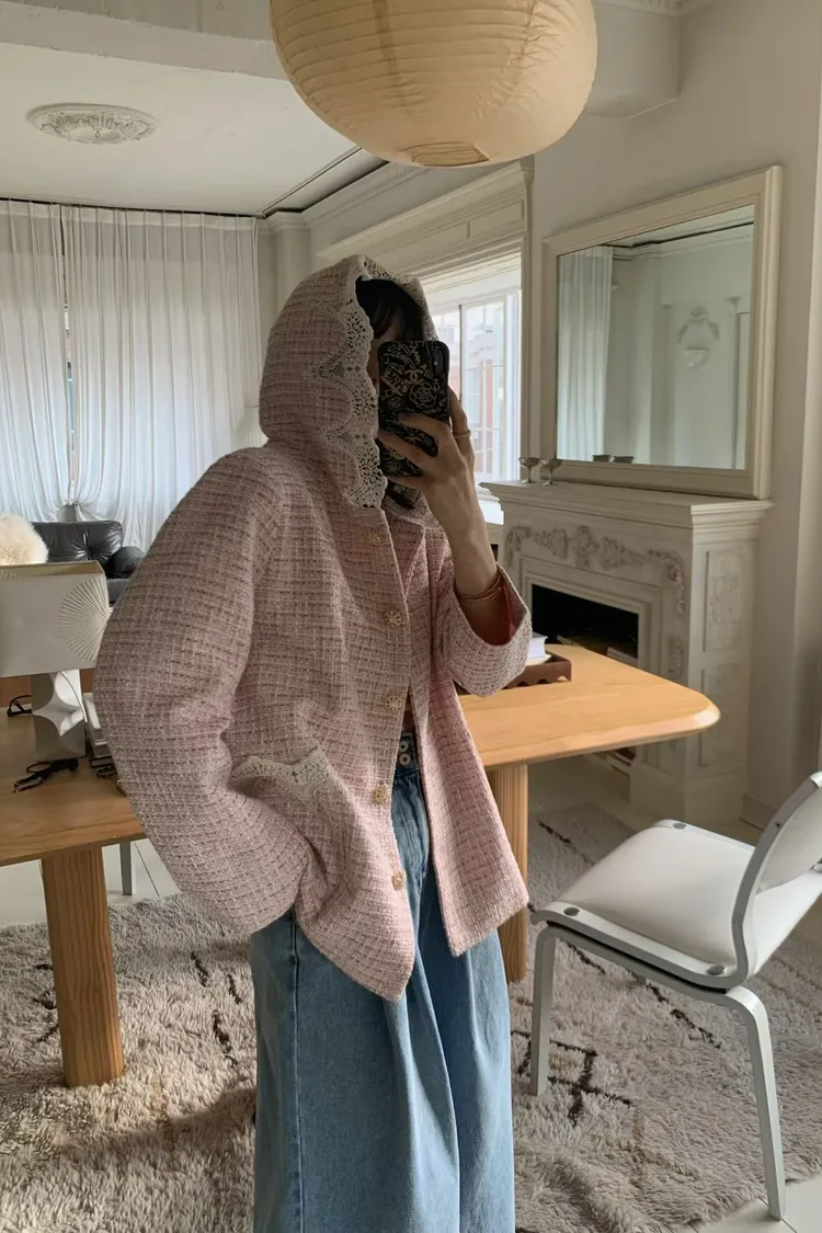 小香風軟呢面料自帶高級濾鏡,連帽設計超特別