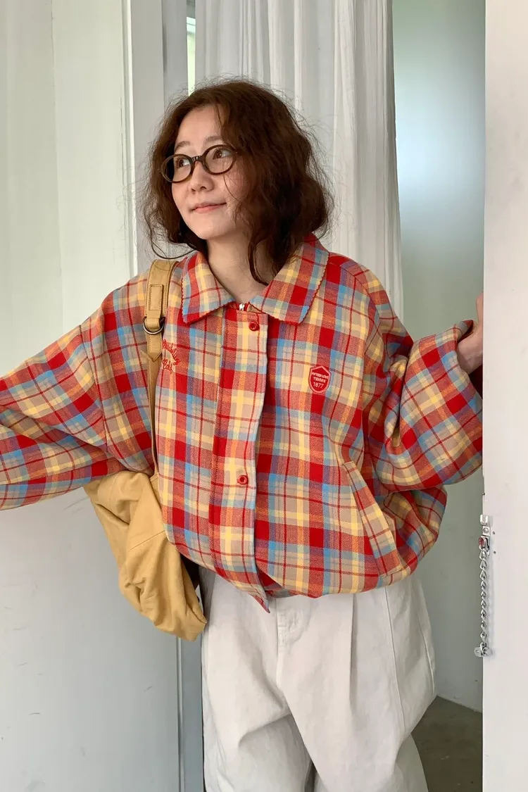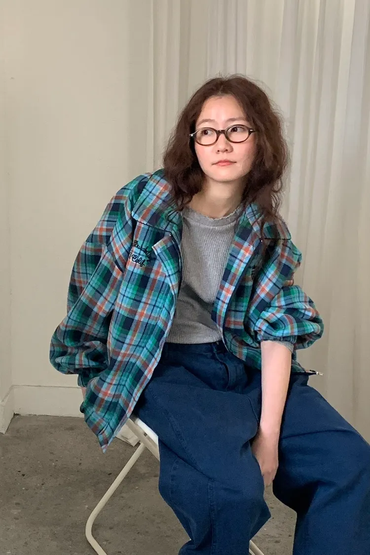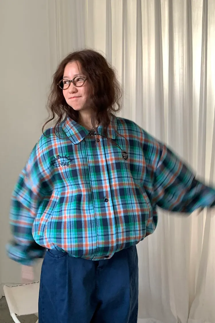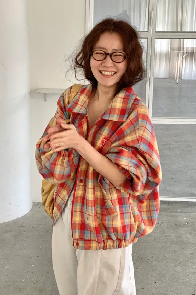 撞色格紋面料讓整體更有層次,不是乖乖牌那種單調格紋