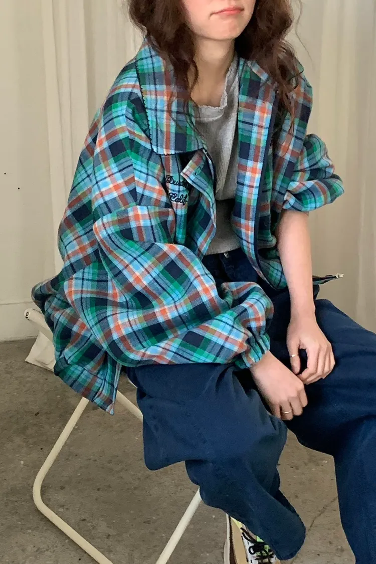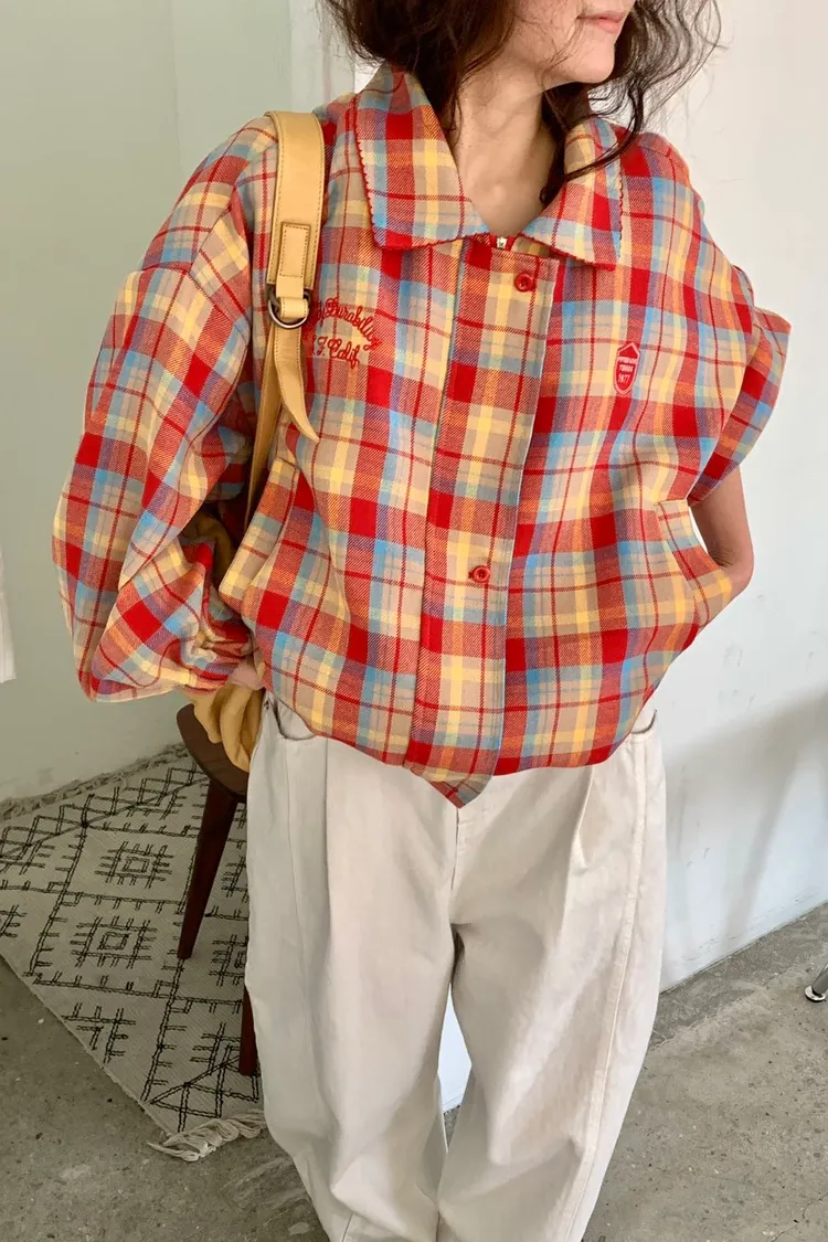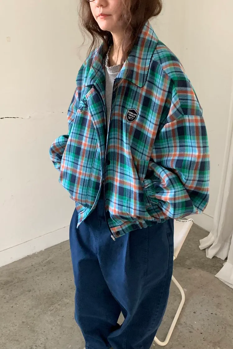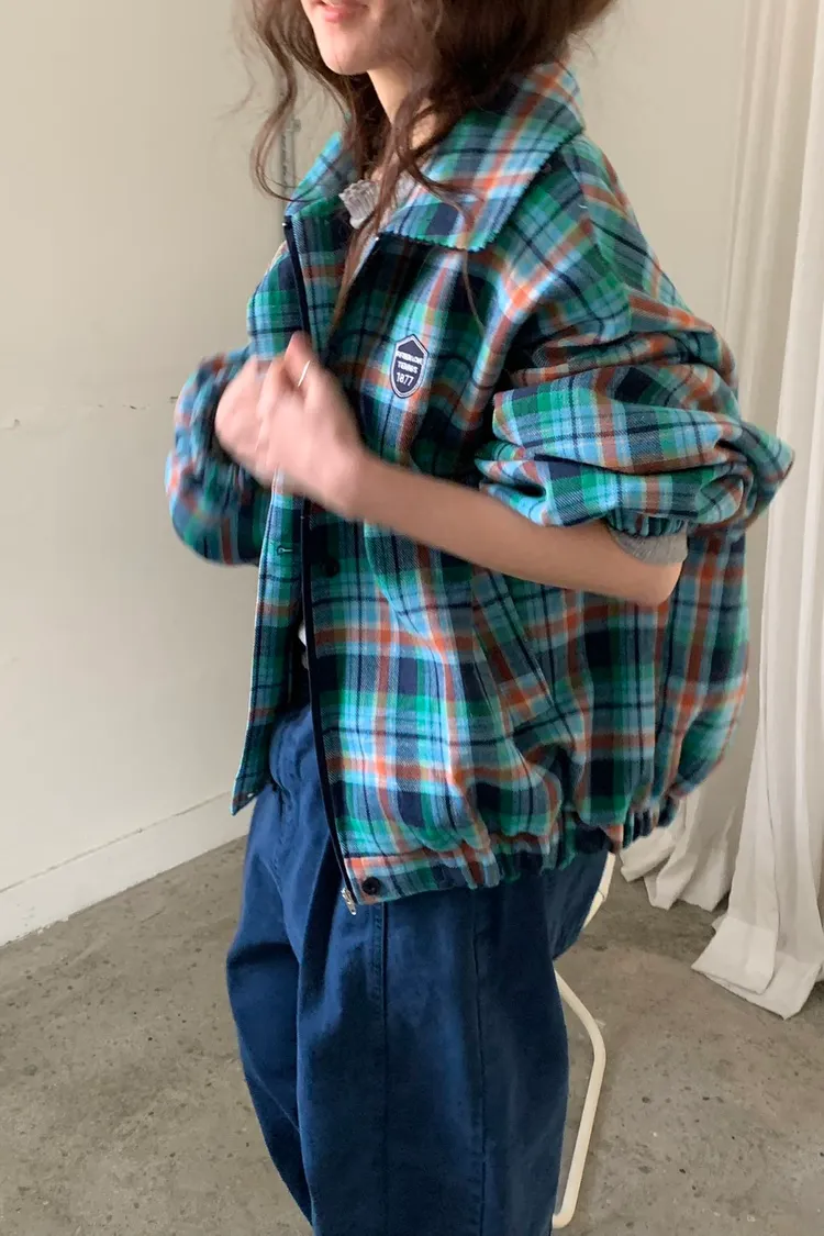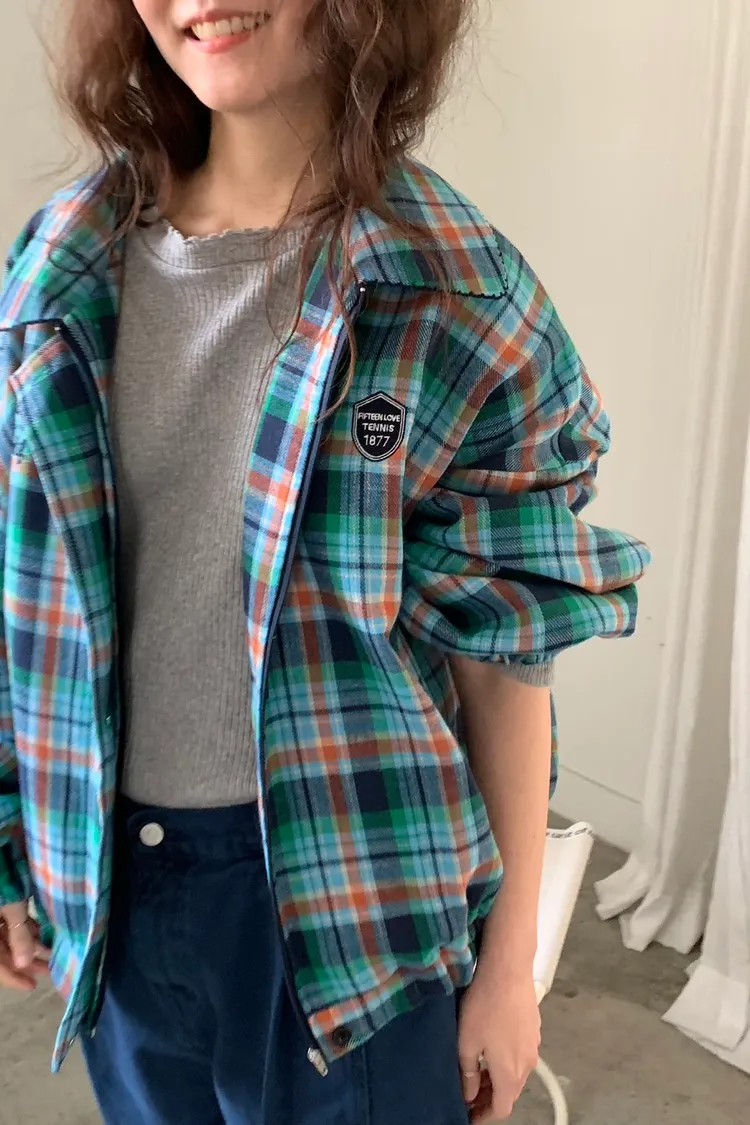 撞色格紋面料讓整體更有層次,不是乖乖牌那種單調格紋