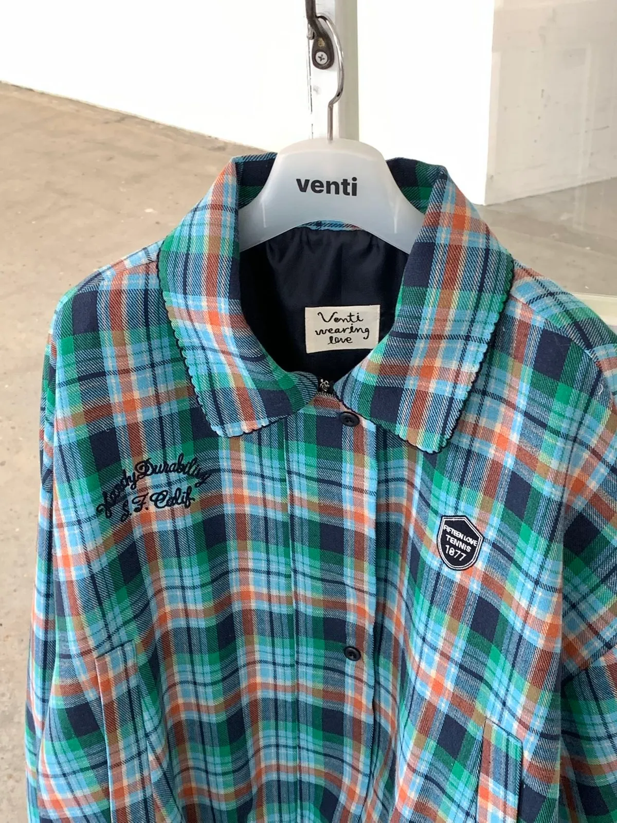 胸前左右不對稱也很有巧思,一邊是字母刺繡、另一邊是刺繡布章