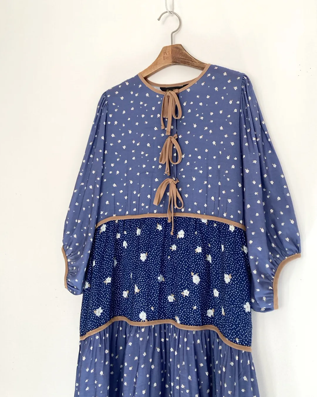 兩種不同的印花巧妙拼接,層次感滿滿,讓整件洋裝看起來更有設計感