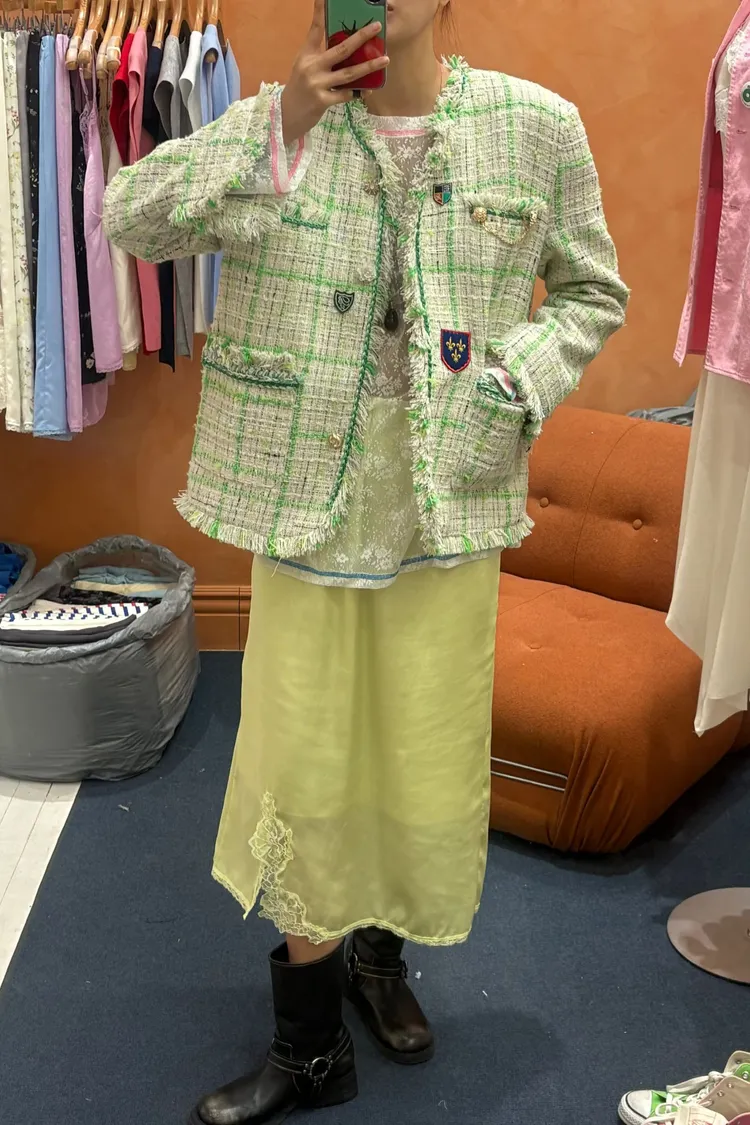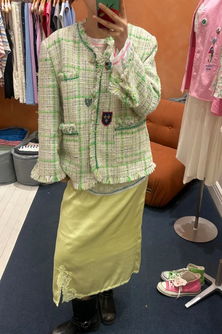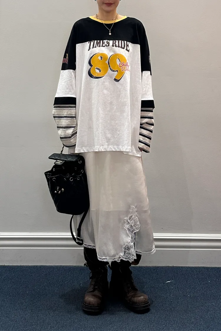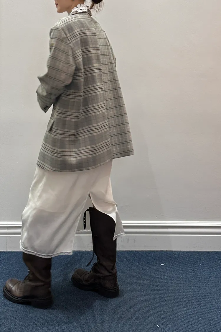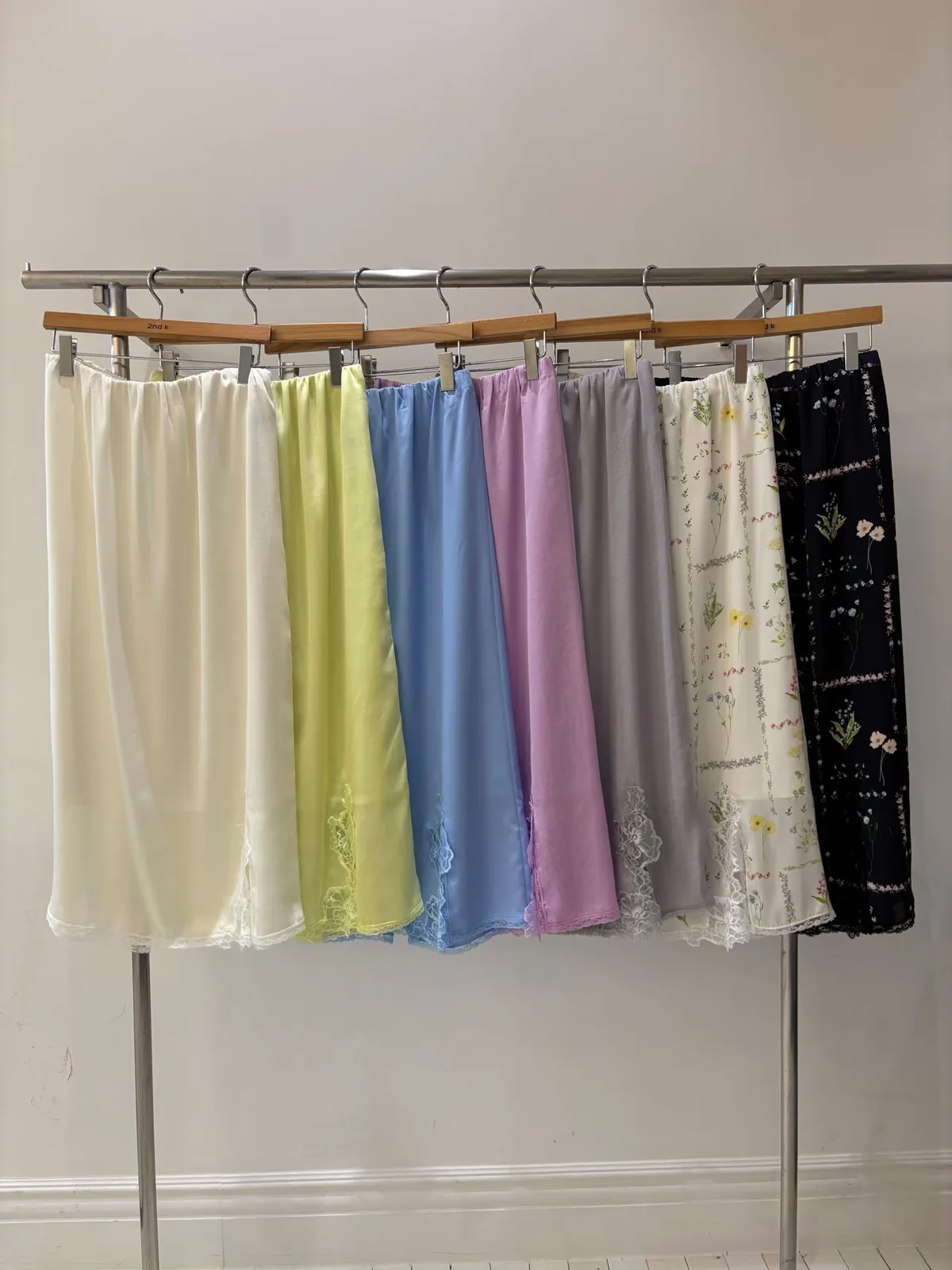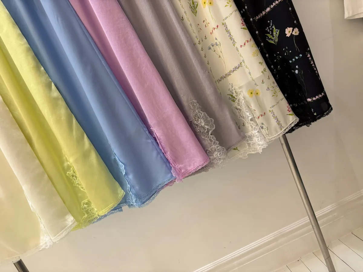 穿上就是溫柔又帶點小性感的氛圍 滑溜溜絲光面料帶細緻光澤感,輕盈飄逸很有高級質感 腰部整圈彈性鬆緊,S-L妞都可以穿,舒適又修飾比例 側邊開衩有蕾絲滾邊走動時若隱若現更添女人味 背面也有小開衩設計,細節感滿滿 可以和MRT12上衣搭配成套 相同版型,MRB07是印花款可一併參考