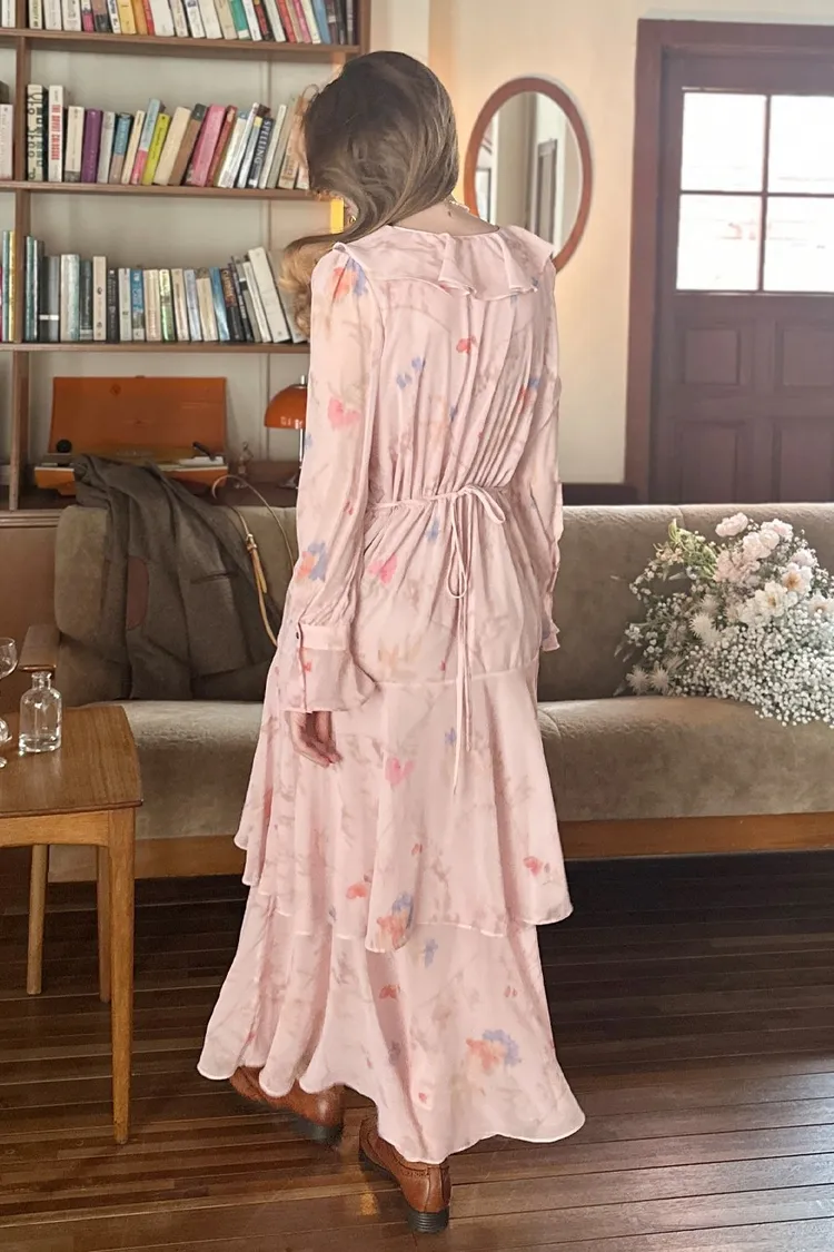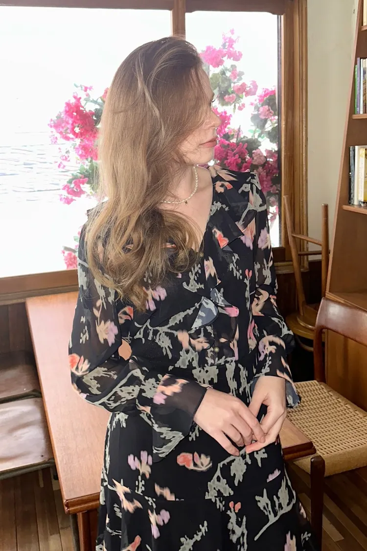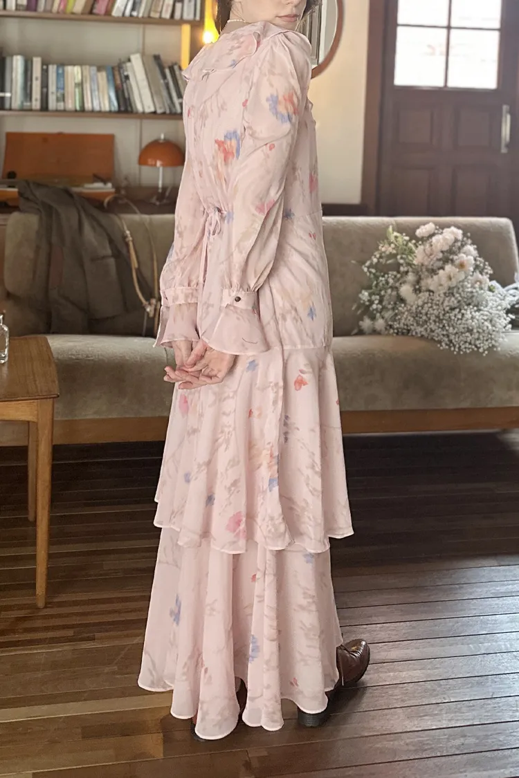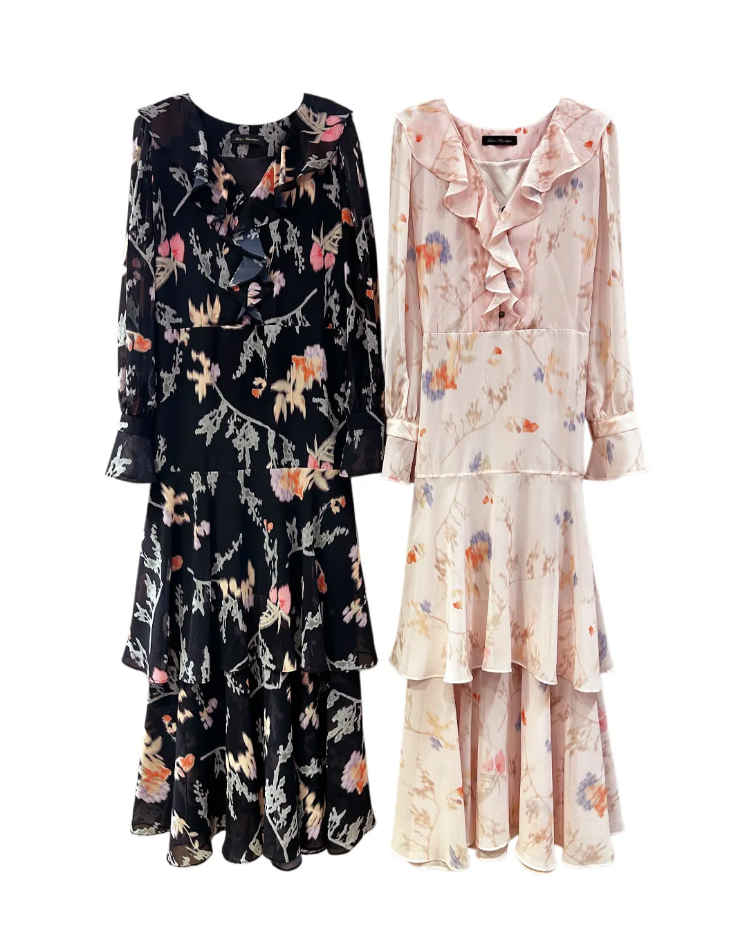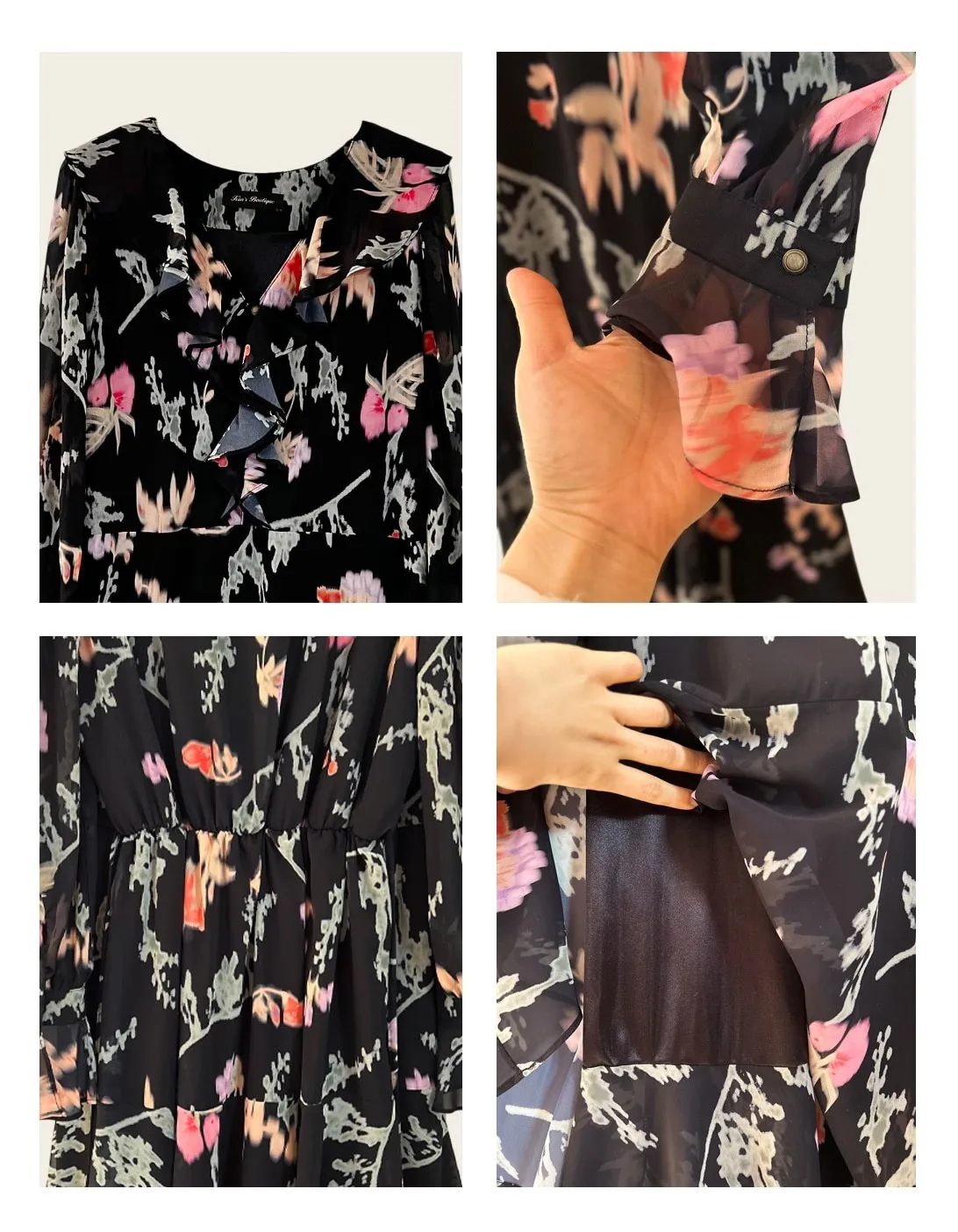輕飄飄雪紡料子像風輕輕拂過,胸下高腰、後腰彈性鬆緊 S-L妞都可以穿,V領拼接波浪荷葉邊增添柔美細節 層次蛋糕裙擺浪漫飄逸,搭配模糊暈染的花卉圖案 彷彿花瓣在空中輕舞消散 腰側綁帶可微調曲線,內襯貼心加分,單穿就能展現優雅女人味