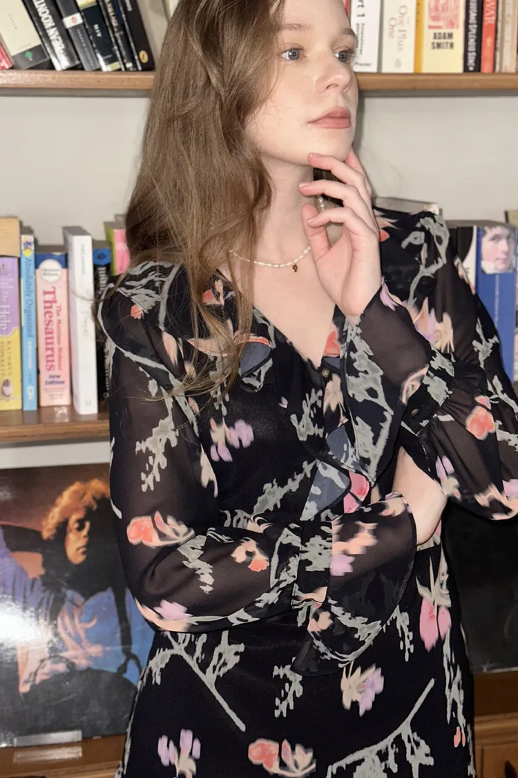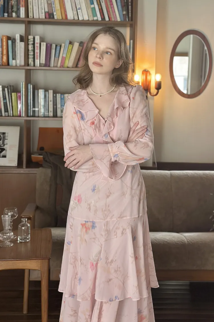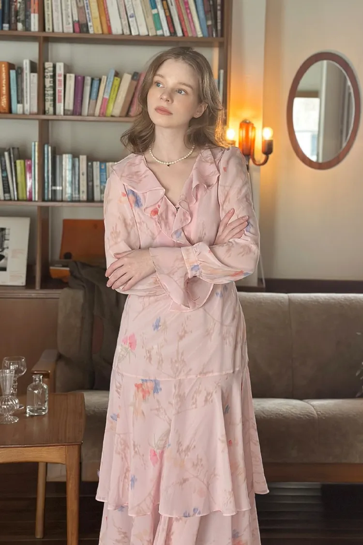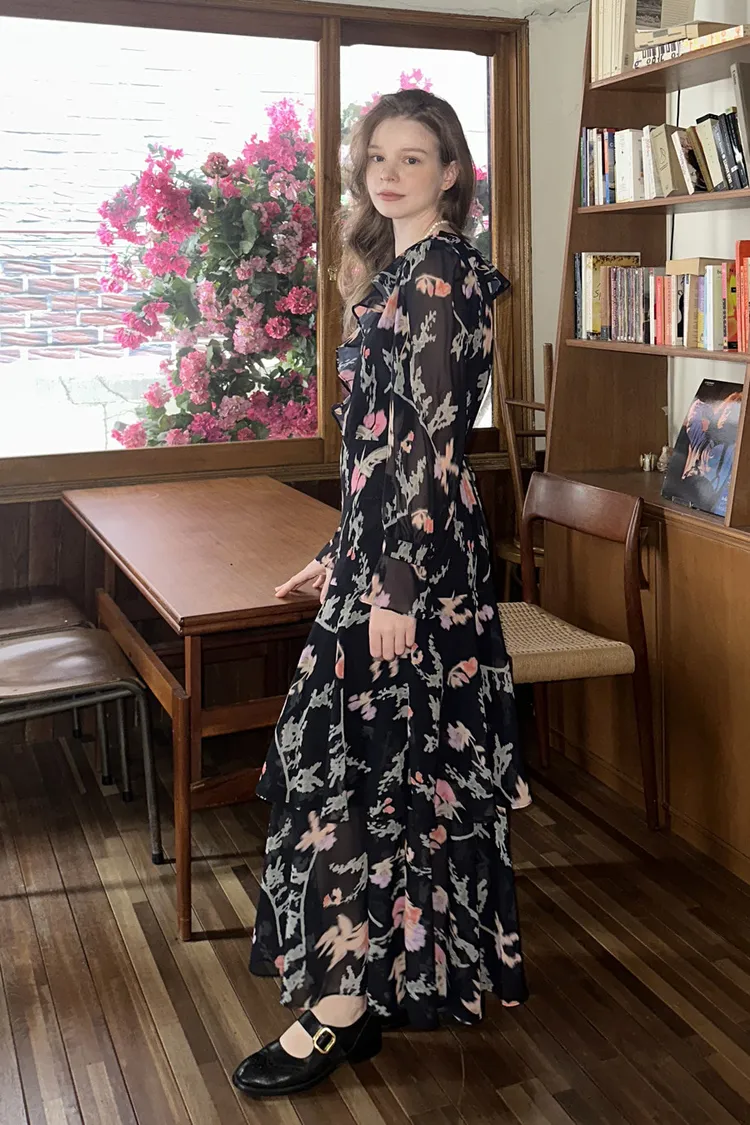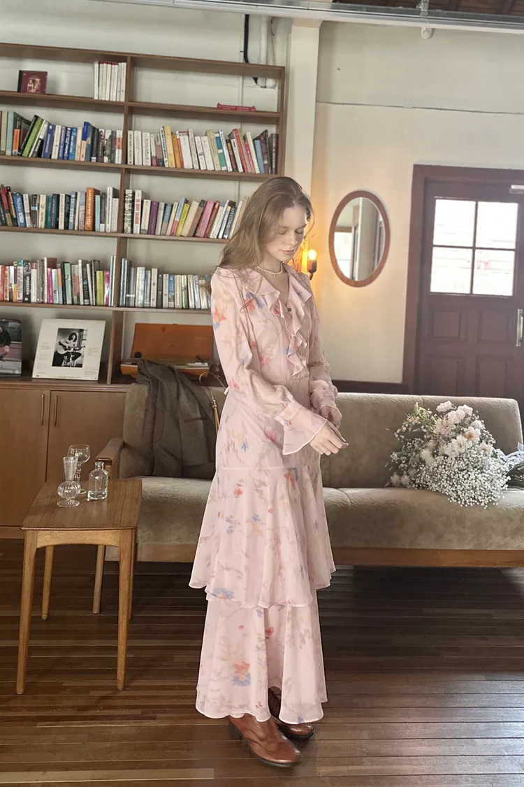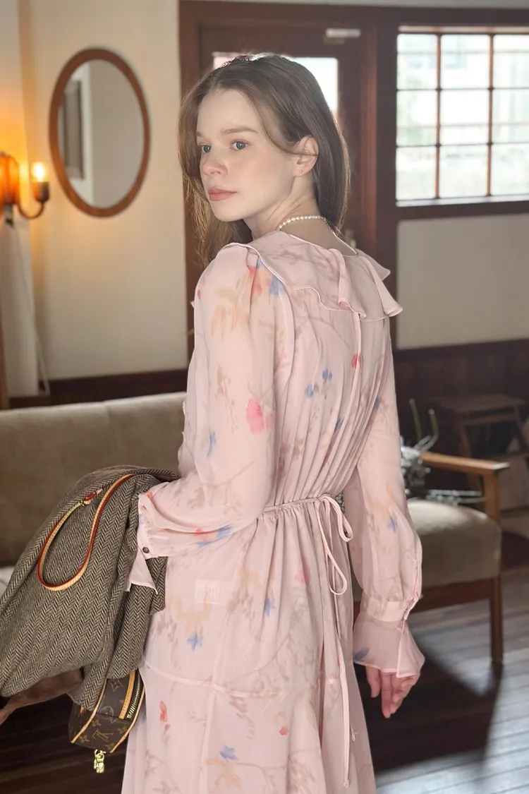 輕飄飄雪紡料子像風輕輕拂過,胸下高腰、後腰彈性鬆緊 S-L妞都可以穿,V領拼接波浪荷葉邊增添柔美細節 層次蛋糕裙擺浪漫飄逸,搭配模糊暈染的花卉圖案 彷彿花瓣在空中輕舞消散 腰側綁帶可微調曲線,內襯貼心加分,單穿就能展現優雅女人味