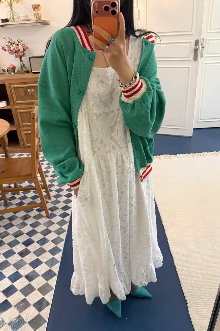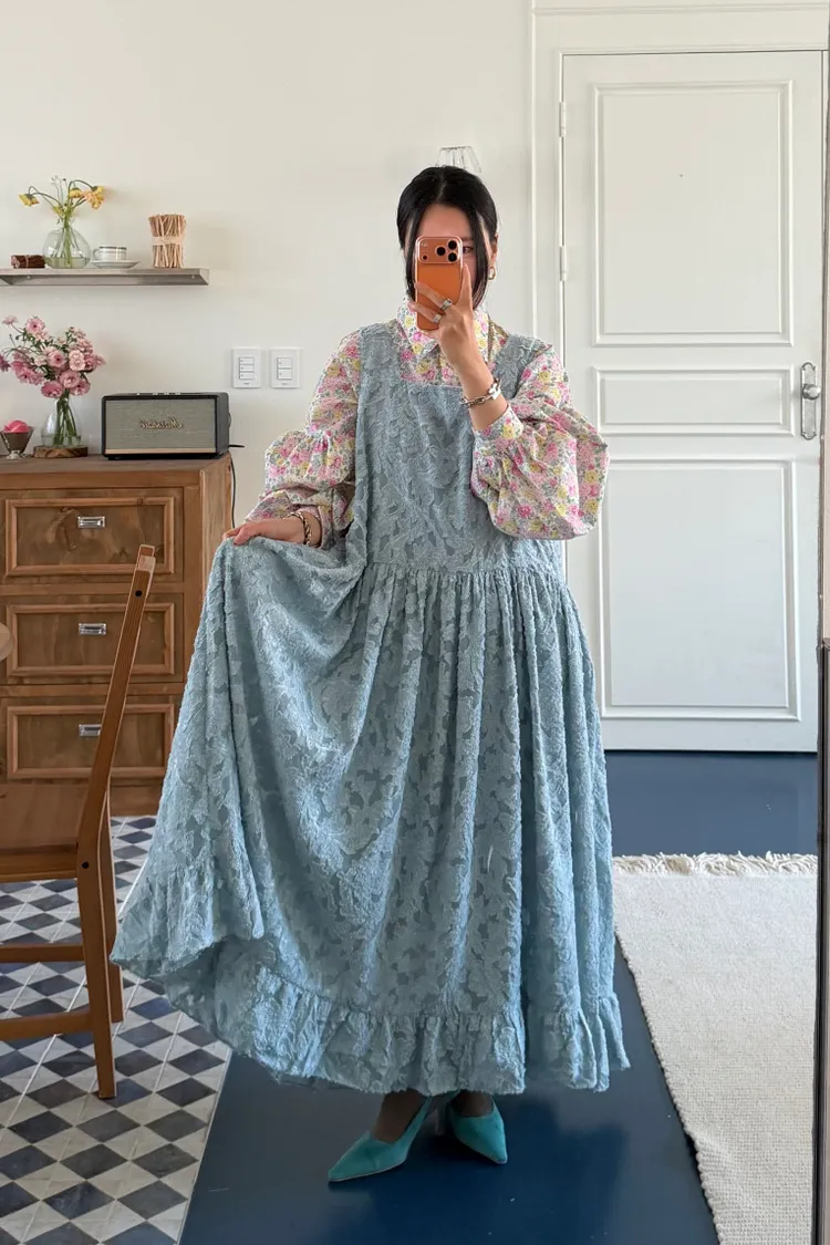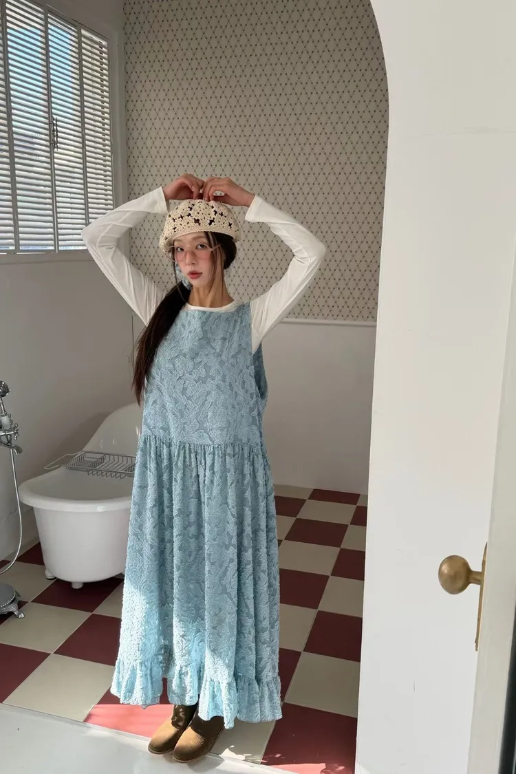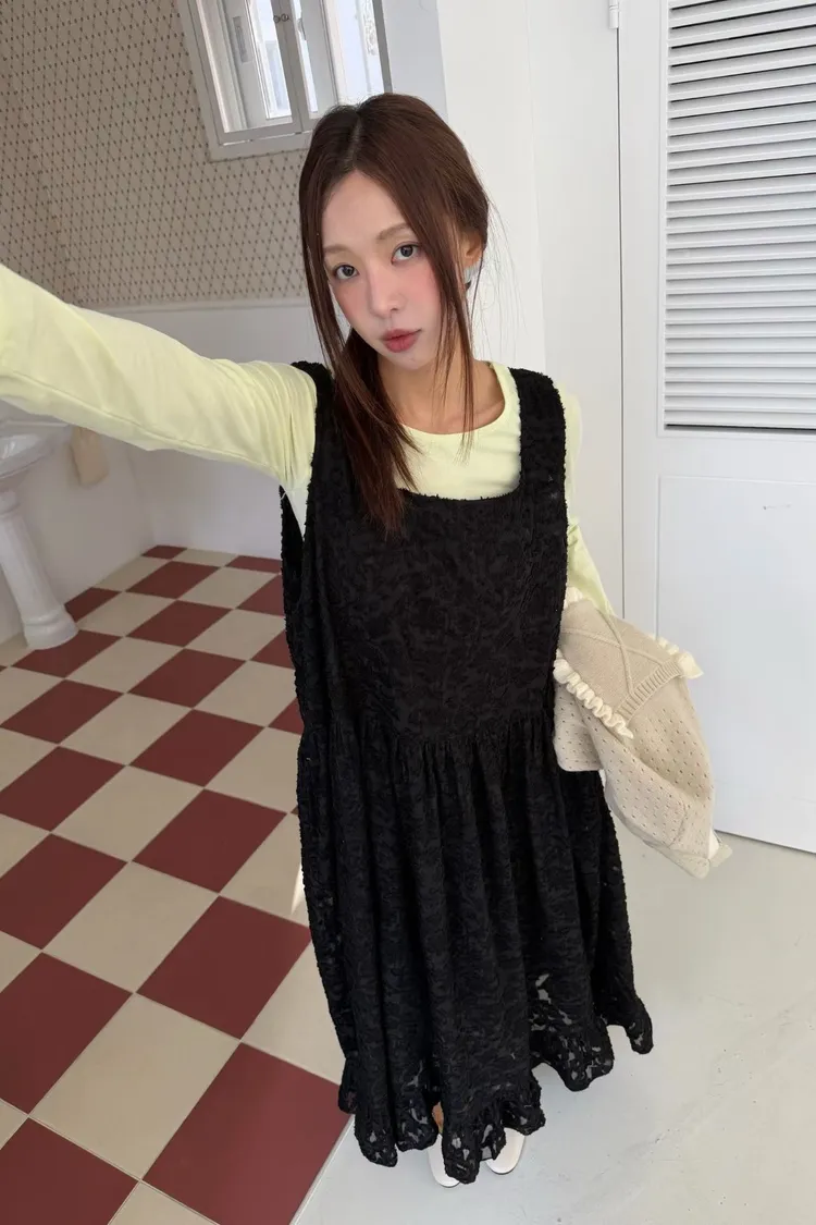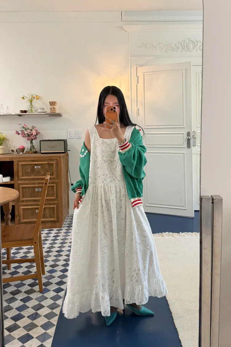聚脂纖維緹花面料輕盈又有質感,立體緹花細節精緻又有設計感 方領寬鬆傘狀裙襬,裙擺拼接抓折增添浪漫層次感 S-XL妞都可以穿,甜美中帶實穿,日常或約會都超有氣質 內搭寬鬆上衣,背心腋下洞口大不會卡 夏天也可以直接單穿、有內襯、有口袋