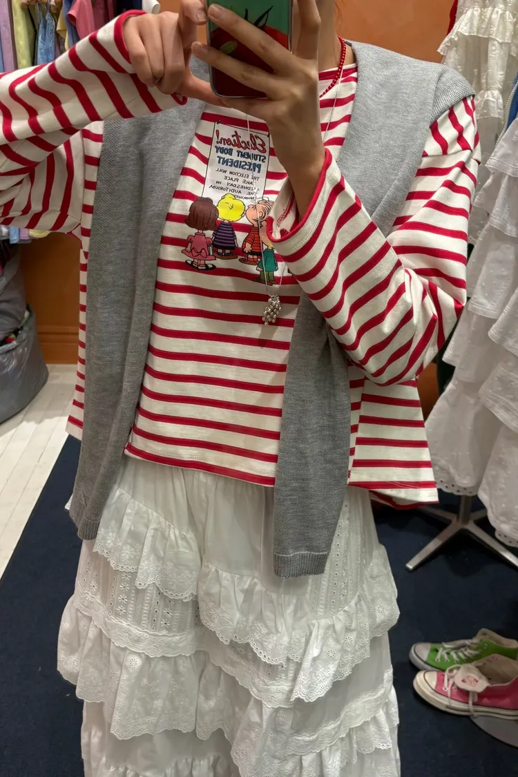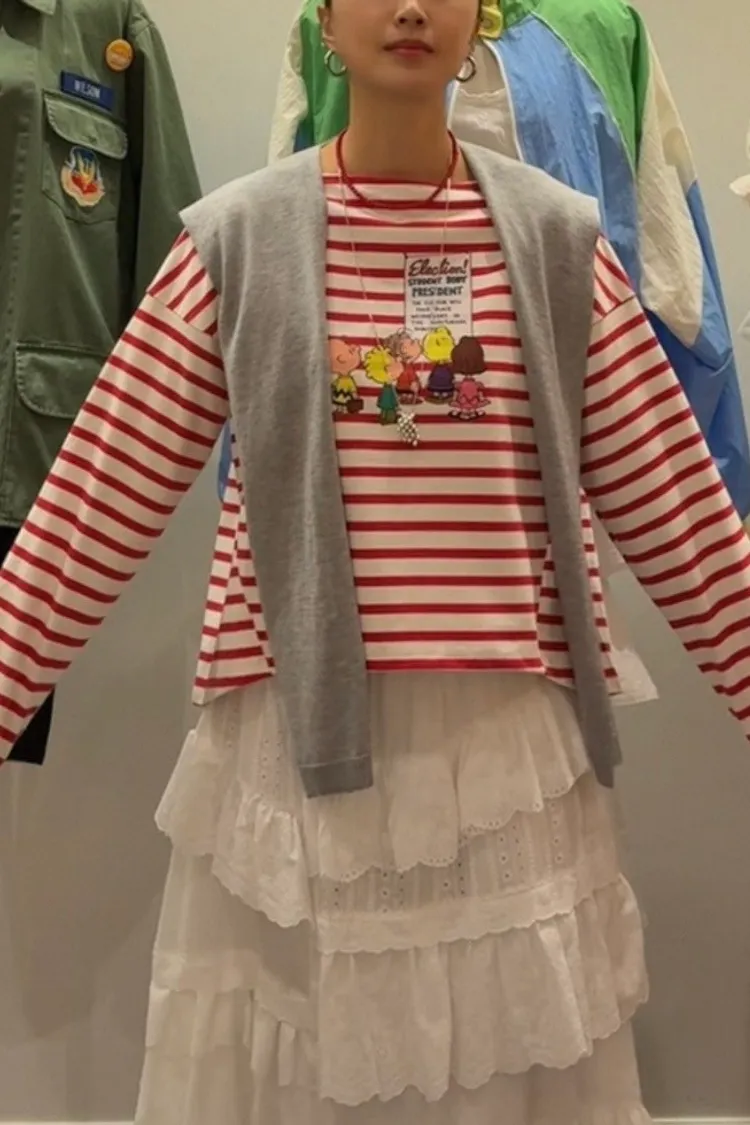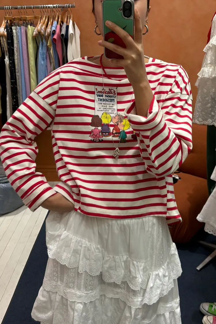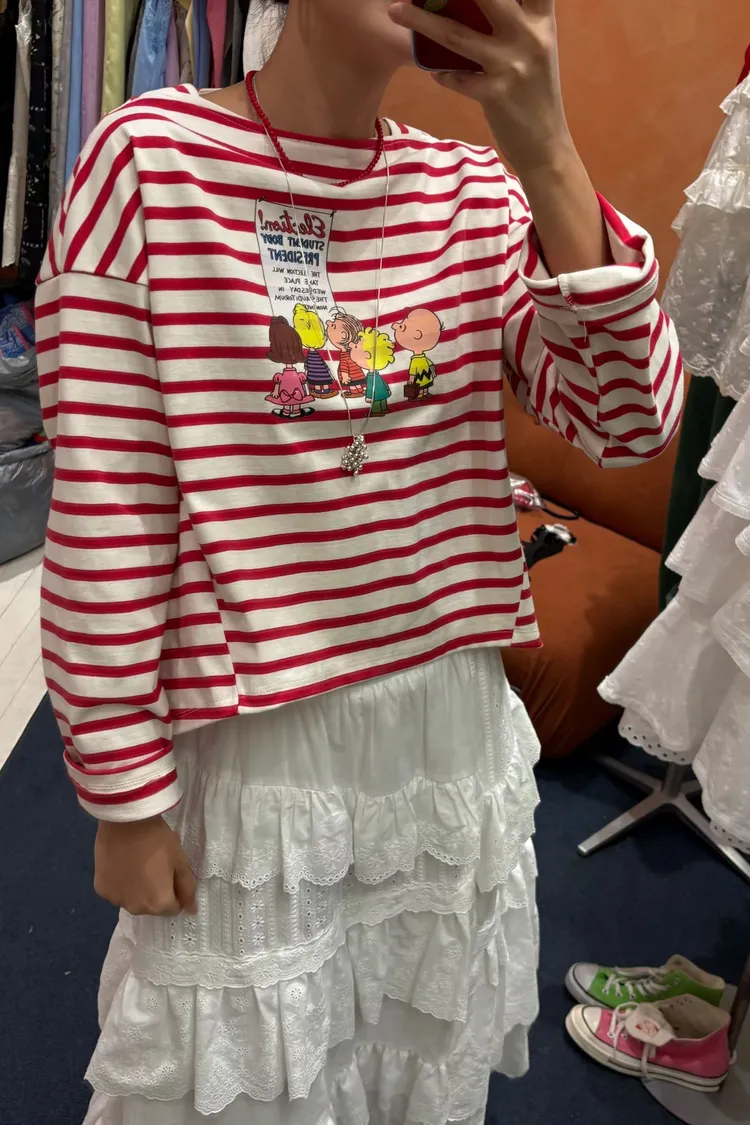 紮實有挺度的棉料材質,穿起來挺度滿分,不再鬆垮隨意💛 歐膩希望穿起來是呈現立體與穩定感,而不是鬆垮的狀態 前短後長落肩寬鬆版型,S-XL妞都可以穿 撞色條紋搭配史努比朋友們可愛印花,俏皮又帶點童趣感 日常單穿或內搭外套都超吸睛,每一步都萌到不行~