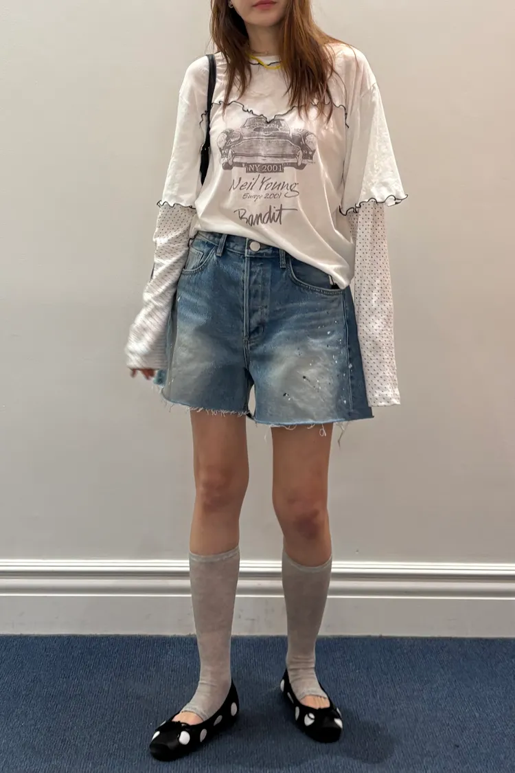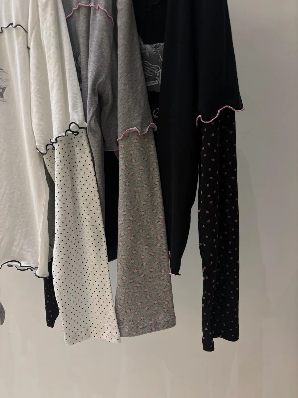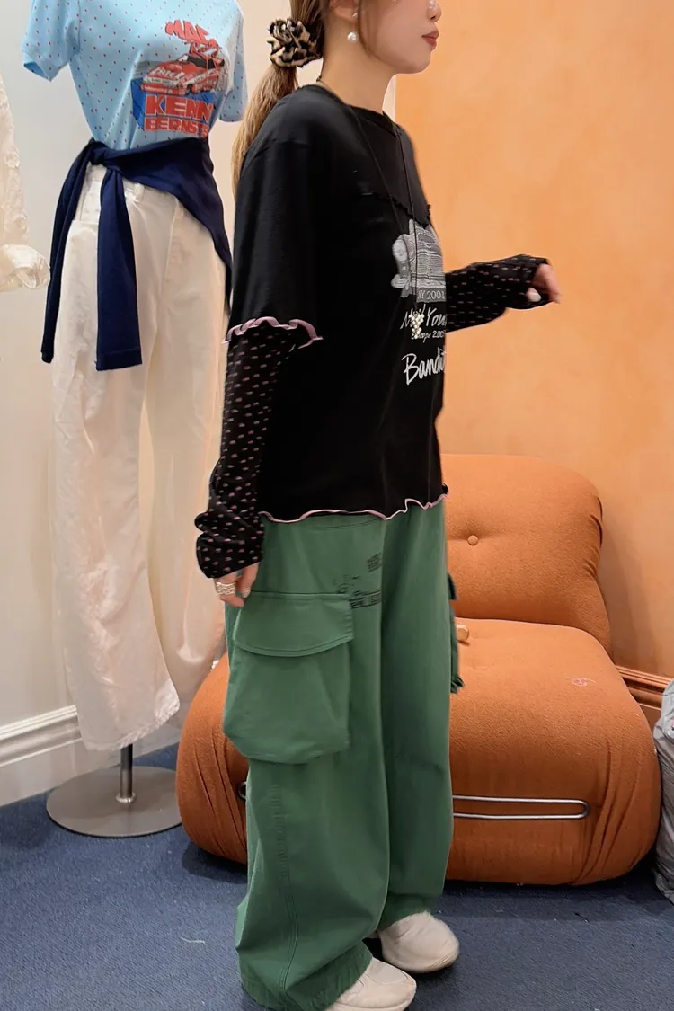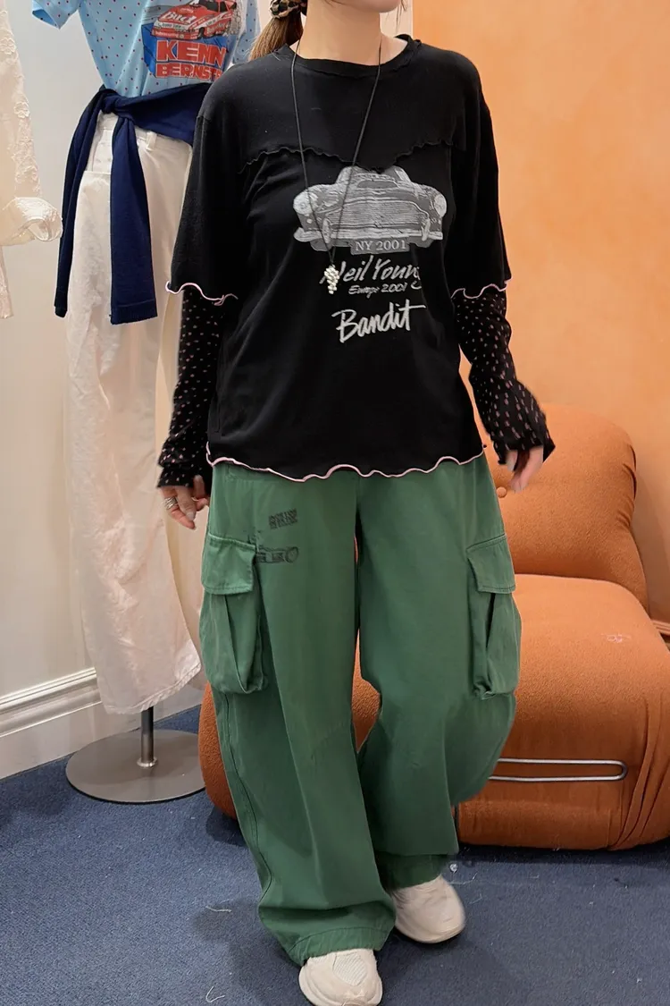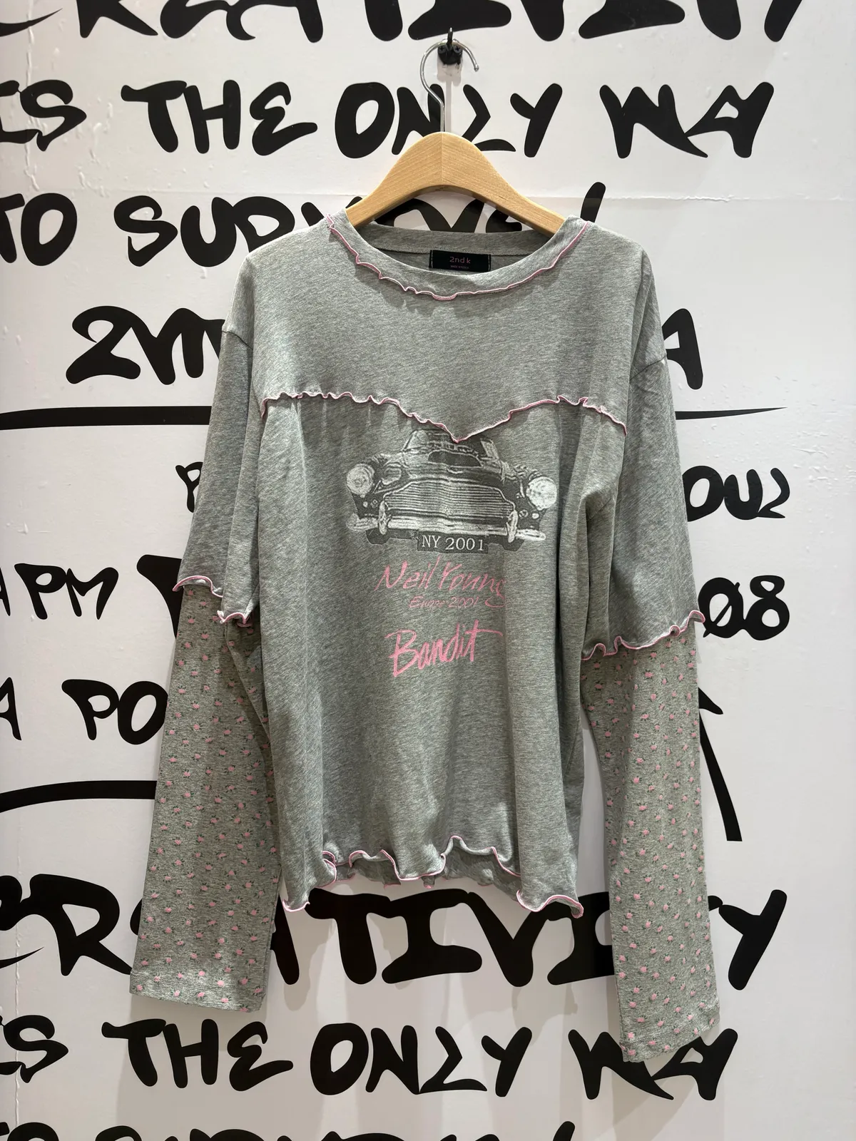 滿滿復古感又帶俏皮細節 非常輕薄的彈力棉料材質,舒適親膚又透氣 胸前印有微褪色的復古車輛與字母印花,隨性又有街頭味 撞色滾邊、手袖假兩件拼接,袖子上還藏著點點或碎花印花細節 低調甜美又有層次感,隨便搭下身就很有造型感,S-L妞都可以穿
