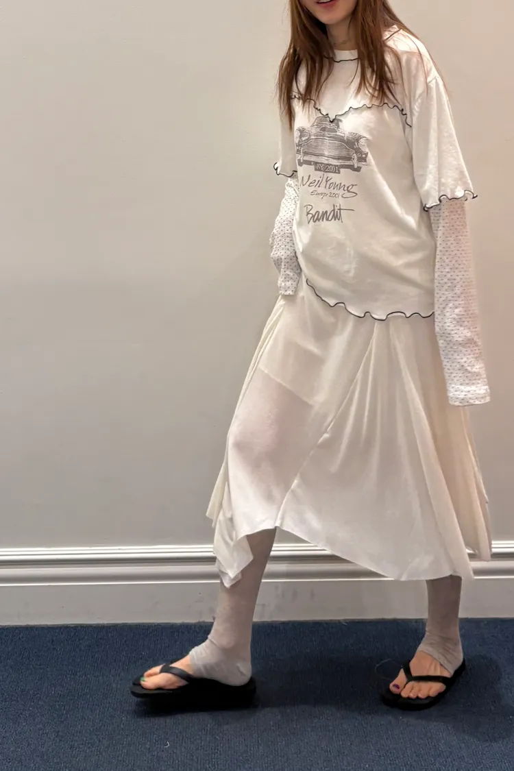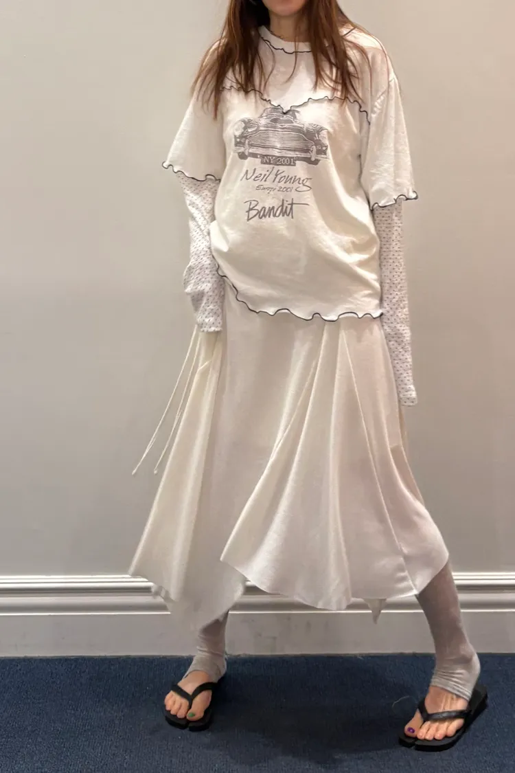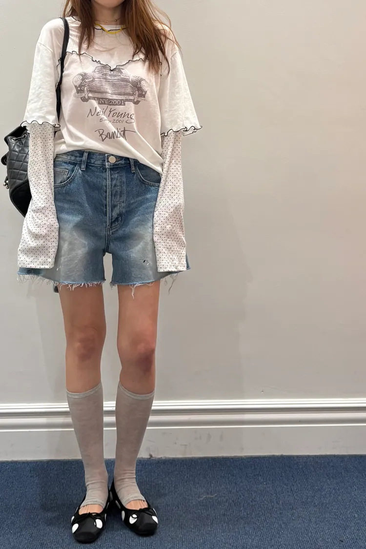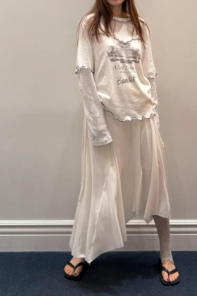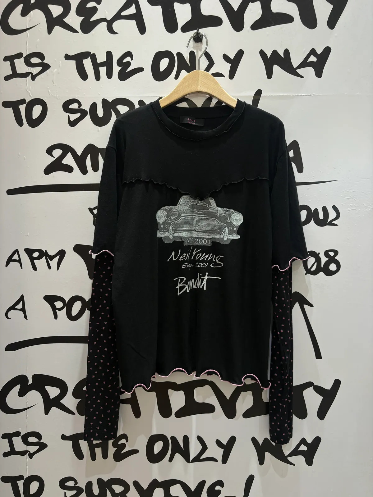 滿滿復古感又帶俏皮細節 非常輕薄的彈力棉料材質,舒適親膚又透氣 胸前印有微褪色的復古車輛與字母印花,隨性又有街頭味 撞色滾邊、手袖假兩件拼接,袖子上還藏著點點或碎花印花細節 低調甜美又有層次感,隨便搭下身就很有造型感,S-L妞都可以穿