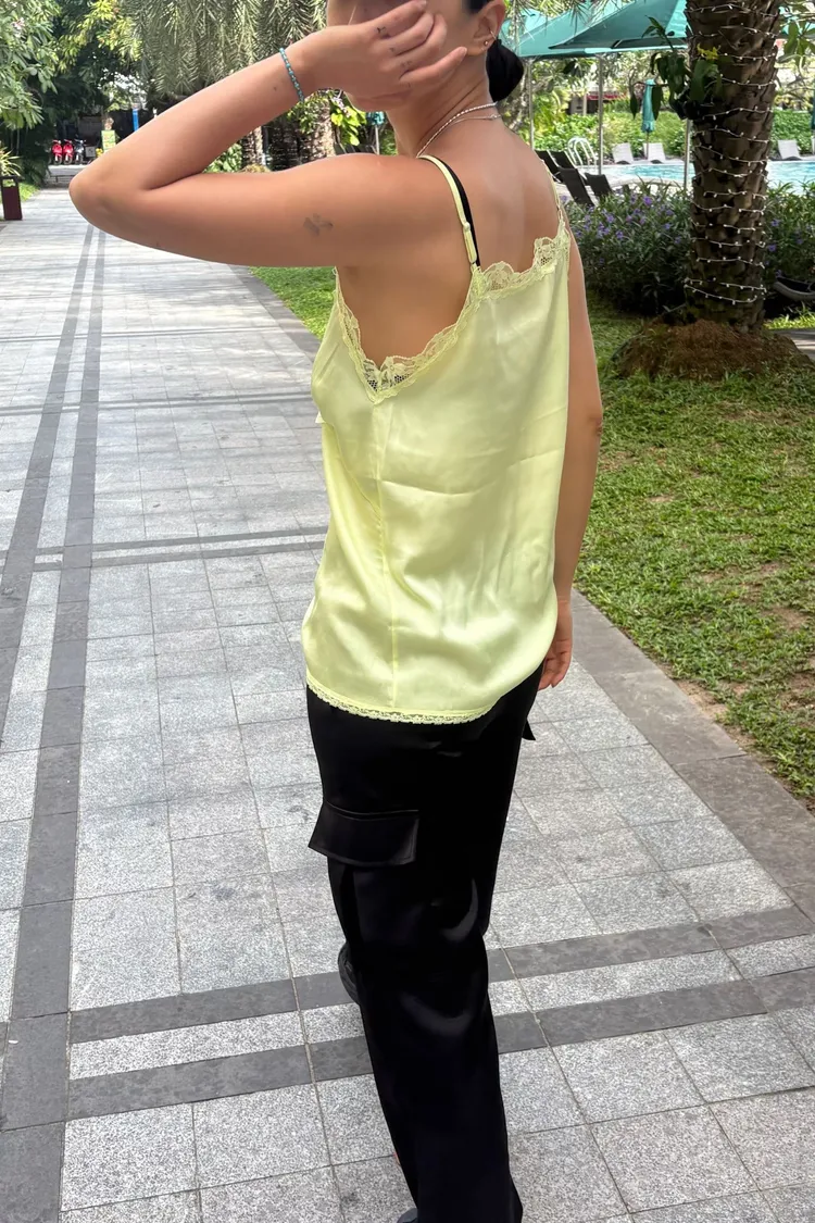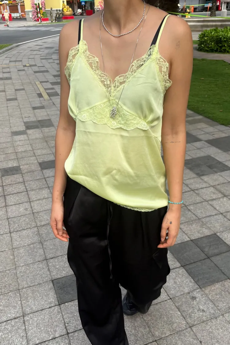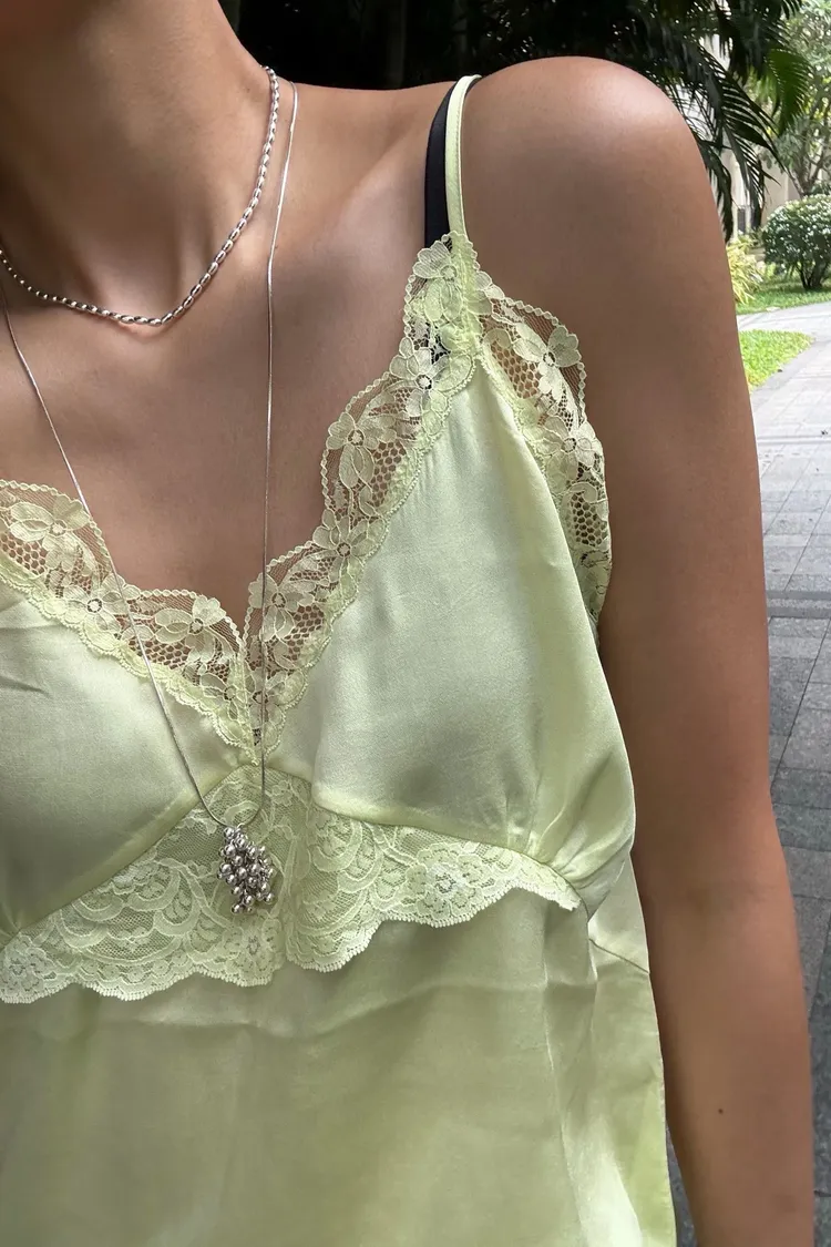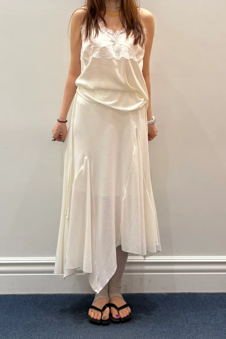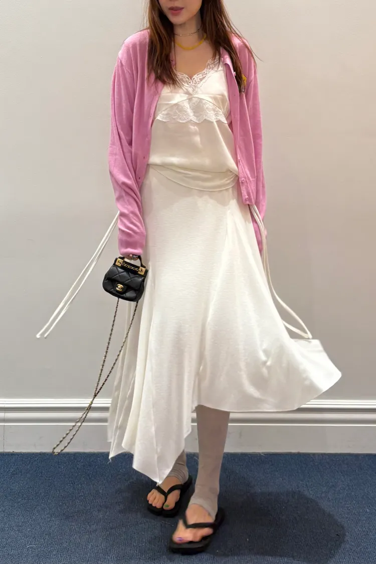 輕盈又甜美的感覺♡ 滑溜溜絲光面料帶自然光澤感,小寬鬆版型,S-L妞都可以穿 純色系搭配拼接蕾絲裝飾,細節溫柔又增添女人味 肩帶可調、可以和MRB06長裙搭配成套 相同版型,MRT13是印花款可一併參考