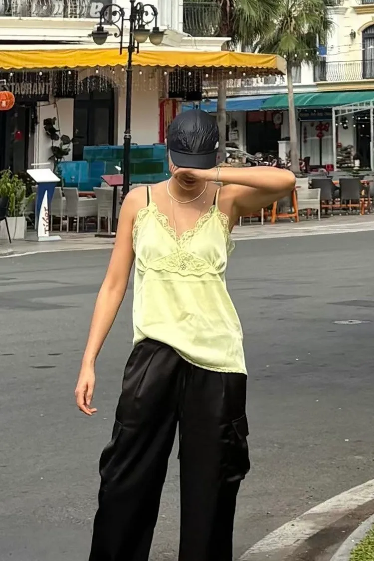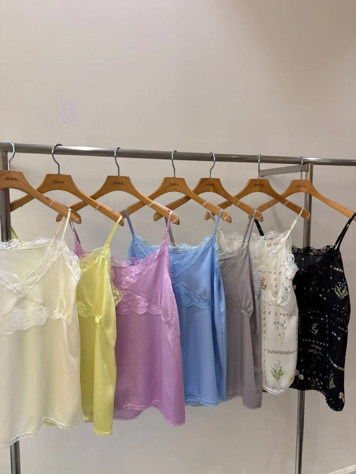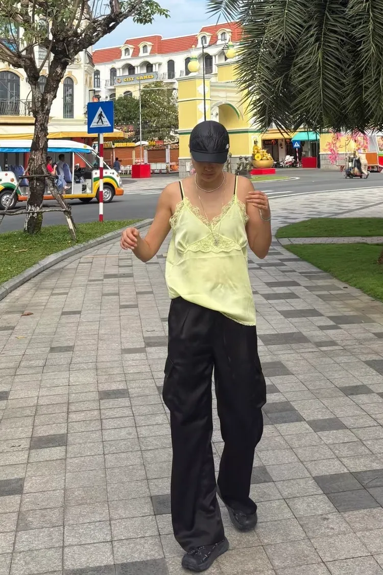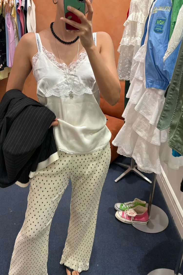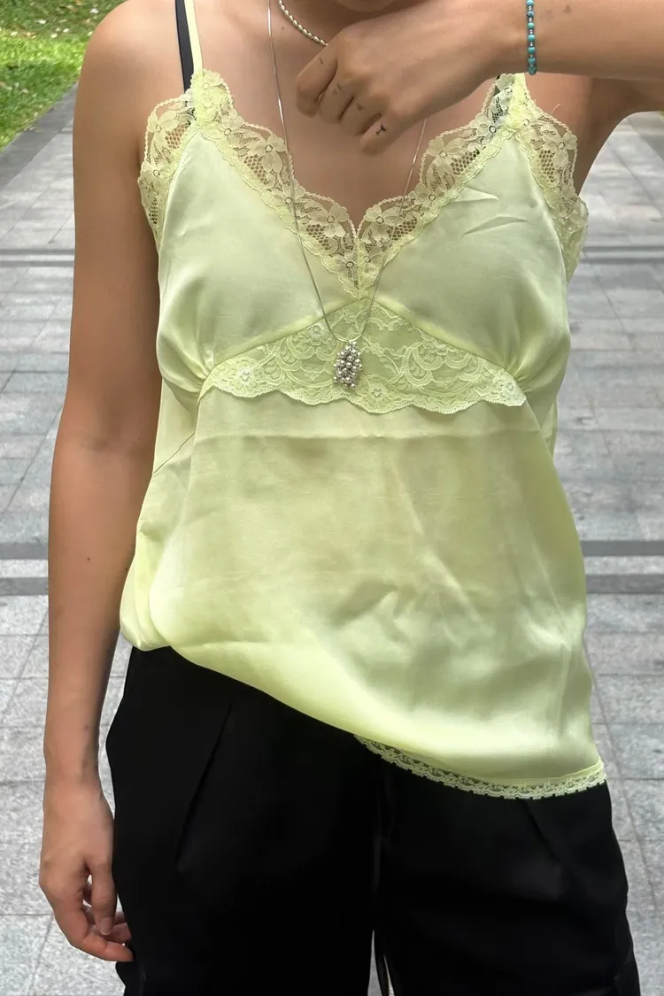 輕盈又甜美的感覺♡ 滑溜溜絲光面料帶自然光澤感,小寬鬆版型,S-L妞都可以穿 純色系搭配拼接蕾絲裝飾,細節溫柔又增添女人味 肩帶可調、可以和MRB06長裙搭配成套 相同版型,MRT13是印花款可一併參考