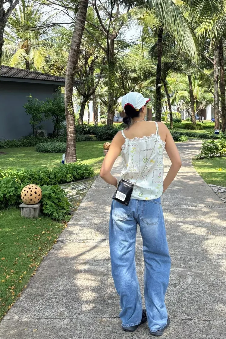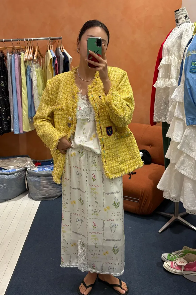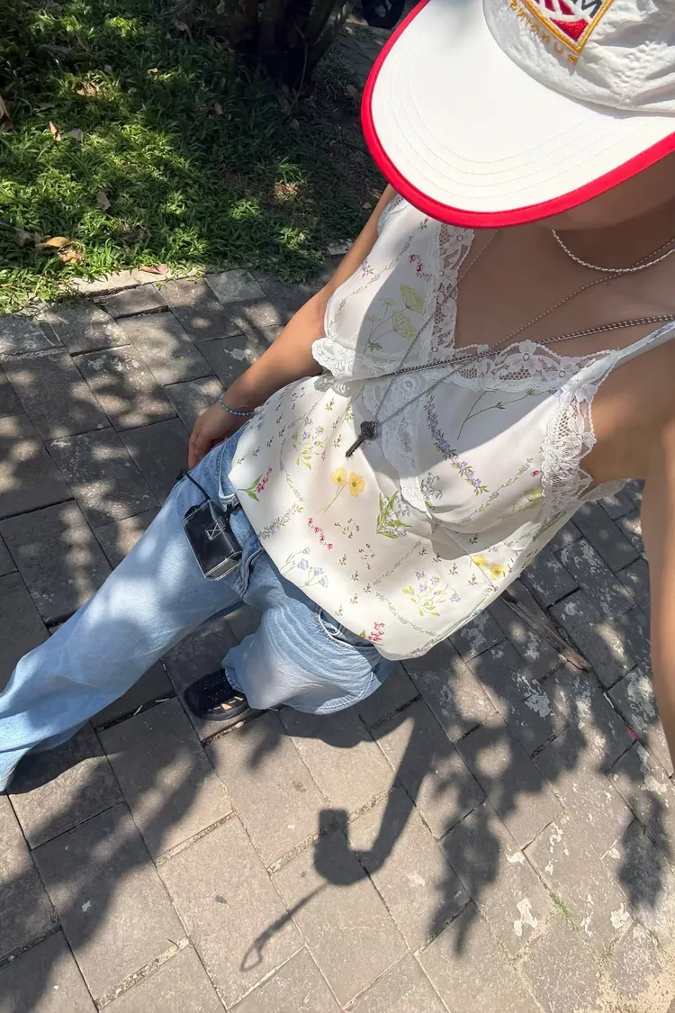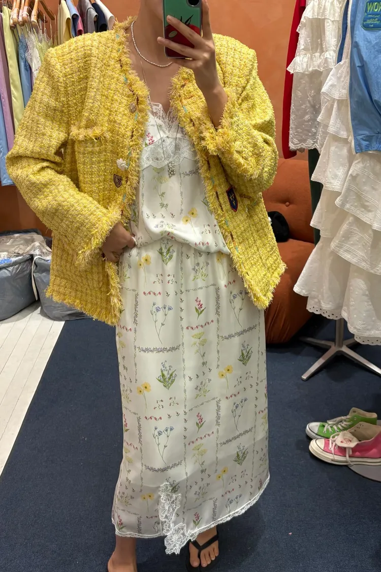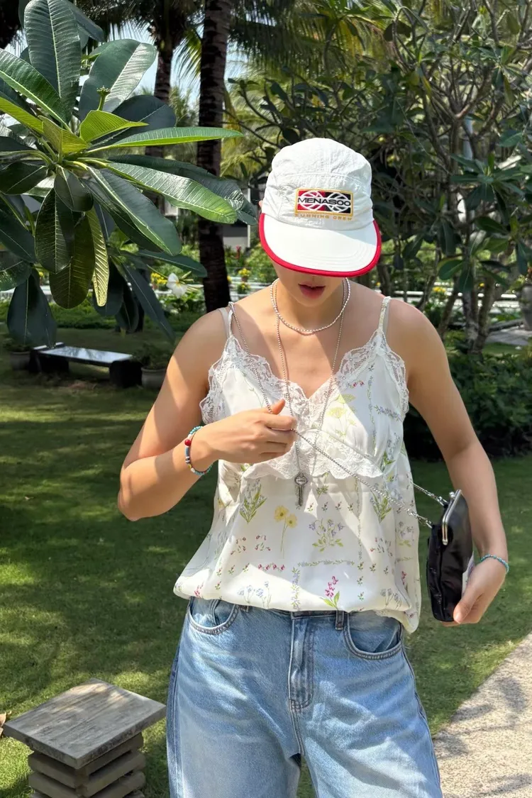 穿上就有滿滿春日浪漫感♡ 滑溜溜絲光印花面料輕盈飄逸,小寬鬆版型,S-L妞都可以穿 精緻碎花排列成格紋圖案,搭配拼接蕾絲裝飾,細節感甜美又高級 肩帶可調、可以和MRB07長裙搭配成套 相同版型,MRT12是純色款可一併參考