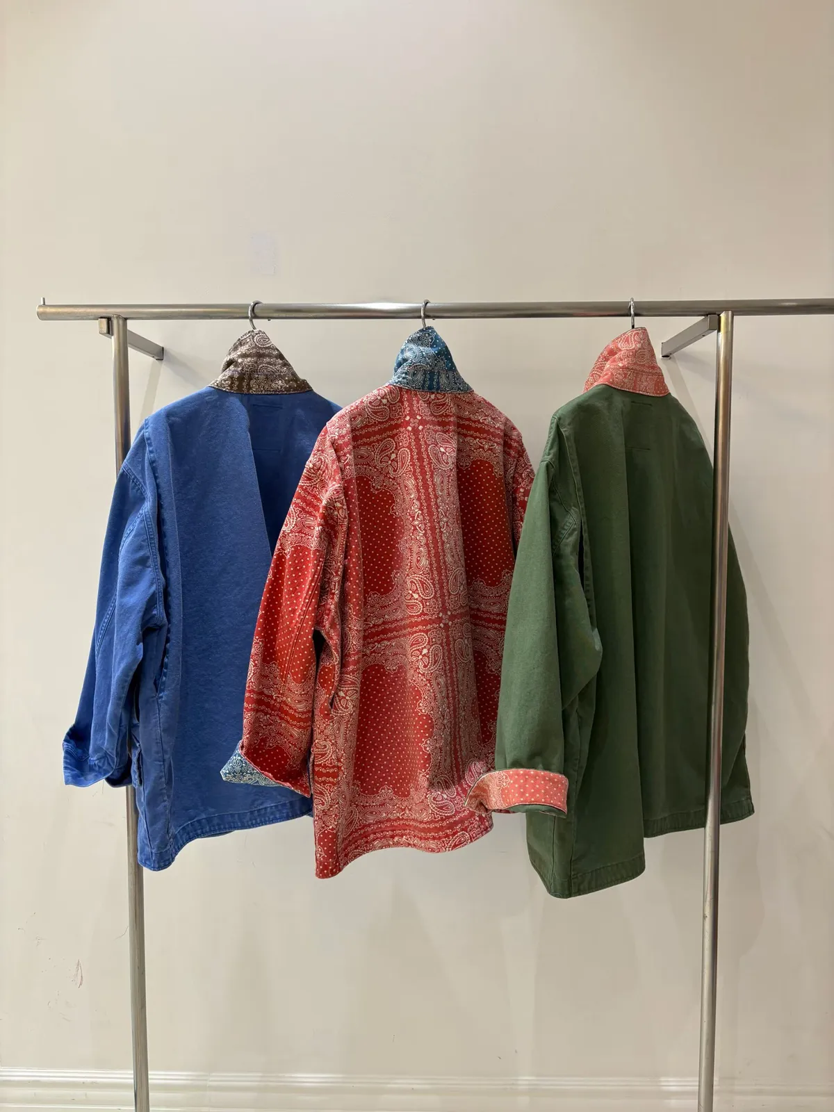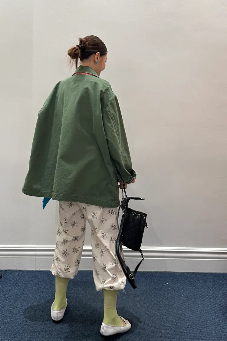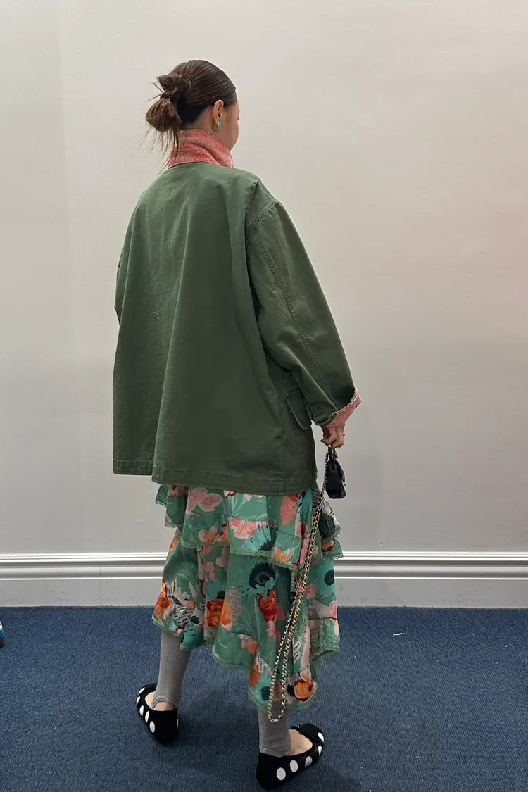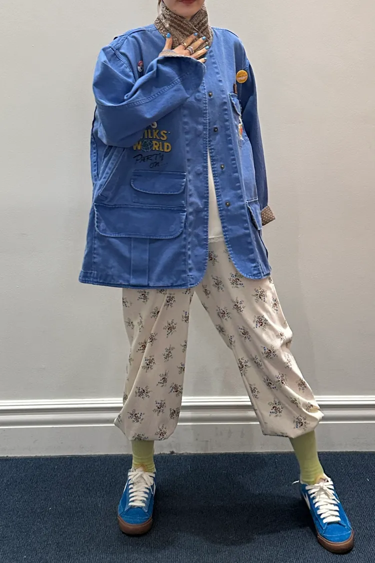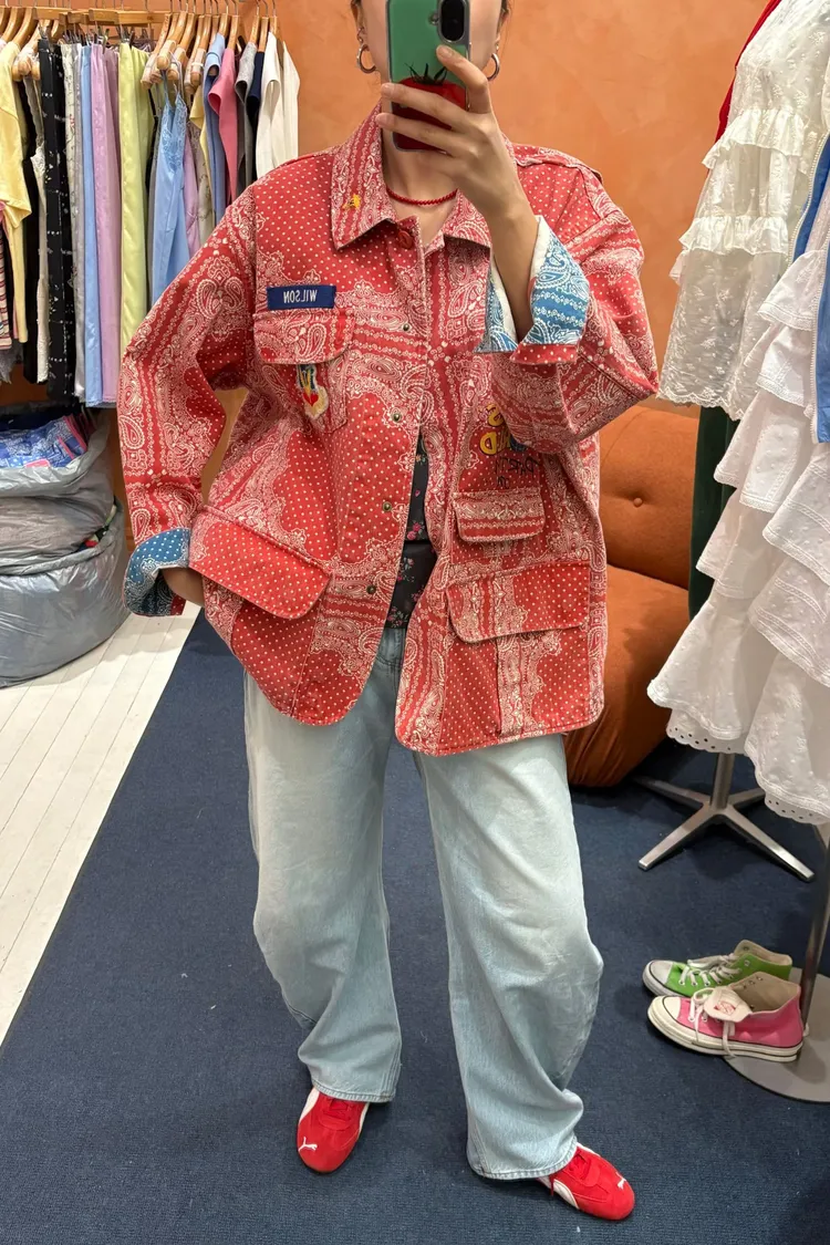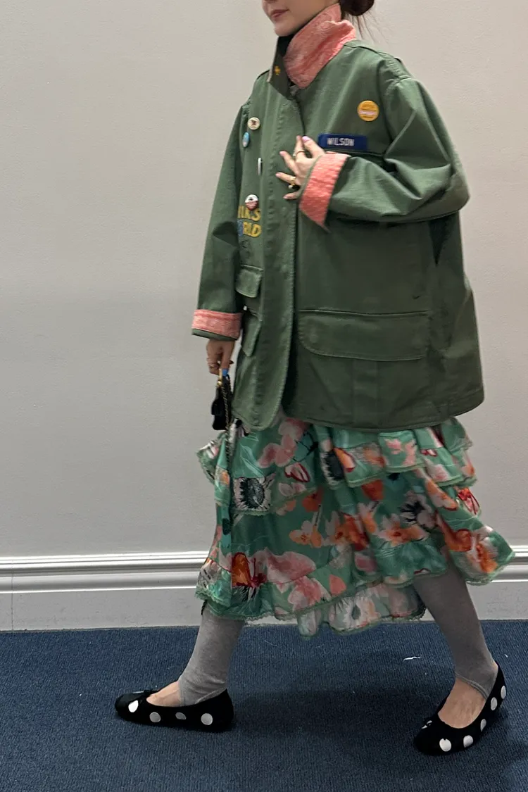 袖口、領口都有撞色的佩斯利印花拼布,細節感滿滿