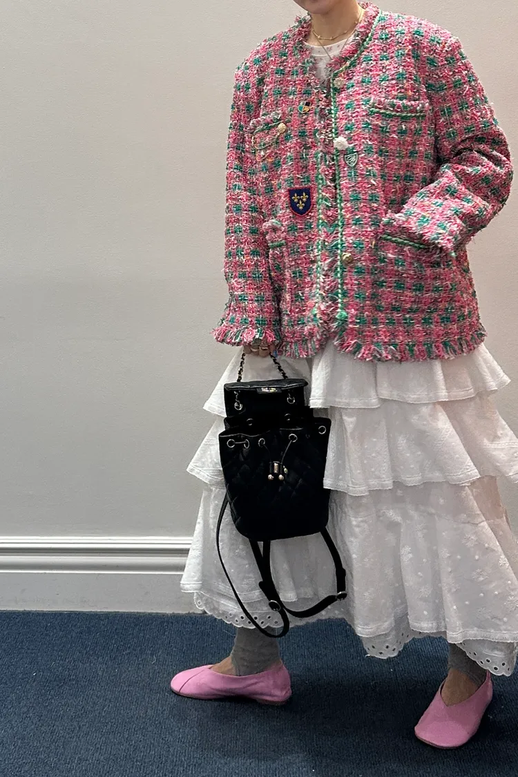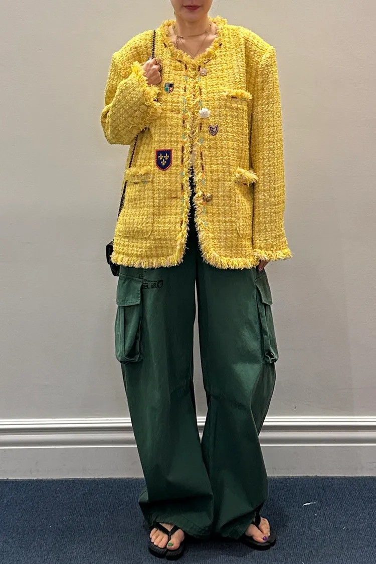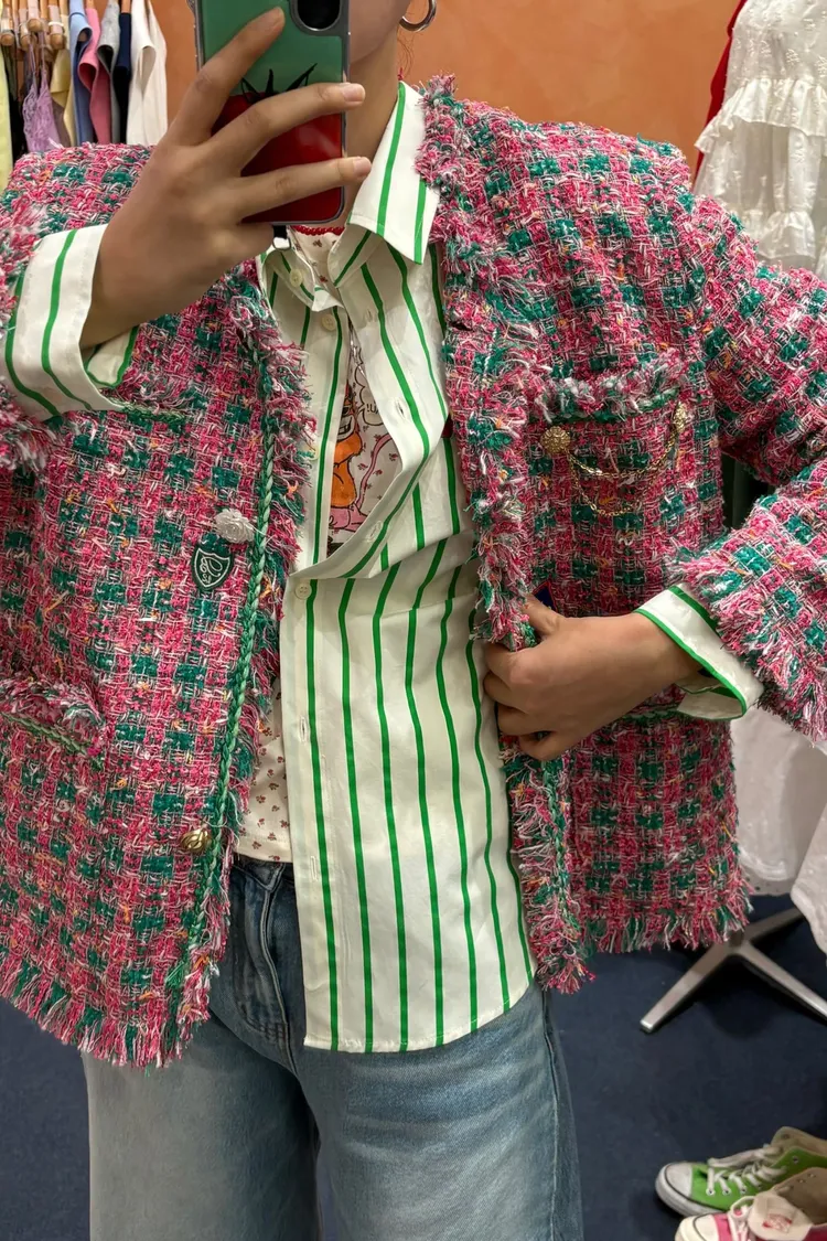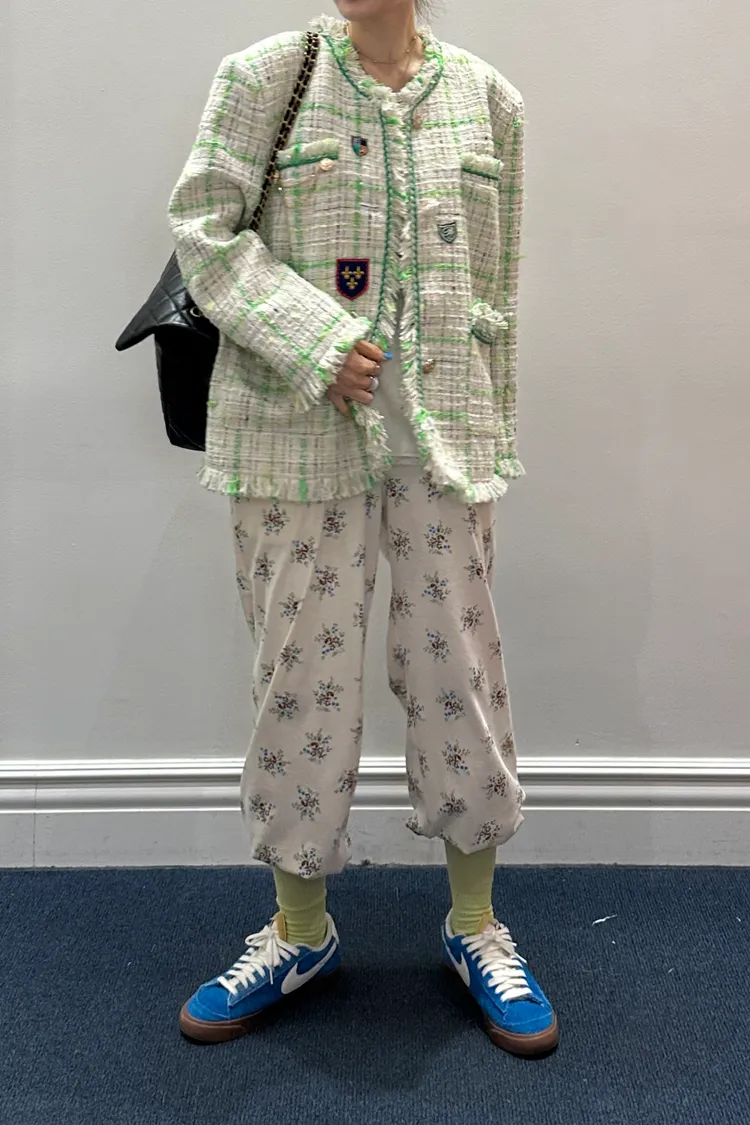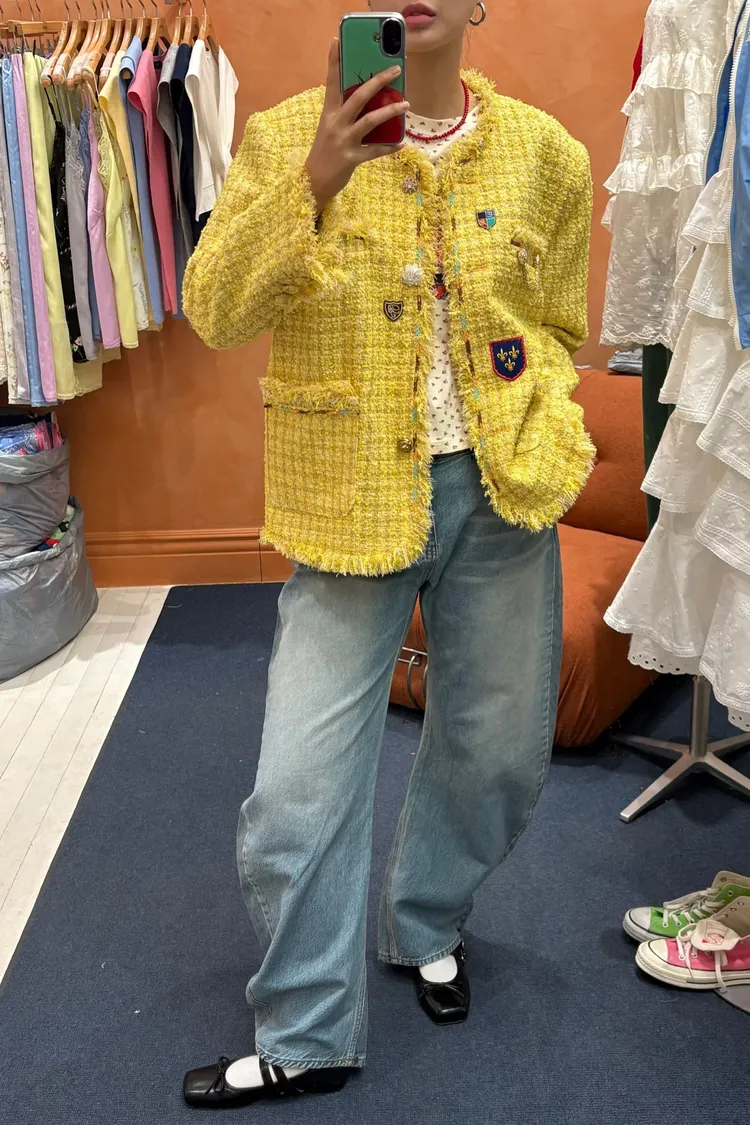一上身就自帶精品濾鏡♡ 精品質感小香花呢編織面料質感細緻有層次、面料不厚重! 尤其編織配色都是歐膩親自挑選後製作,獨特又耐看 寬鬆版型,S-XL妞都可以穿,隨意披上就有那種慵懶高級感 不只花呢面料精緻,內襯也完全不遜色! 精品絲巾才會有的圖紋和絲滑手感~巨美 立體花扣搭配金釦裝飾,細節閃耀卻不浮誇 再加上刺繡布章點綴,甜中帶點率性、有口袋
