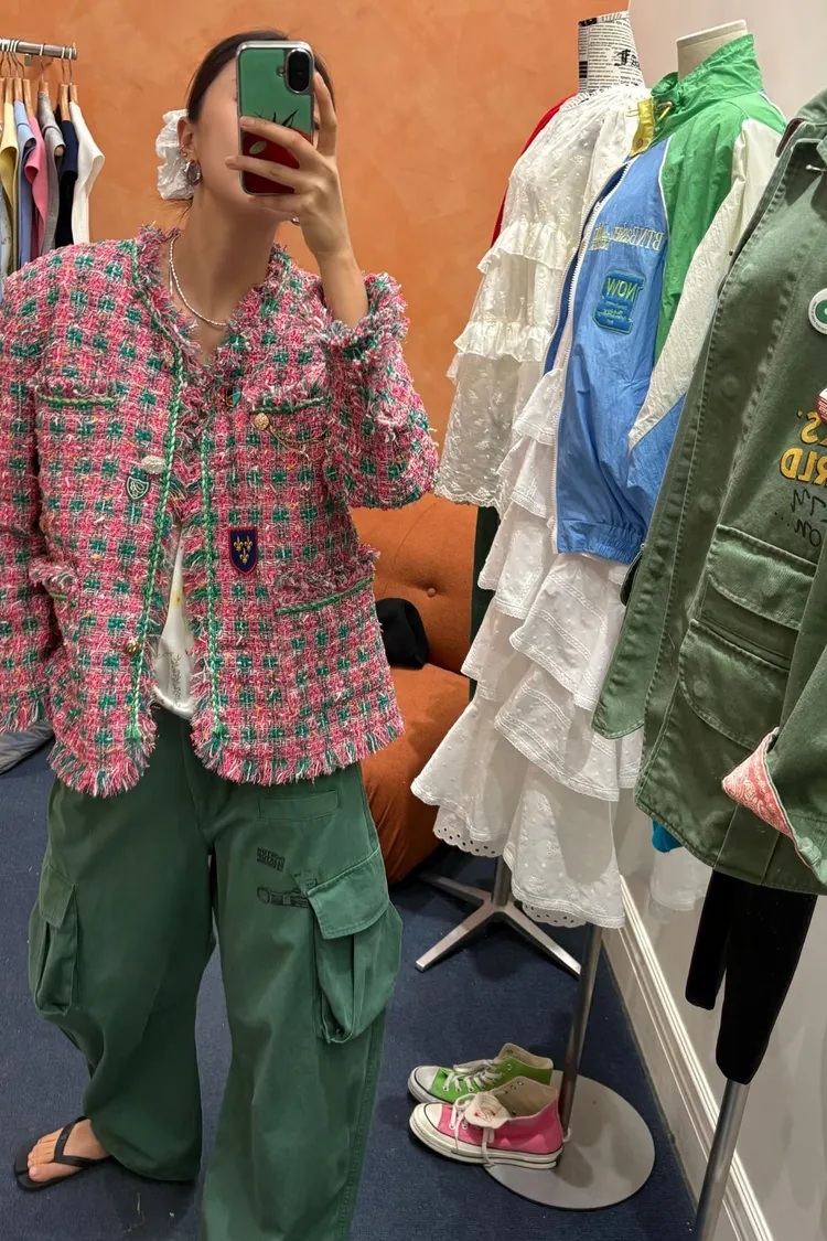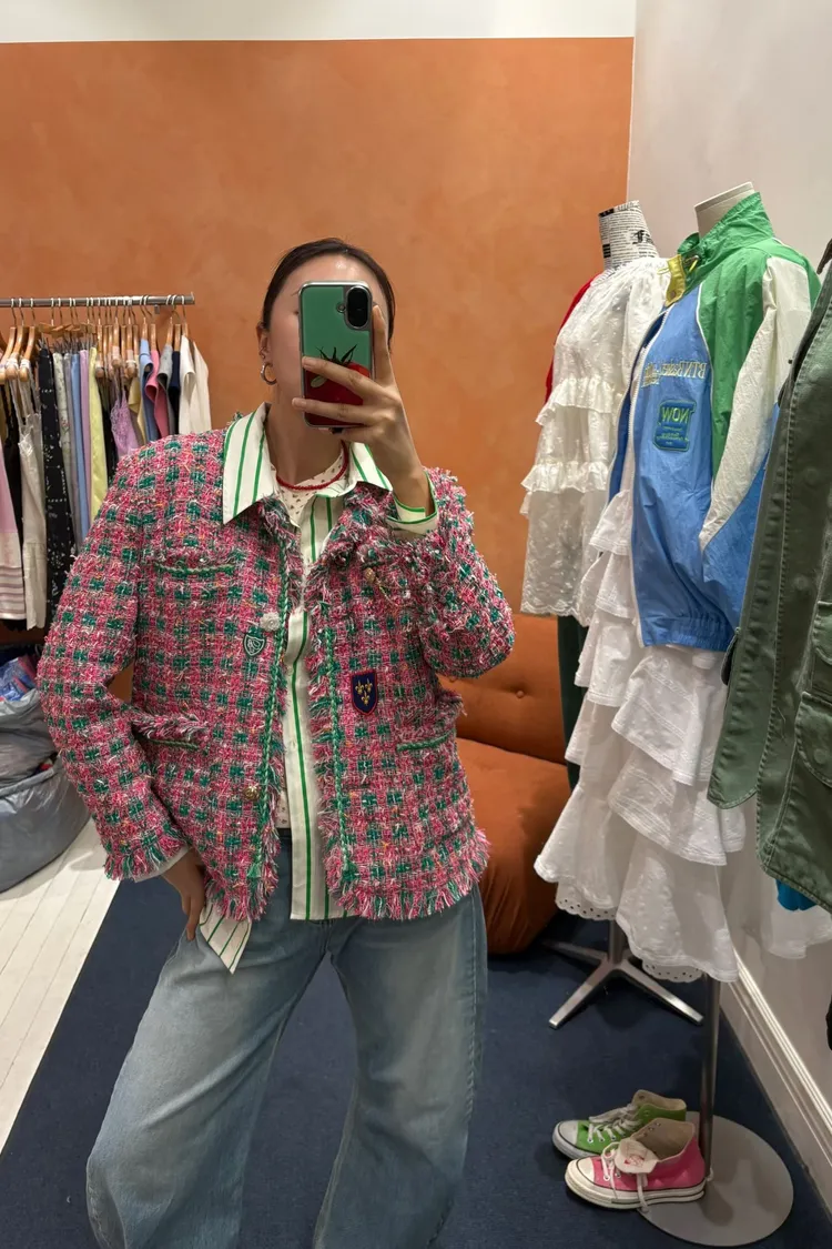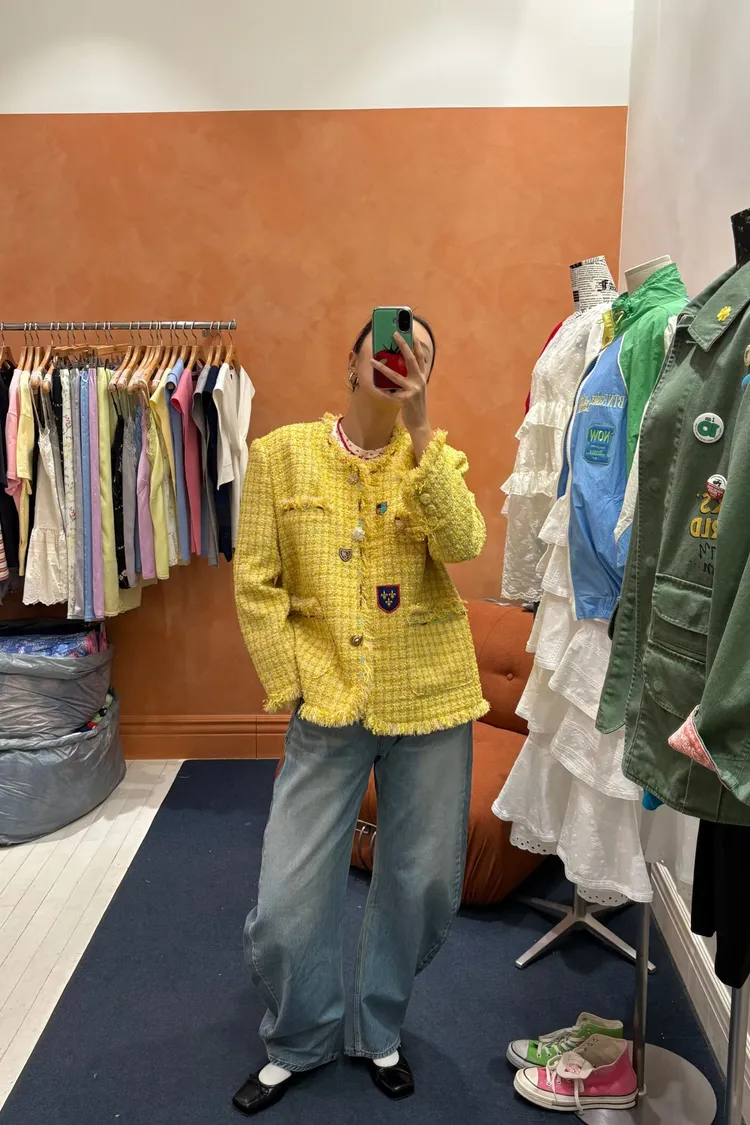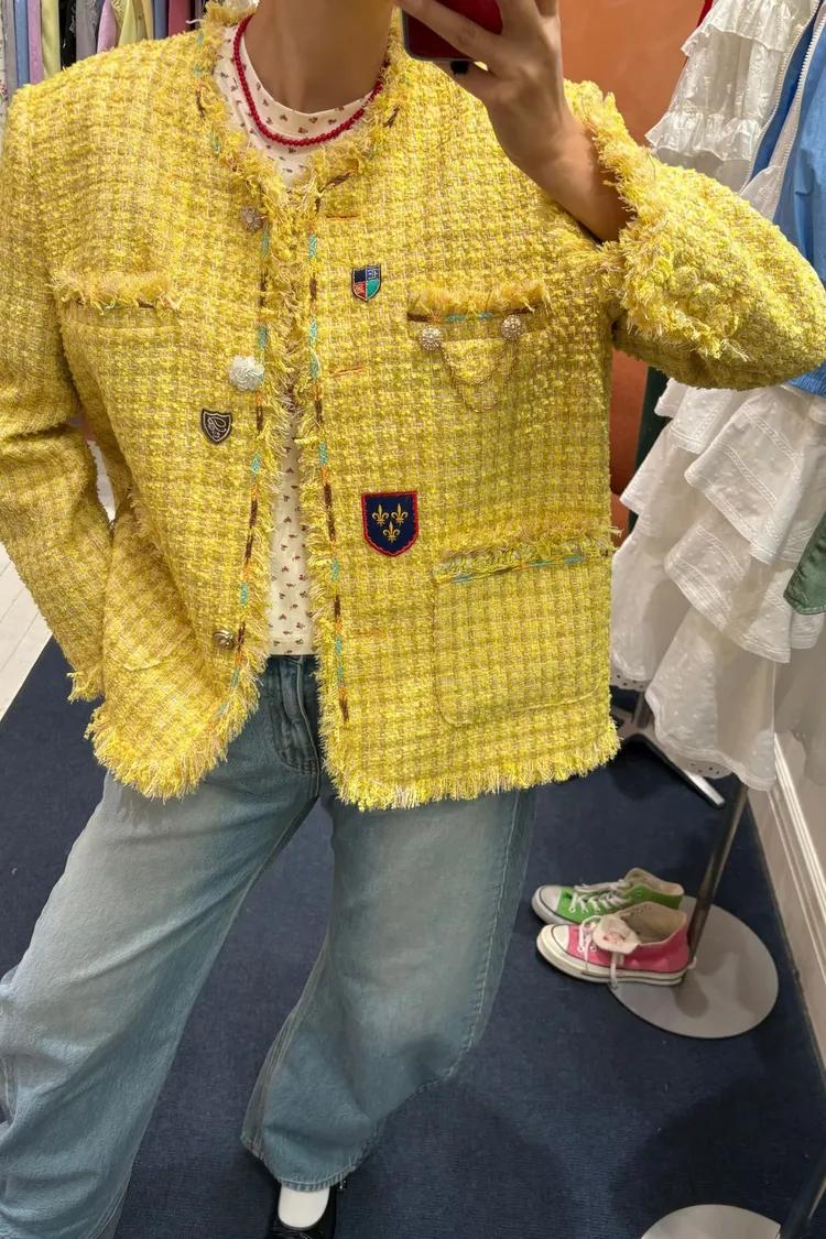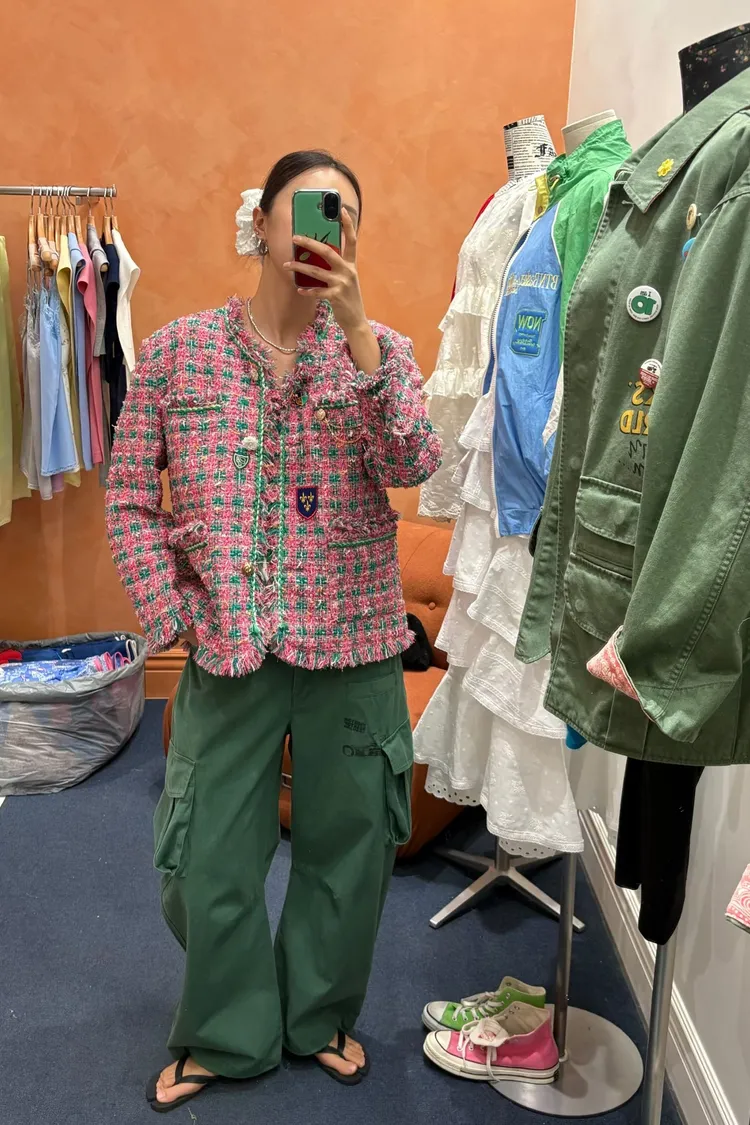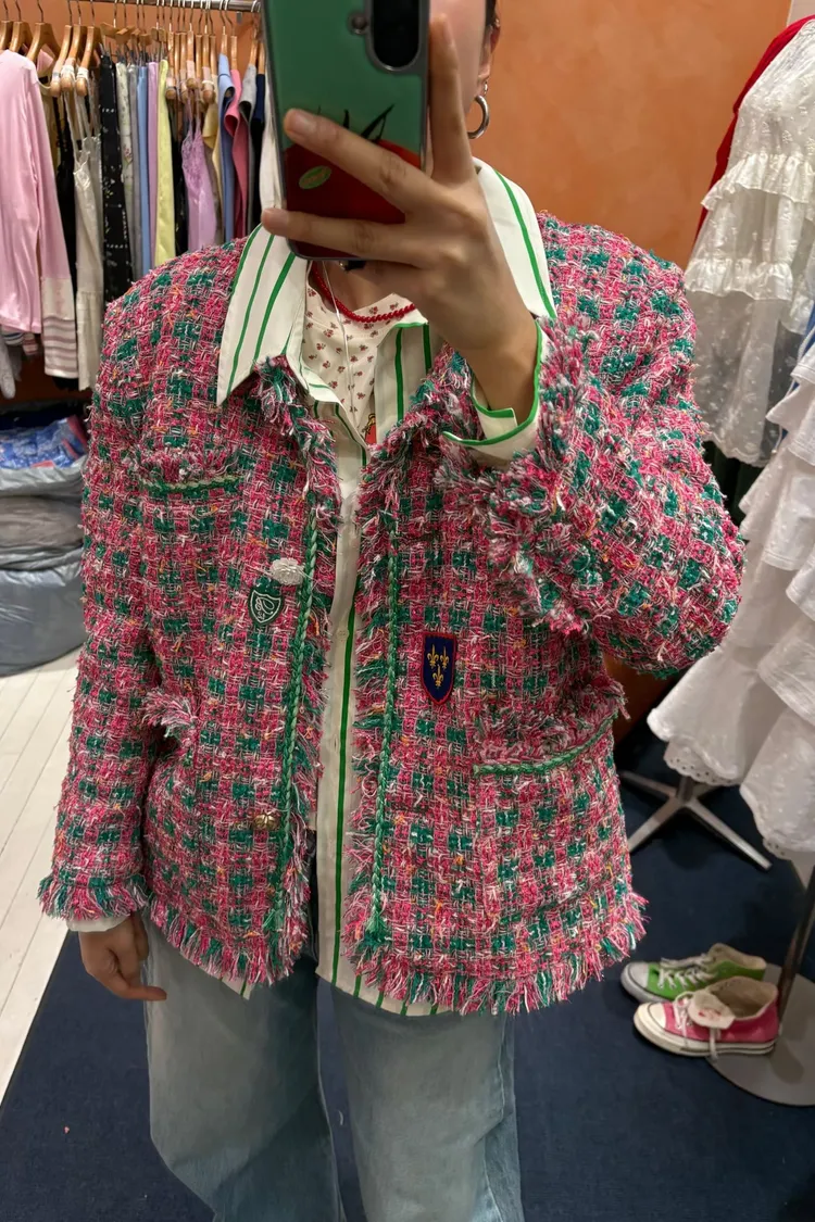 一上身就自帶精品濾鏡♡ 精品質感小香花呢編織面料質感細緻有層次、面料不厚重! 尤其編織配色都是歐膩親自挑選後製作,獨特又耐看 寬鬆版型,S-XL妞都可以穿,隨意披上就有那種慵懶高級感 不只花呢面料精緻,內襯也完全不遜色! 精品絲巾才會有的圖紋和絲滑手感~巨美 立體花扣搭配金釦裝飾,細節閃耀卻不浮誇 再加上刺繡布章點綴,甜中帶點率性、有口袋