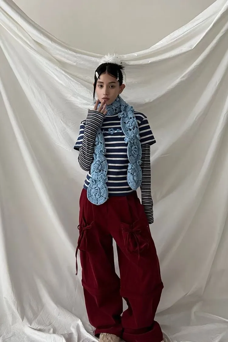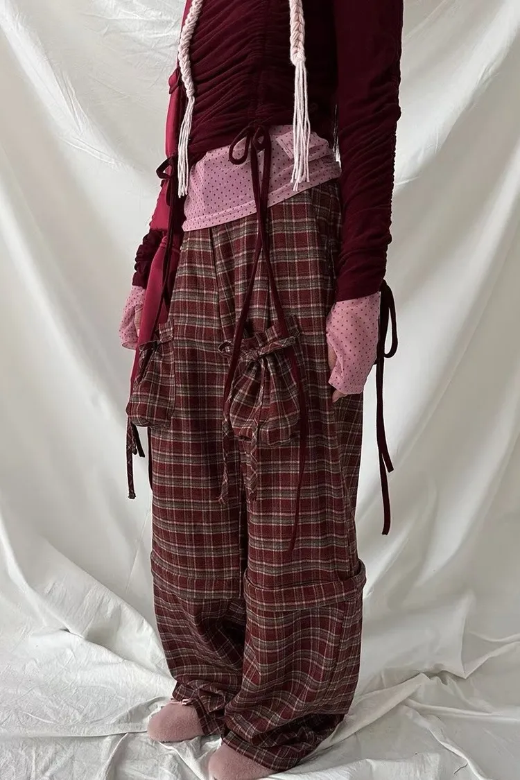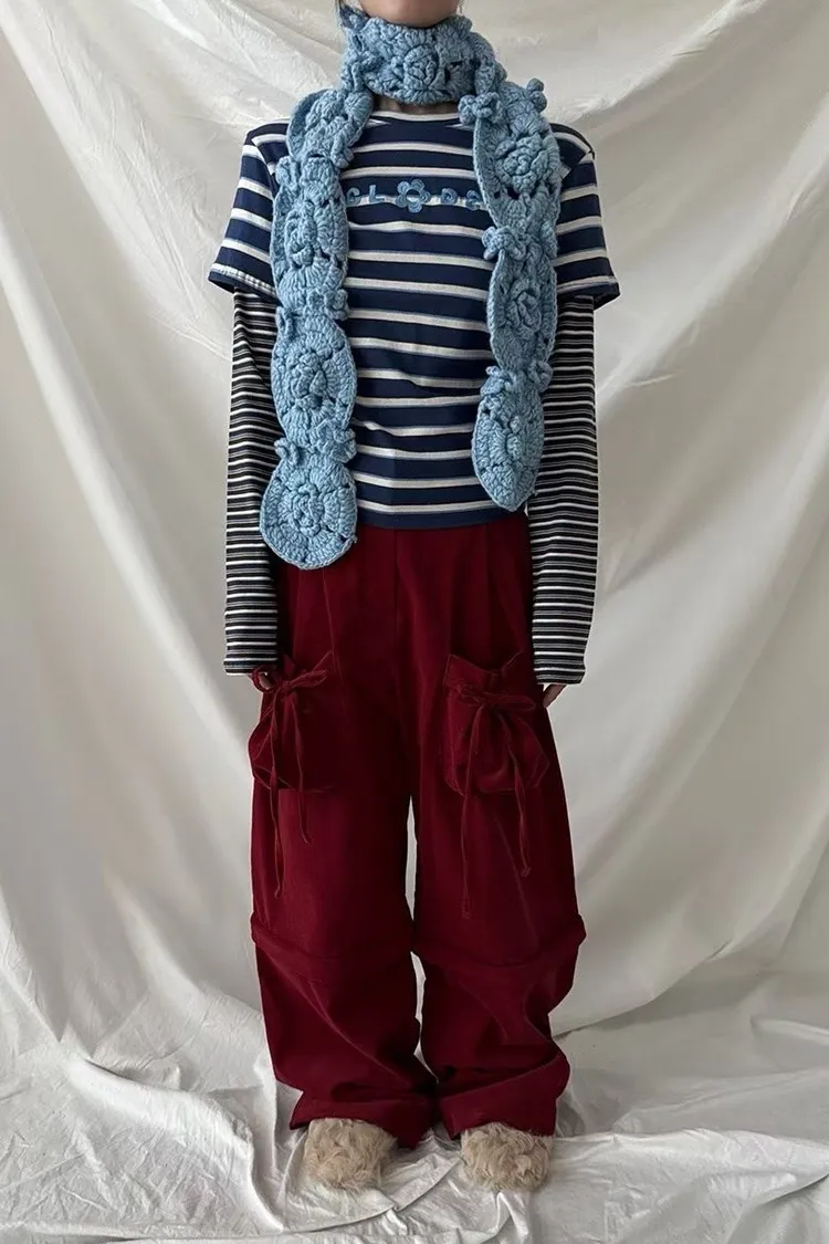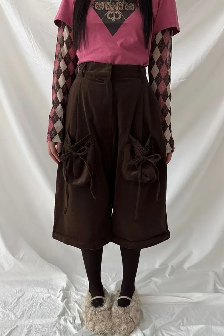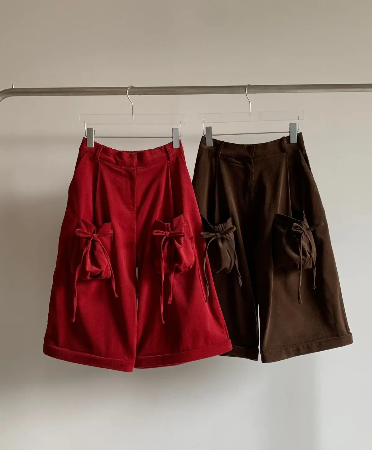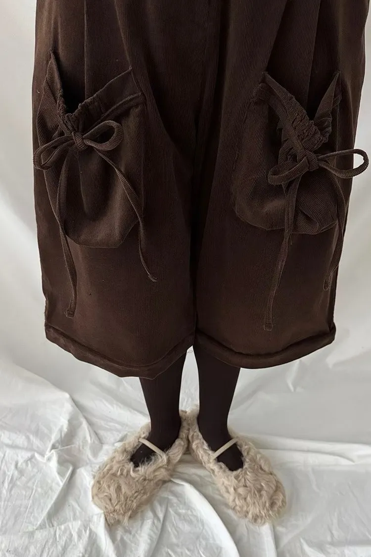 NVB01蝴蝶結綁帶長短兩穿束腰休閒褲