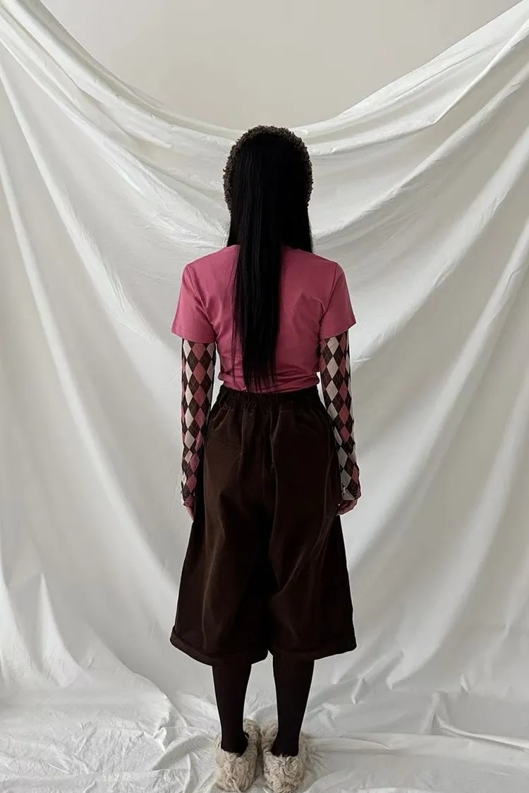 格紋款是磨毛棉料、純色款式燈芯絨面料