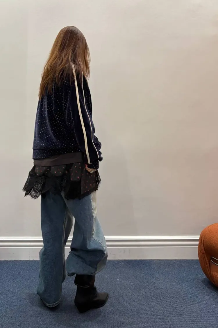 棕色是米棕拼接、深藍帶有立體點點、黑色是有碎花圖紋