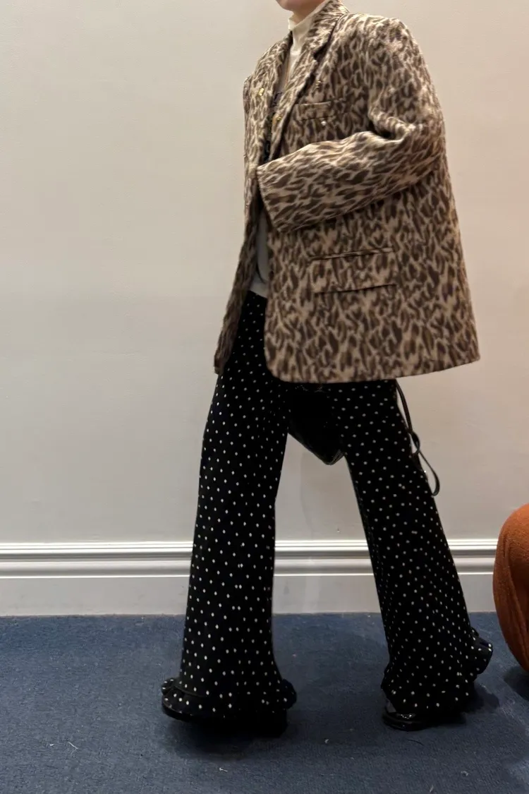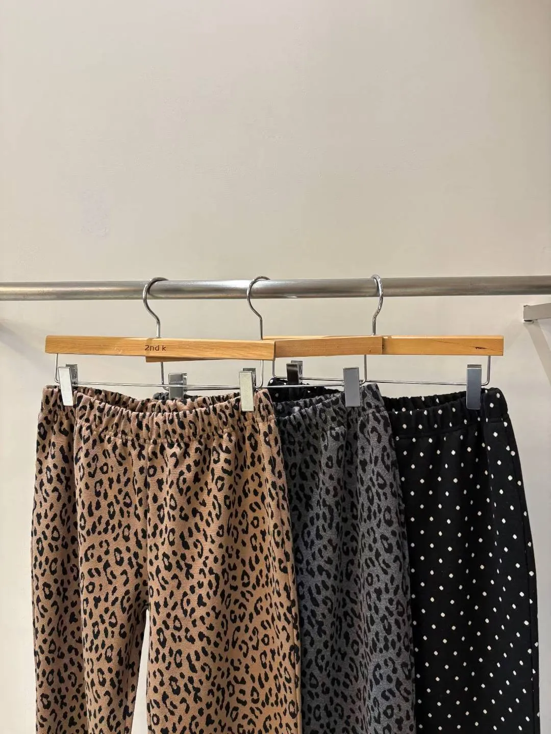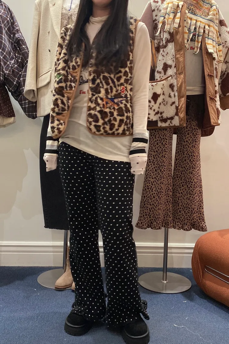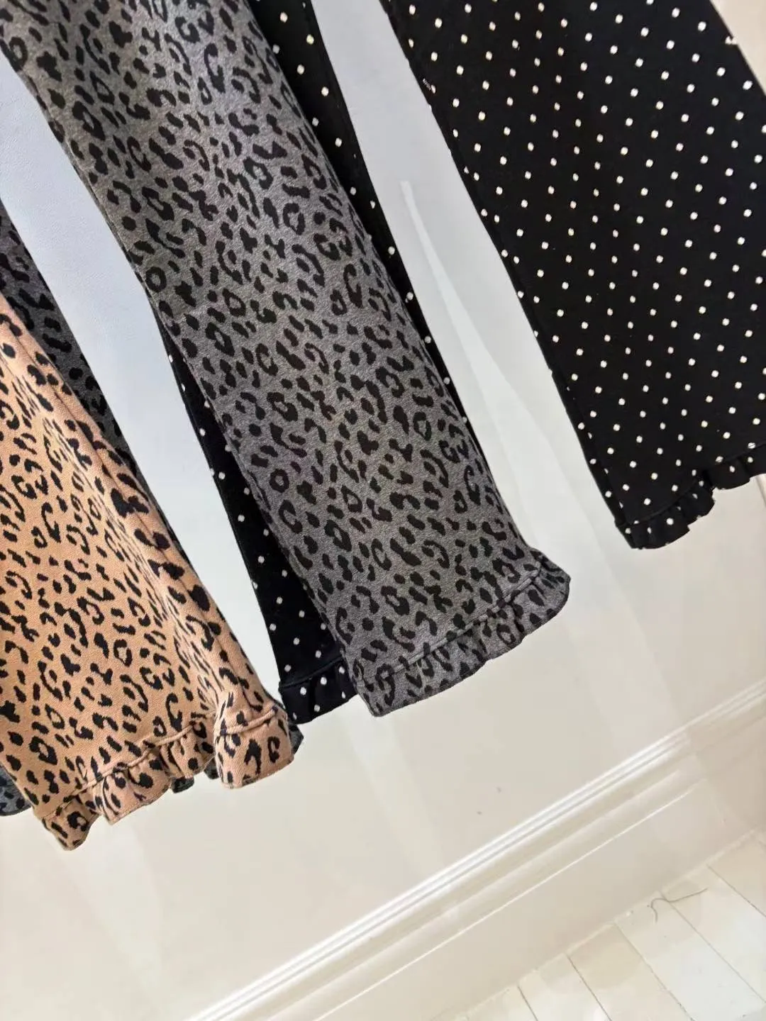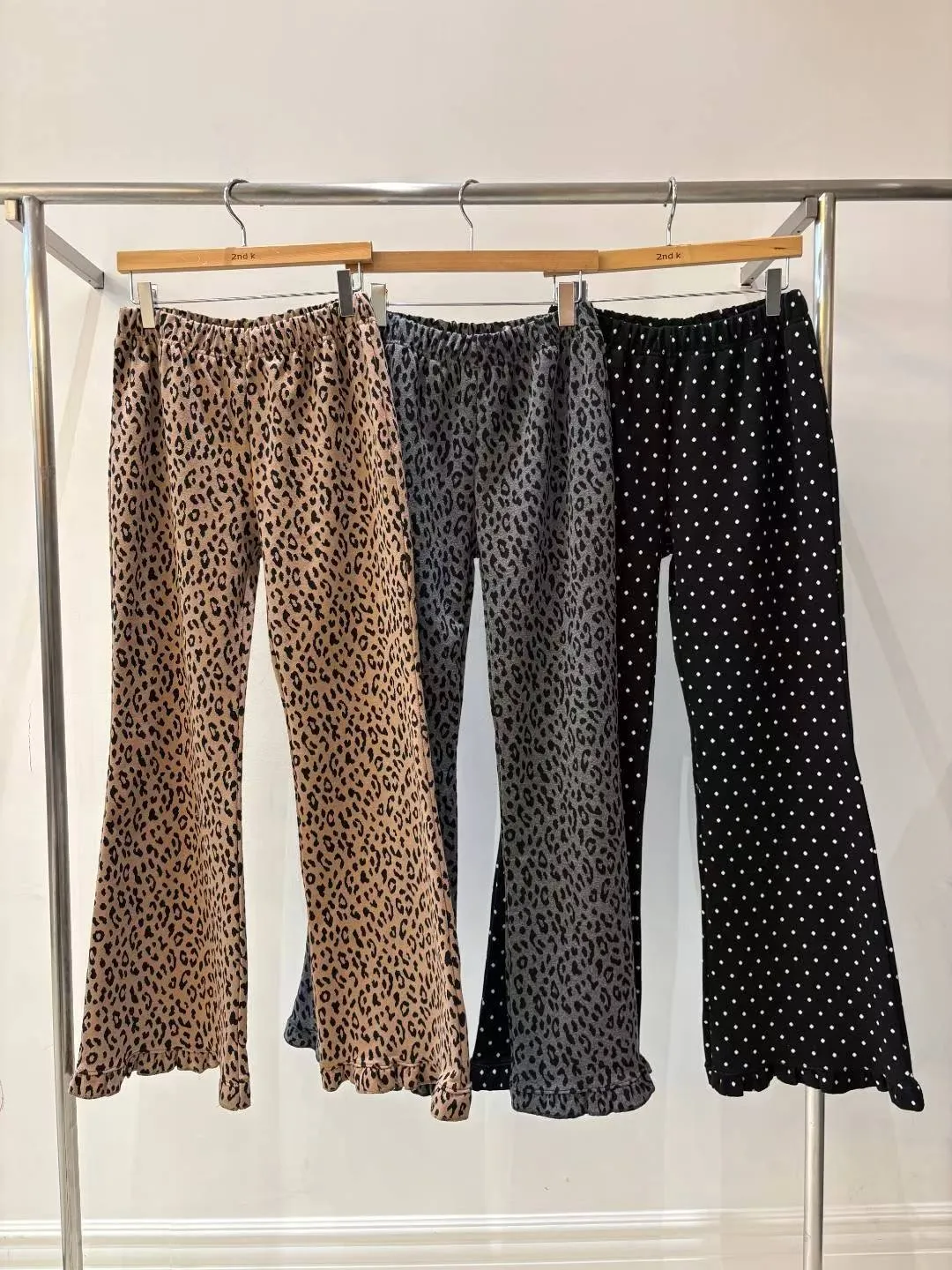 NVB11貓系豹紋x泡泡點點波浪喇叭褲