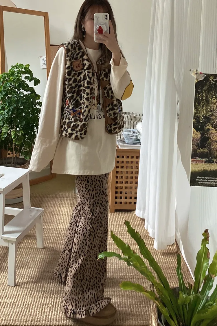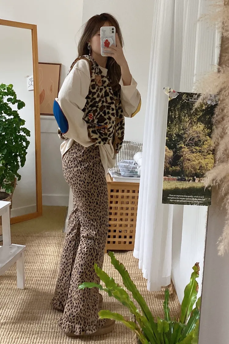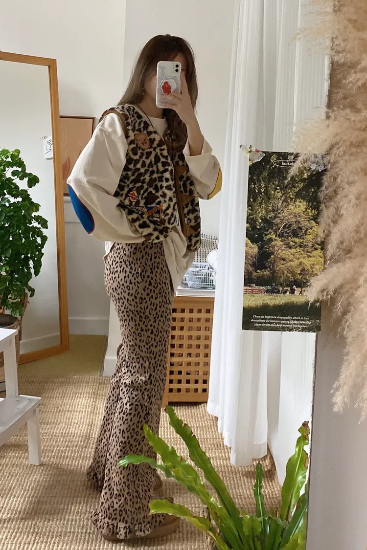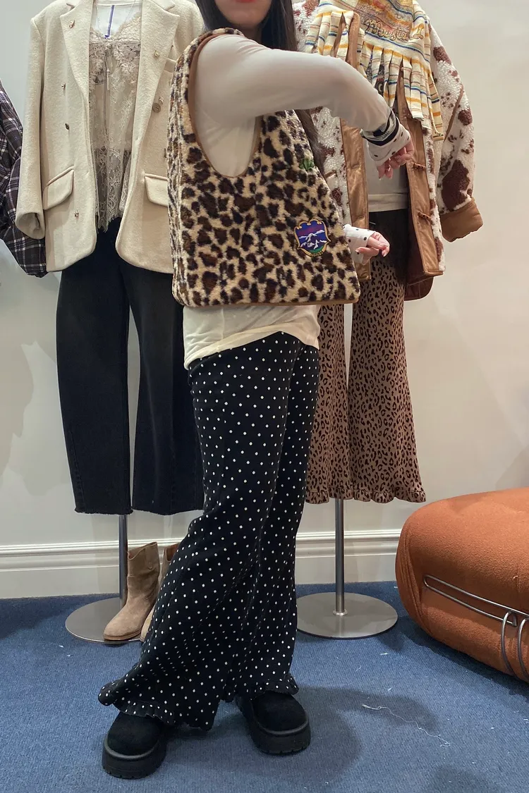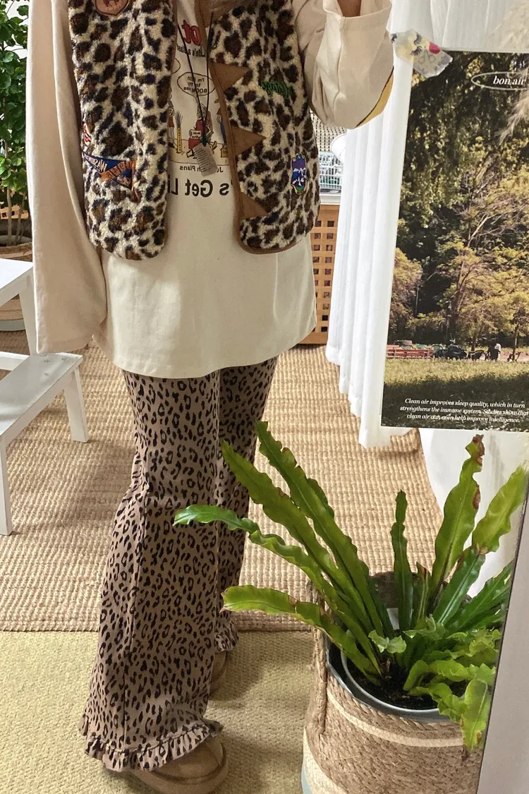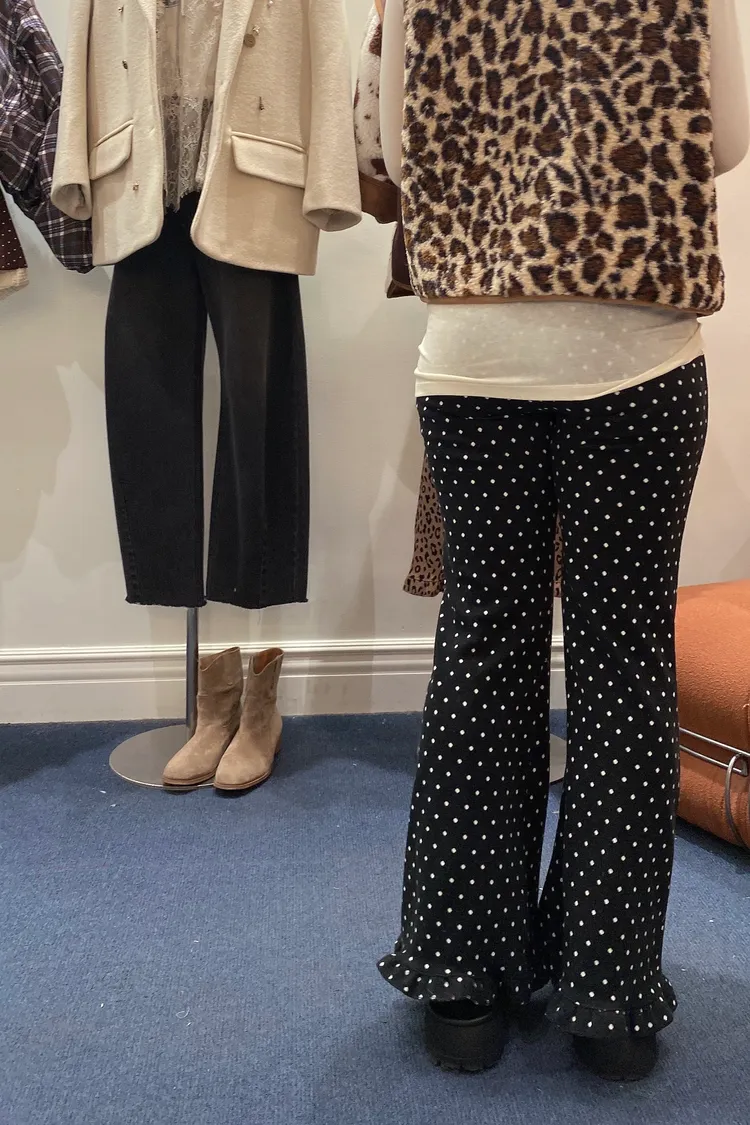 NVB11貓系豹紋x泡泡點點波浪喇叭褲