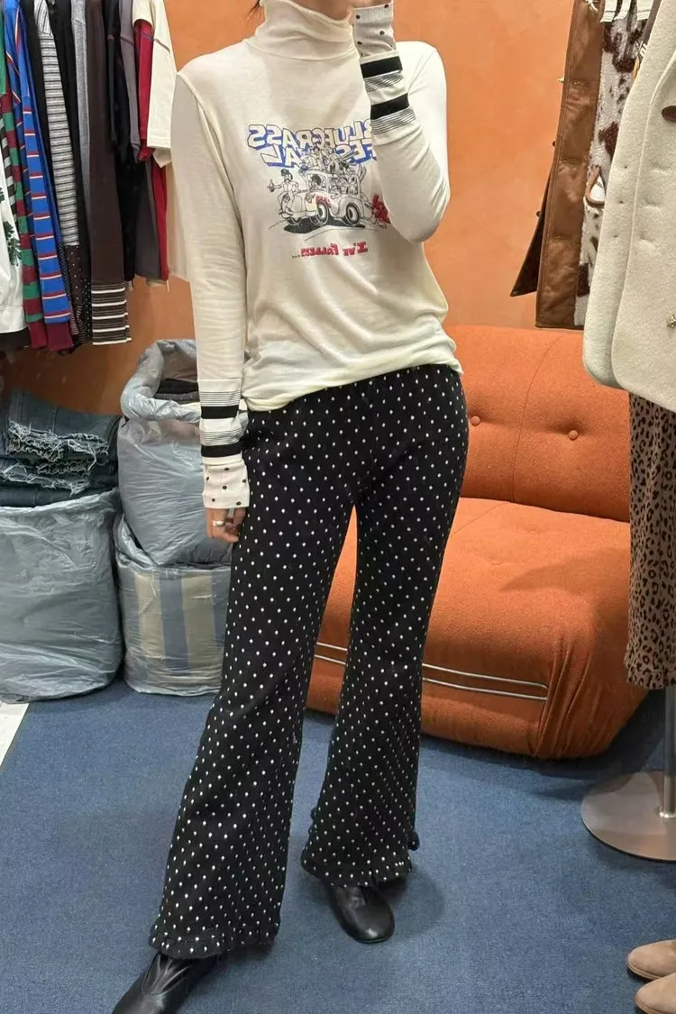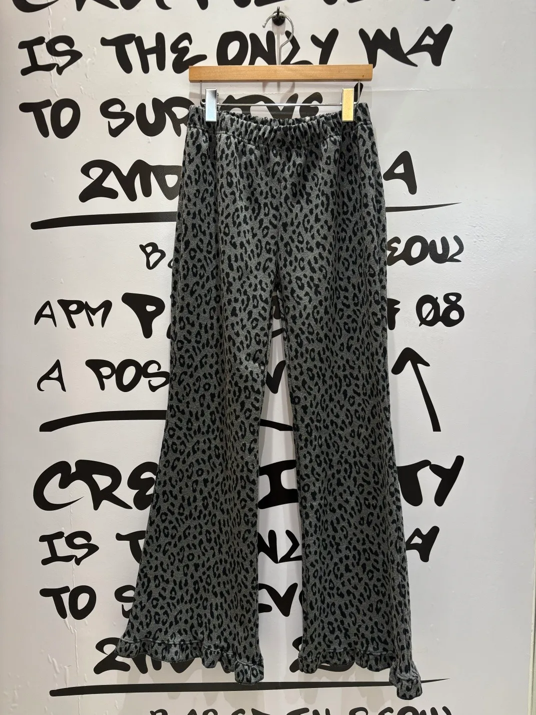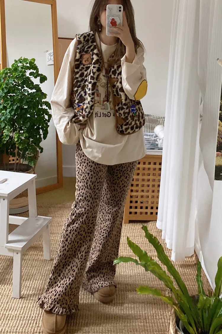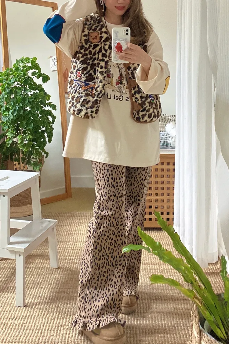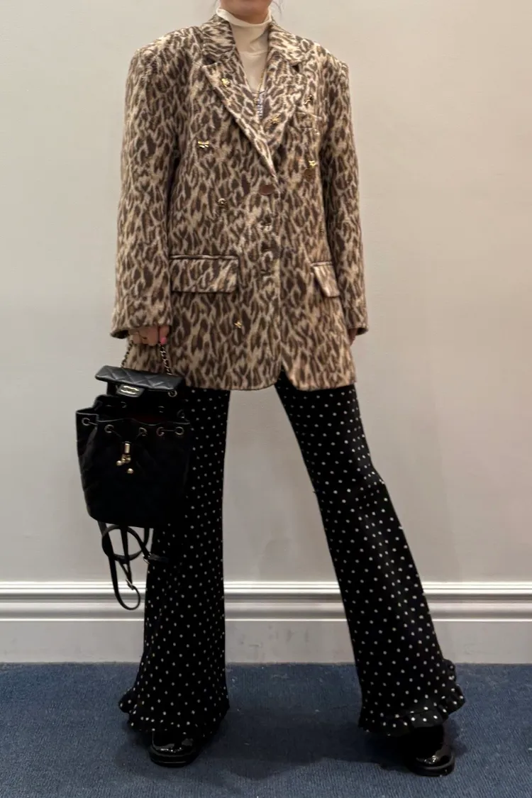 NVB11貓系豹紋x泡泡點點波浪喇叭褲