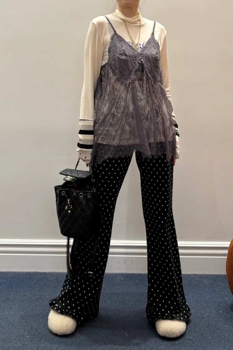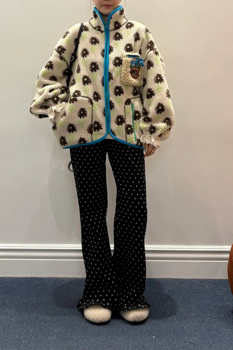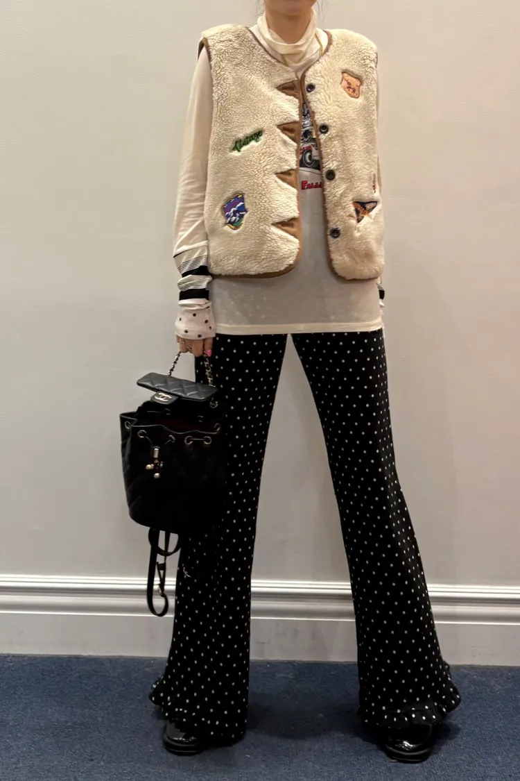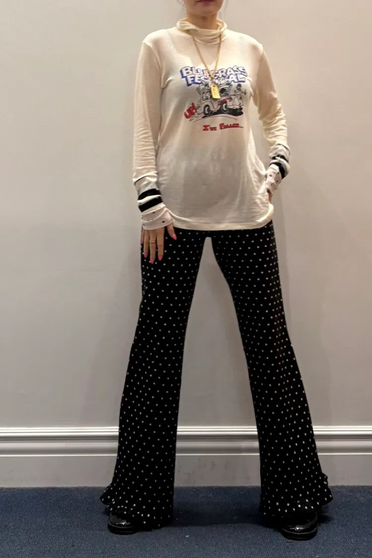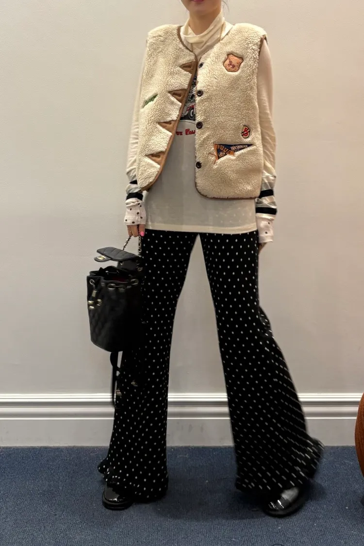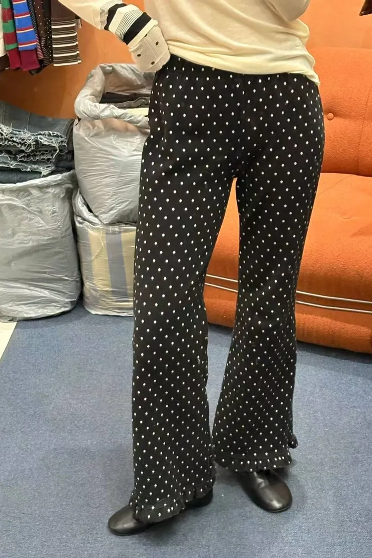 NVB11貓系豹紋x泡泡點點波浪喇叭褲