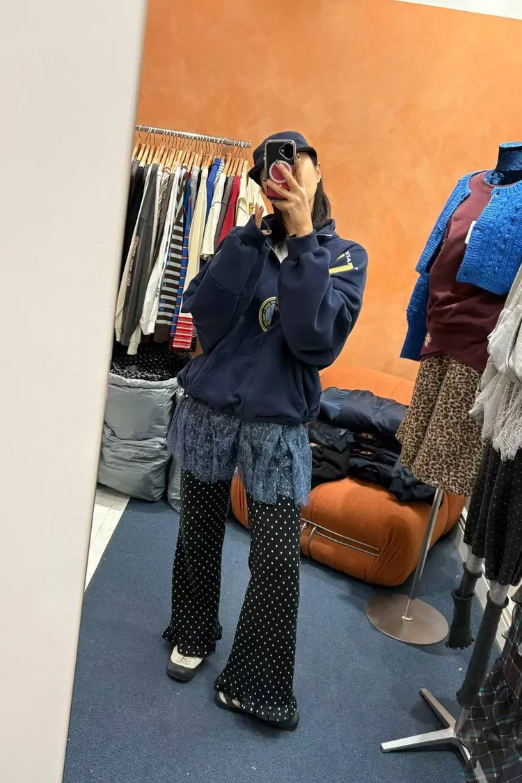 微微喇叭的褲型修飾腿型,還特別加上波浪花邊褲管