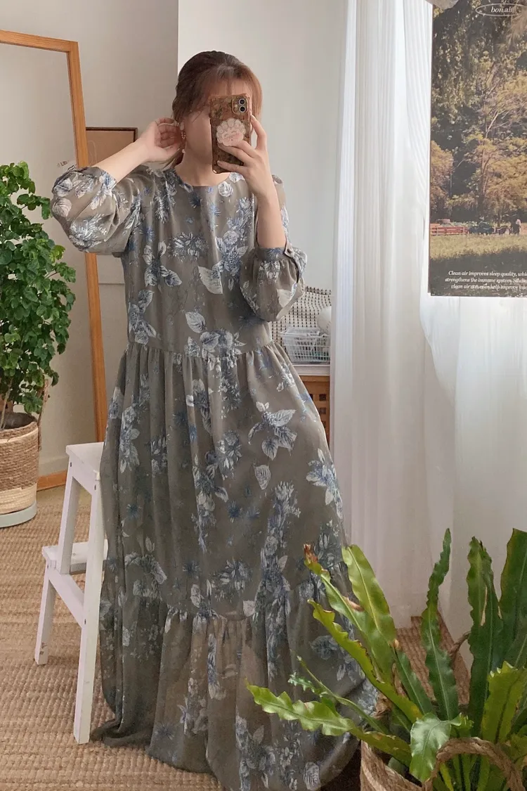 輕飄飄雪紡料子隨步飄動,寬鬆傘狀裙襬修飾身形