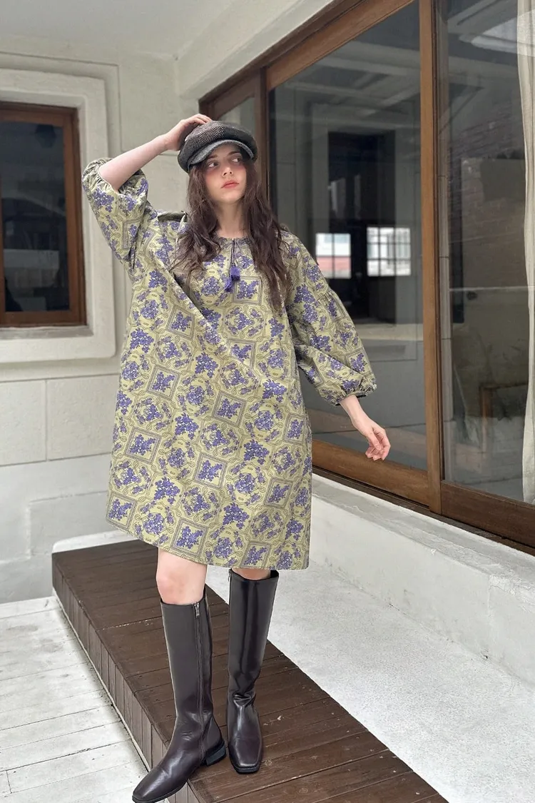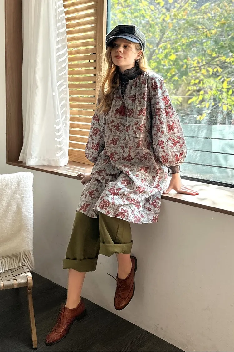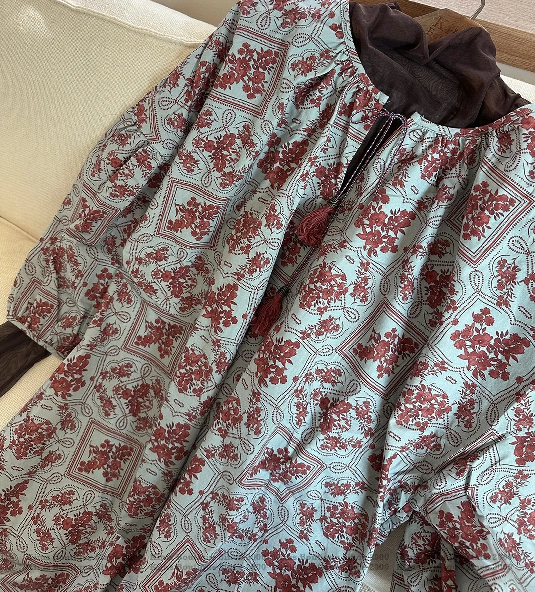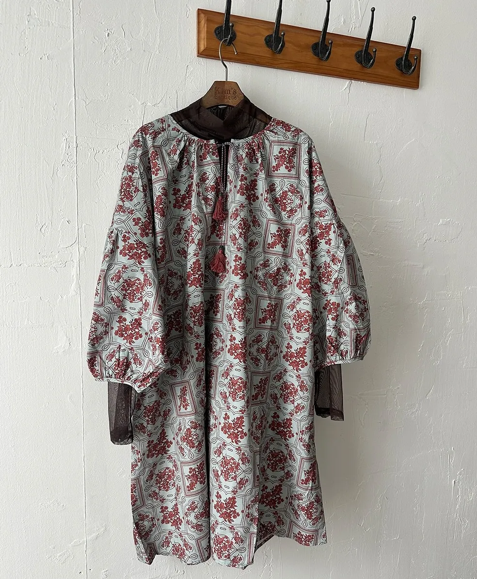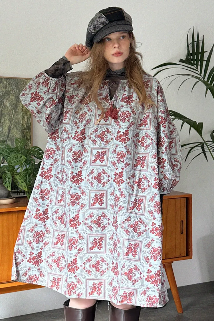 不規則塊狀圖騰印花充滿趣味感,領口抽繩流蘇增添小巧思
