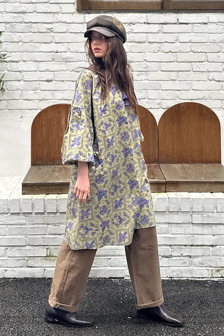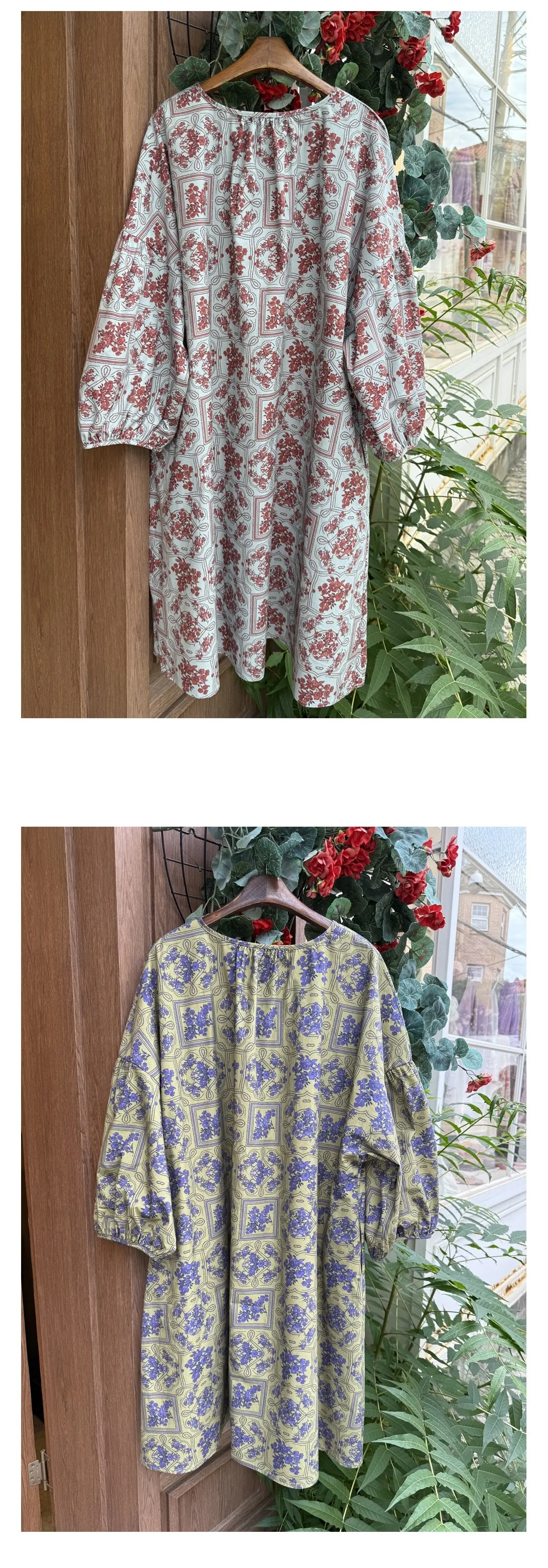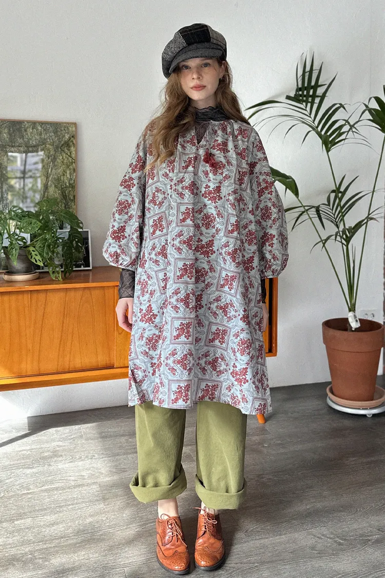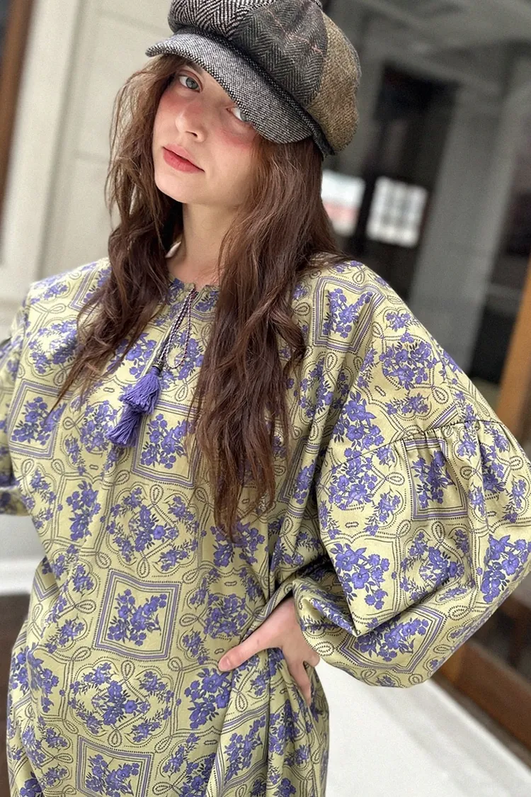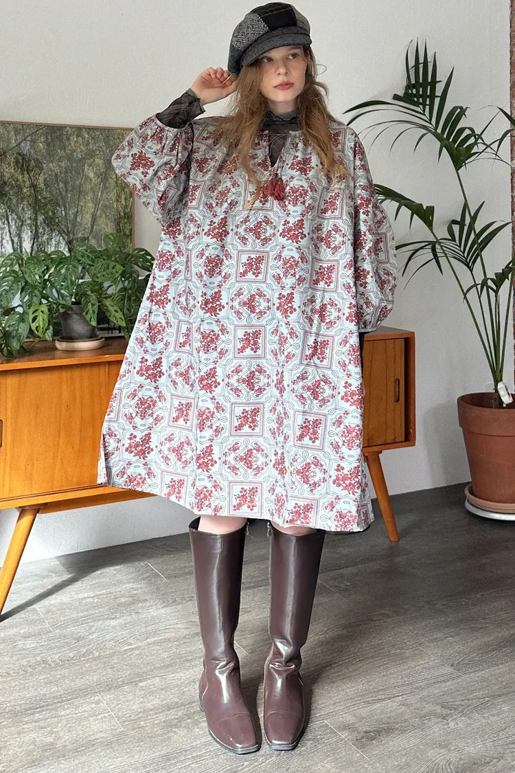 不規則塊狀圖騰印花充滿趣味感,領口抽繩流蘇增添小巧思