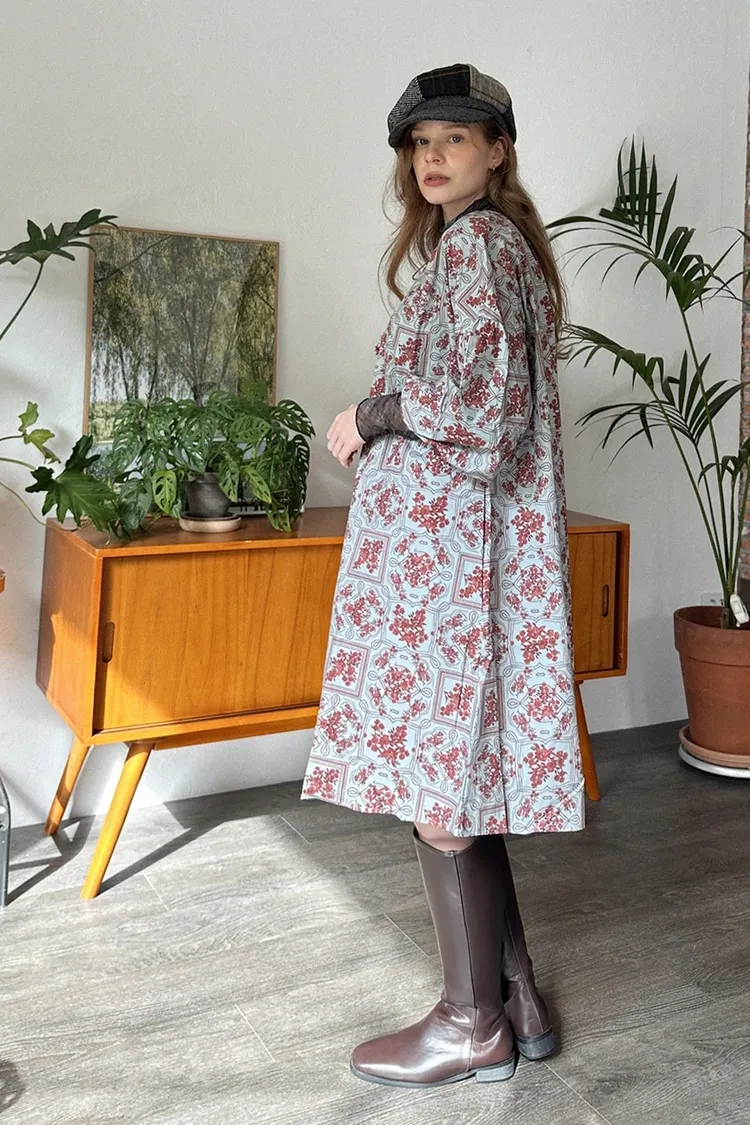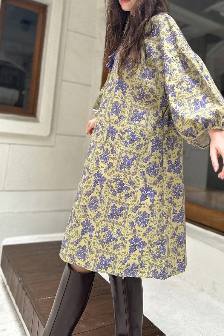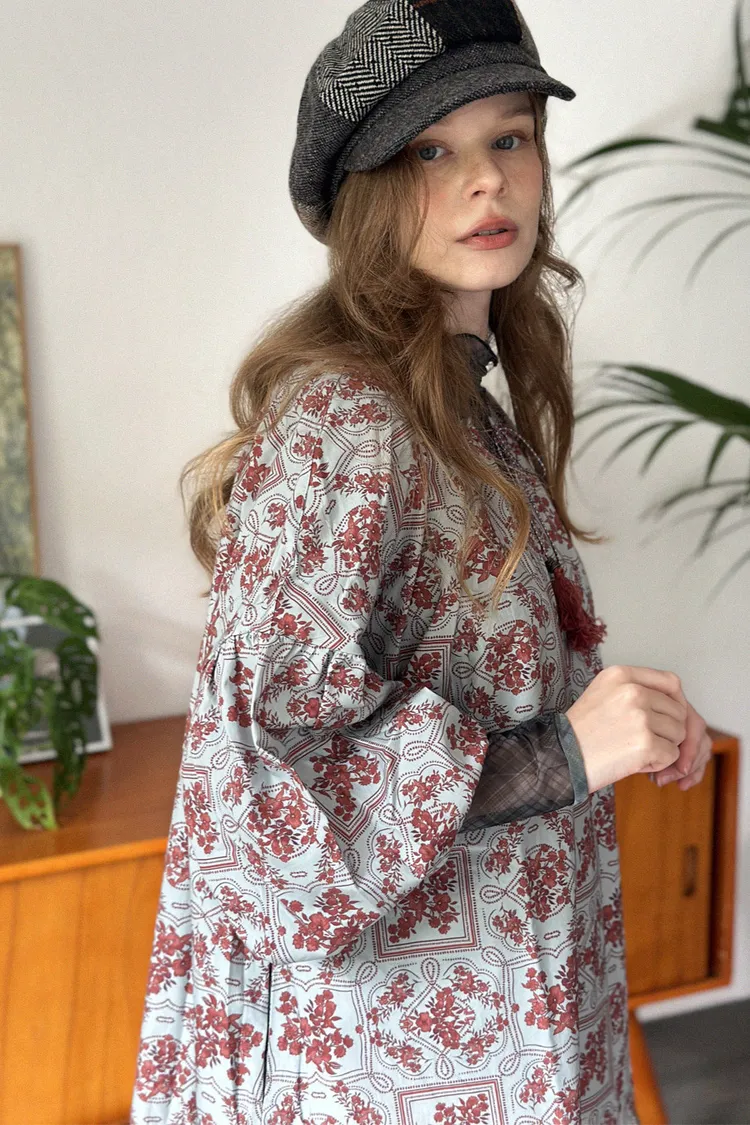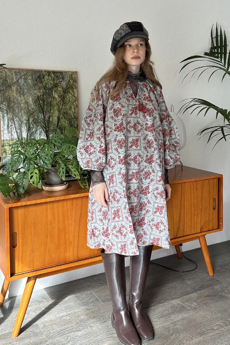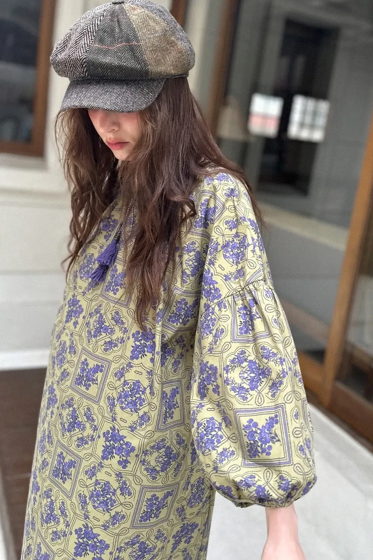 不規則塊狀圖騰印花充滿趣味感,領口抽繩流蘇增添小巧思