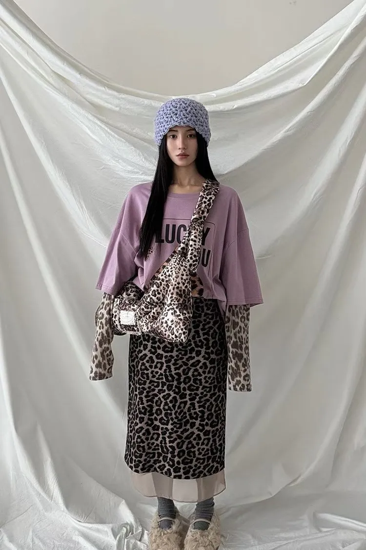 拼接針織手袖再搭上同花色的豹紋,帥氣裡帶點野生魅力