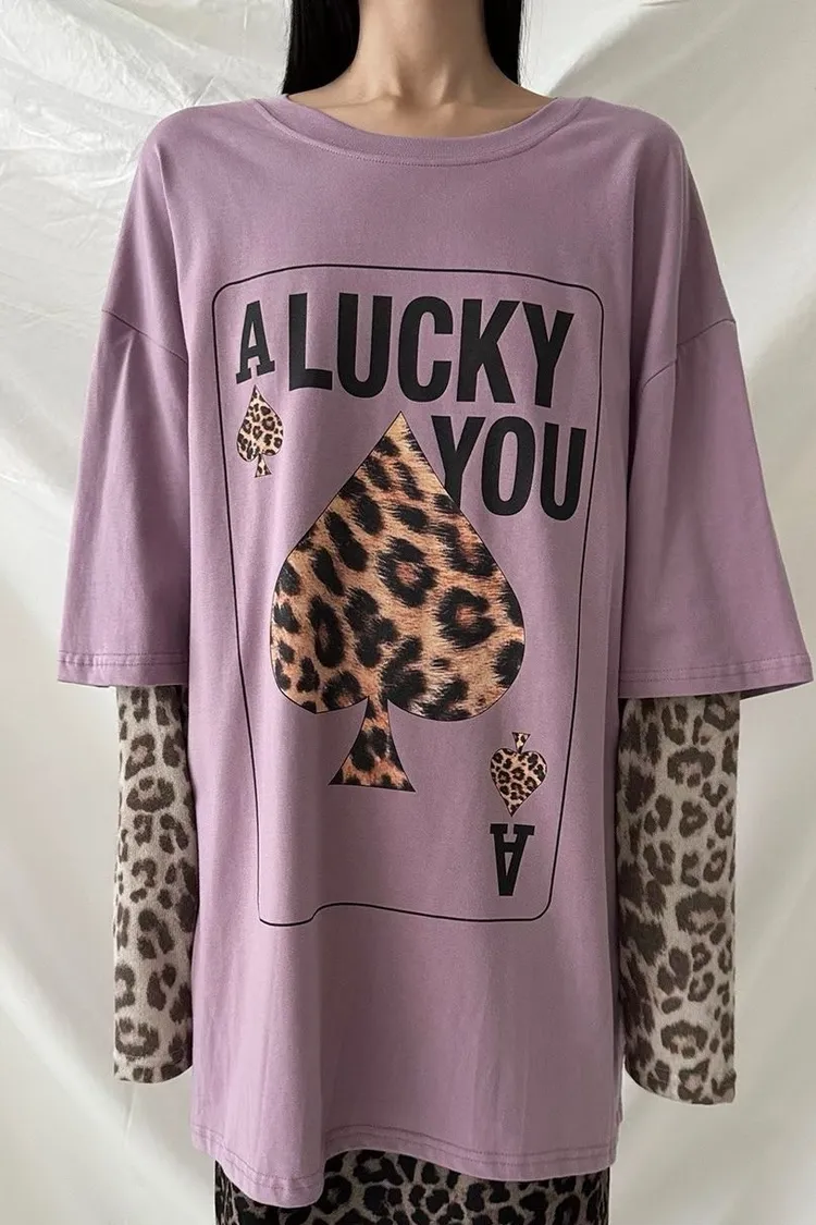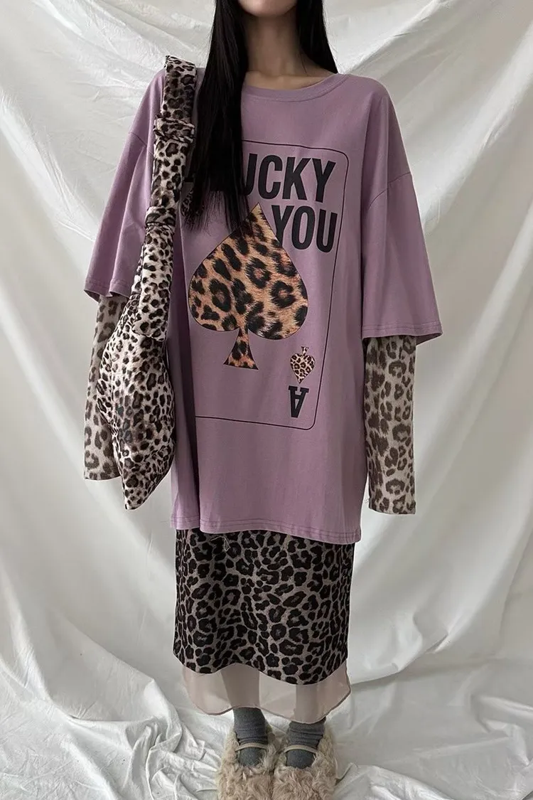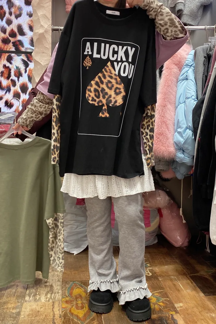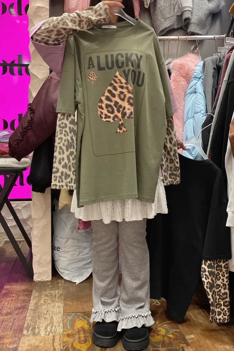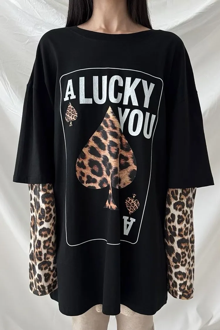 厚磅棉料材質給你温暖安全感,胸前的黑桃A換成豹紋圖案