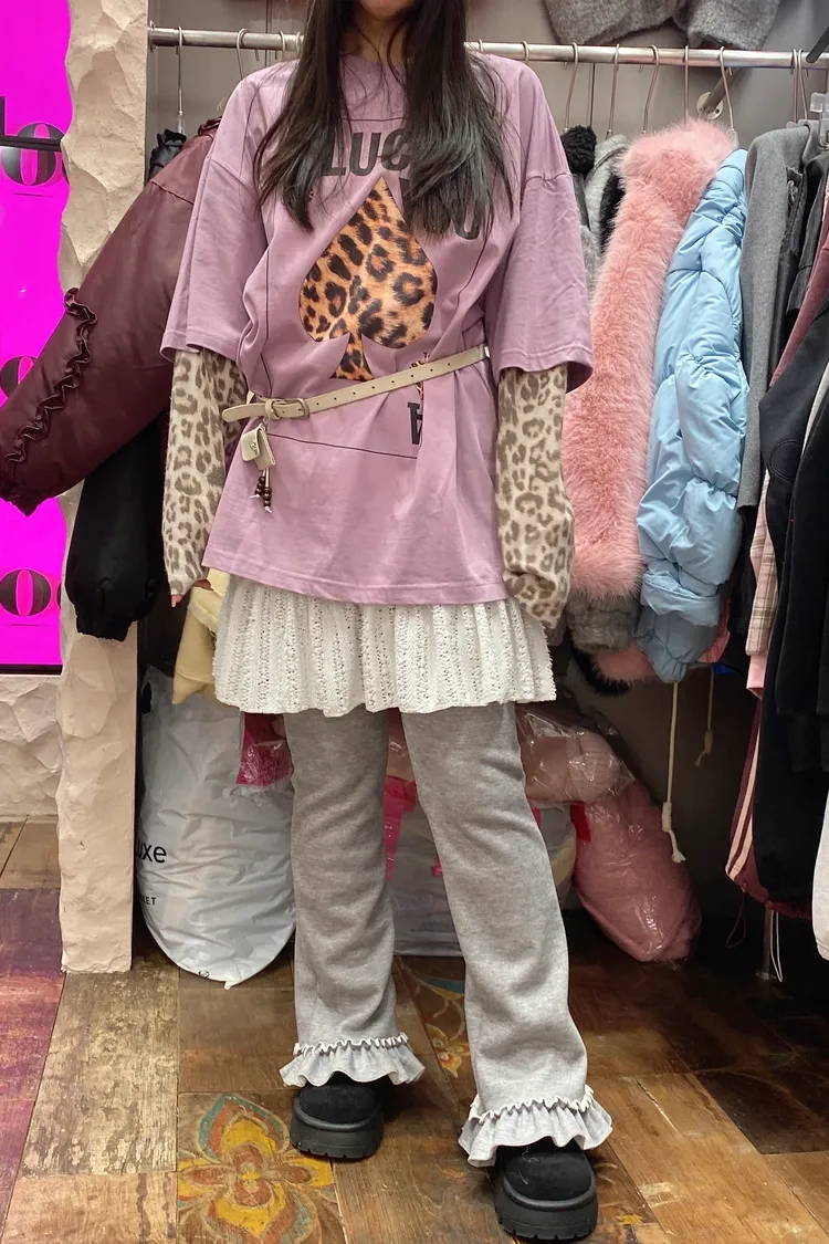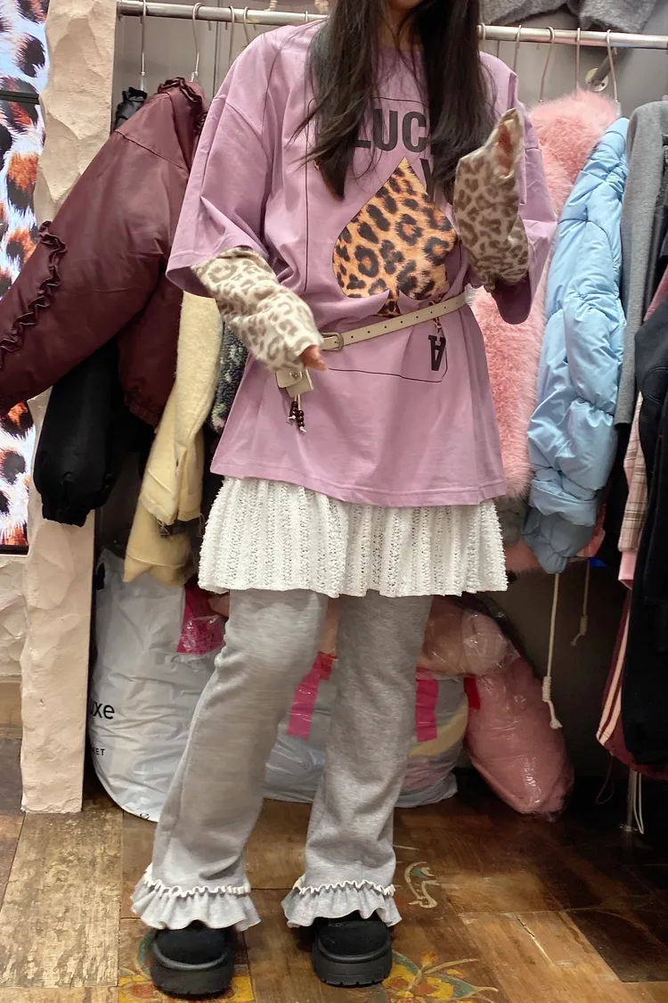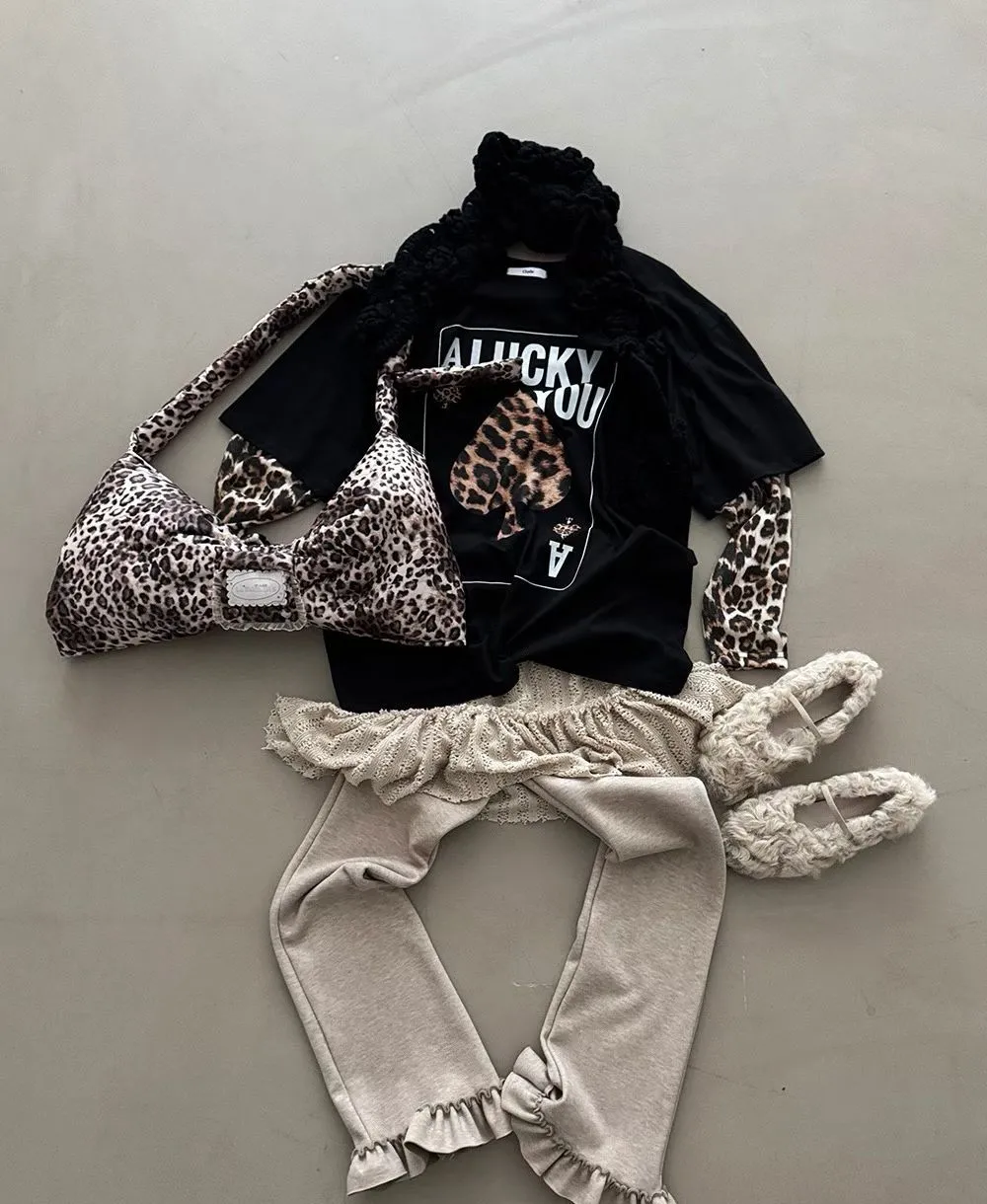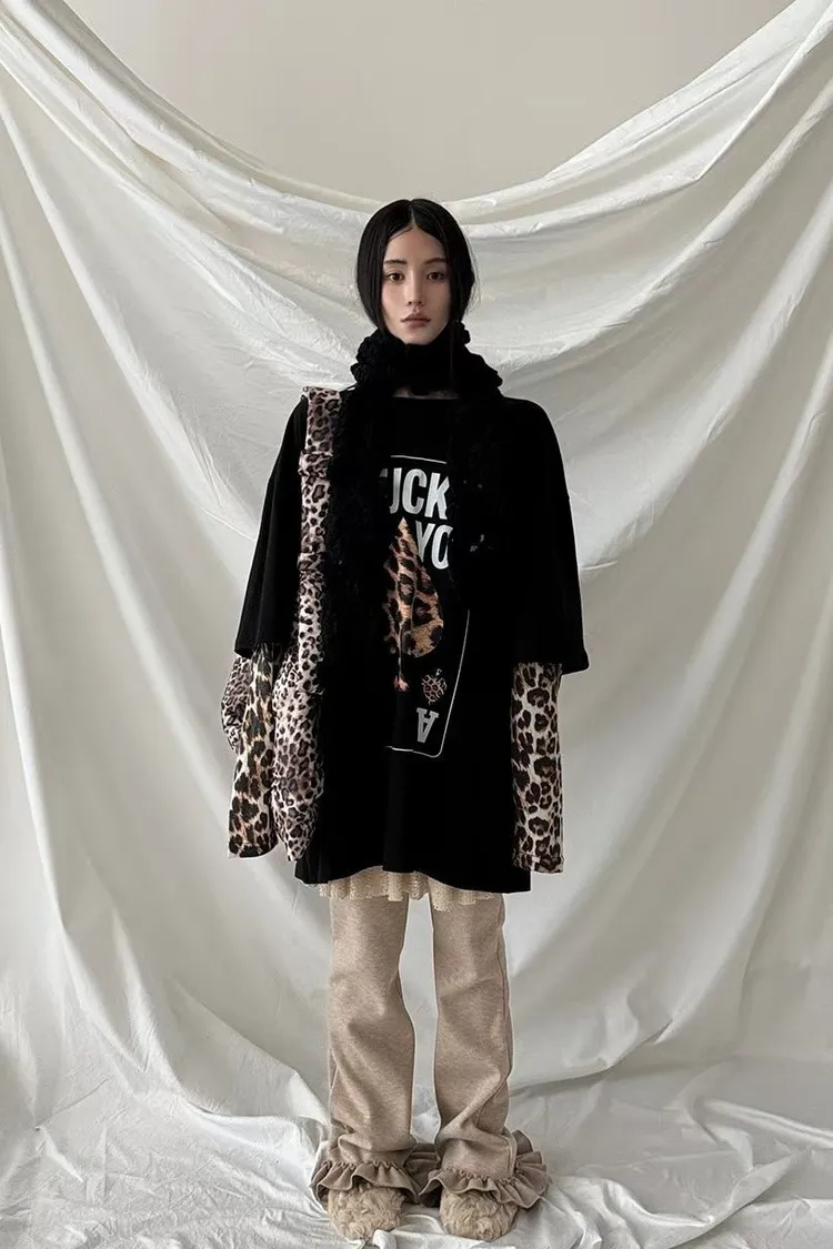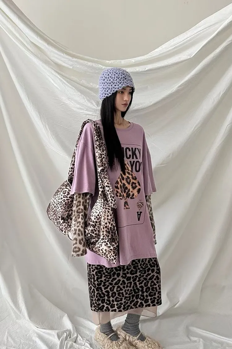 厚磅棉料材質給你温暖安全感,胸前的黑桃A換成豹紋圖案