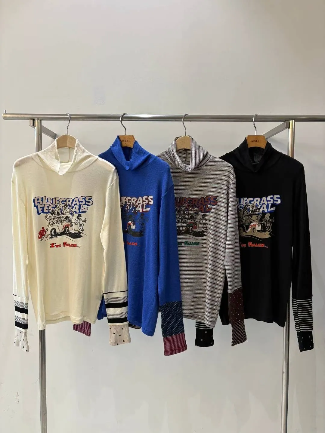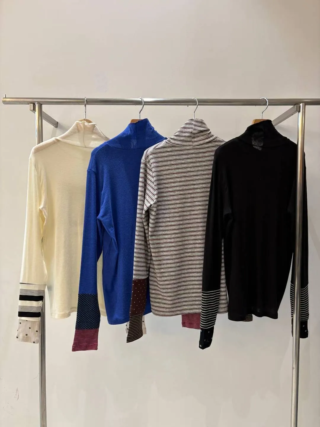 羊毛混紡材質,彈性面料雖薄但含有羊毛,所以有一定的保暖度 鬆鬆立領布勒脖,穿起來超舒服、S-L妞都可以穿 整件是復古美式漫畫風格印花,手袖還做了兩種不同圖案拼接 一邊是線條、一邊是點點,撞出滿滿玩味設計感 一件就能完成復古又俏皮的冬日造型