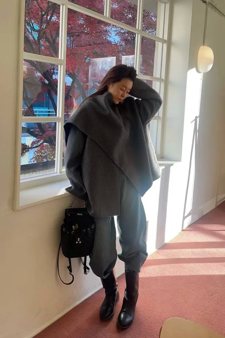 羊毛100%、手工製 帶披肩圍巾的短大衣設計,不需要額外思考搭配隨手一披就很有造型 寬鬆蓋臀版型,肩線自然、線條乾淨、手感超好 S-XL妞都可以穿、有口袋 純色簡約大方、格紋則帶一點文雅底氣 不管是哪一款,都會是整個冬天想反覆穿的那件外套單邊領口有顆釦,可固定