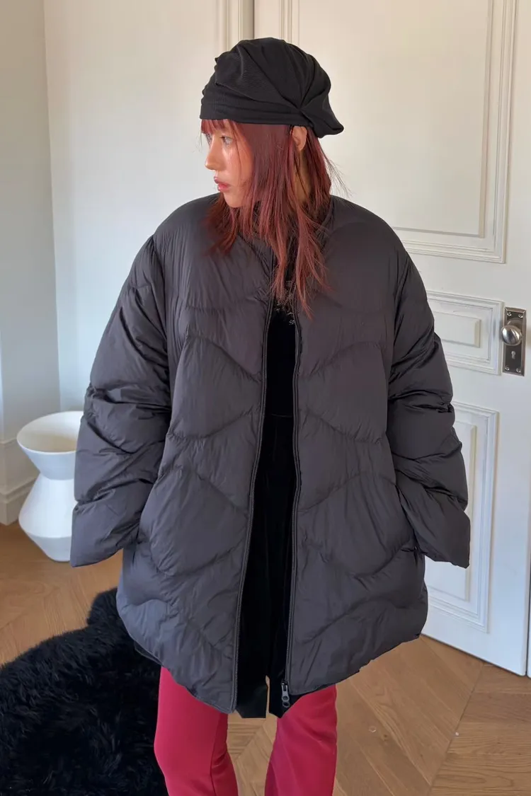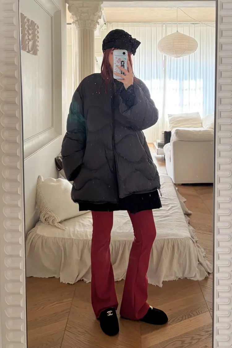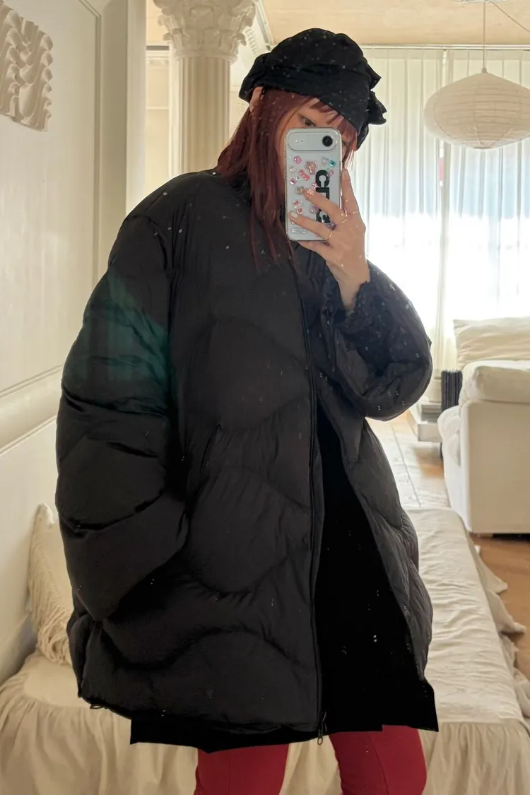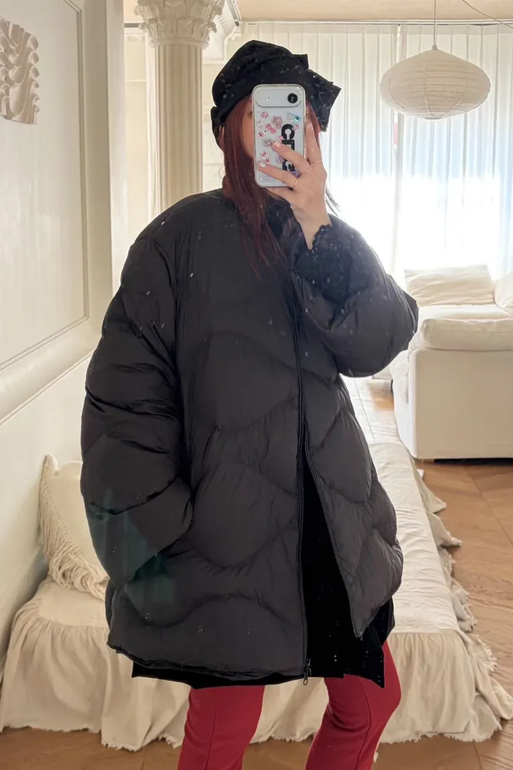 外層尼龍衍縫耐看又有質感,寬鬆蓋臀版型,S-XL妞都可以穿
