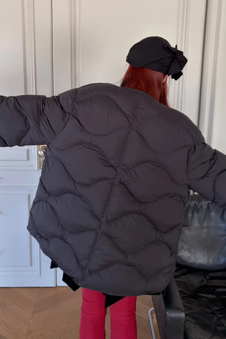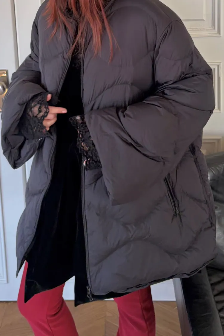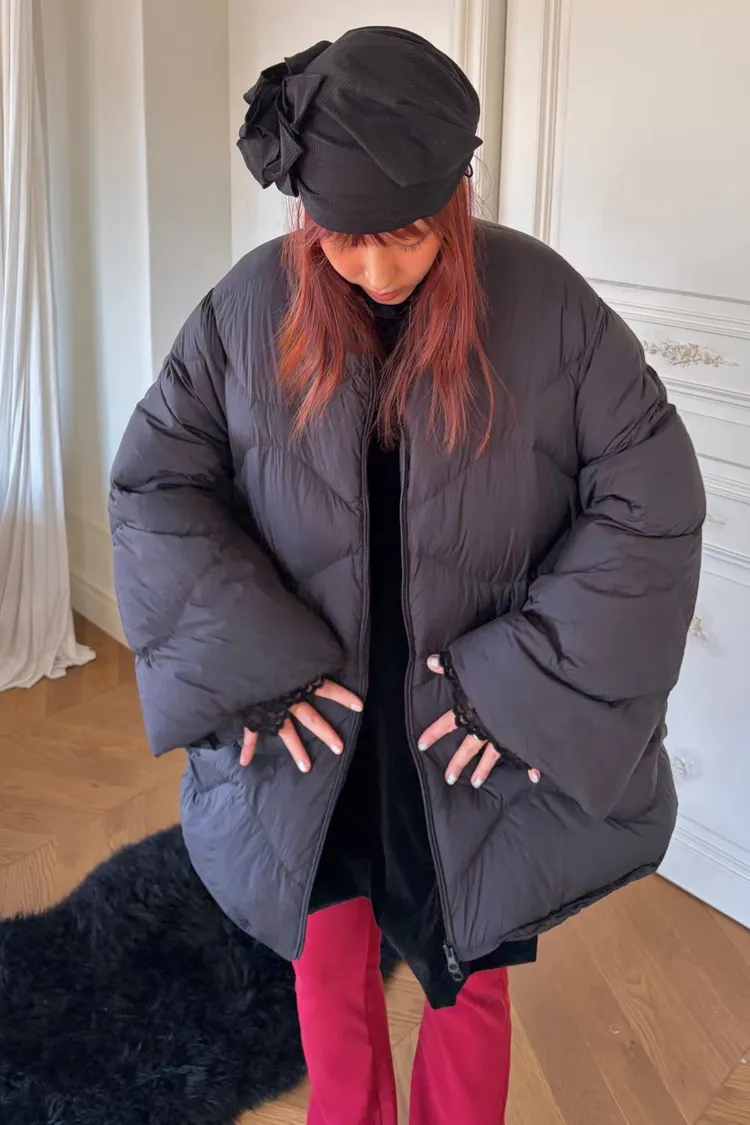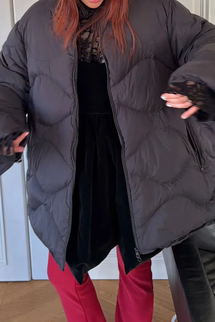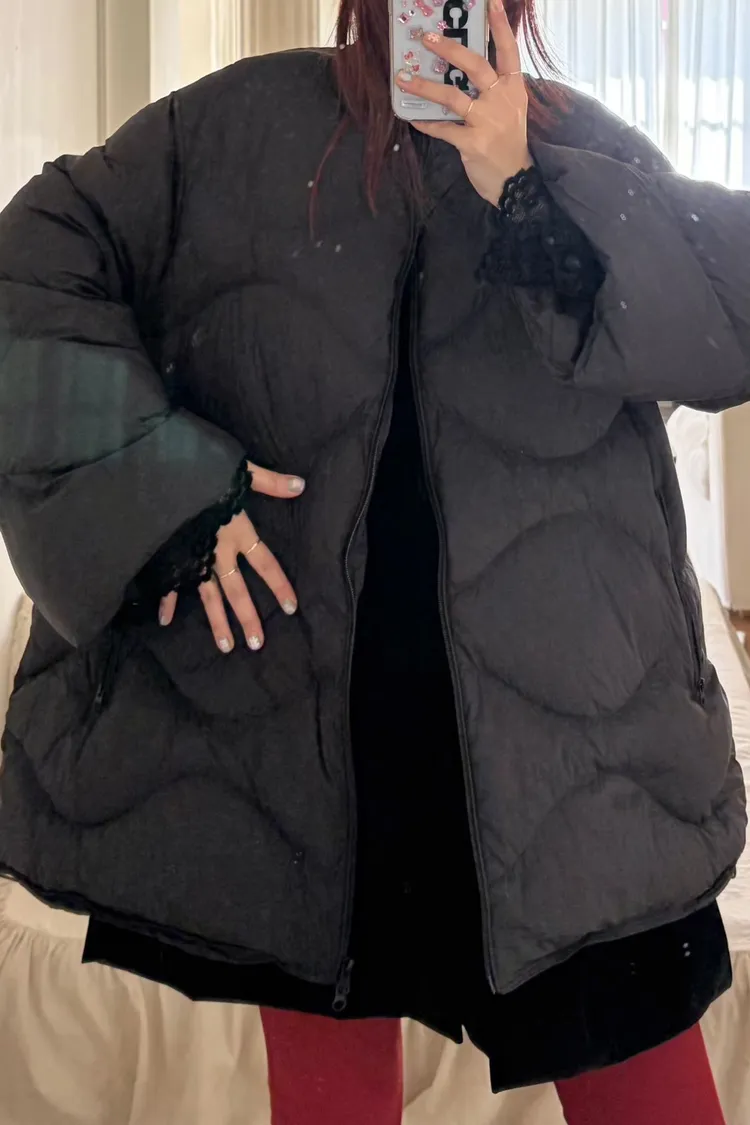 外層尼龍衍縫耐看又有質感,寬鬆蓋臀版型,S-XL妞都可以穿