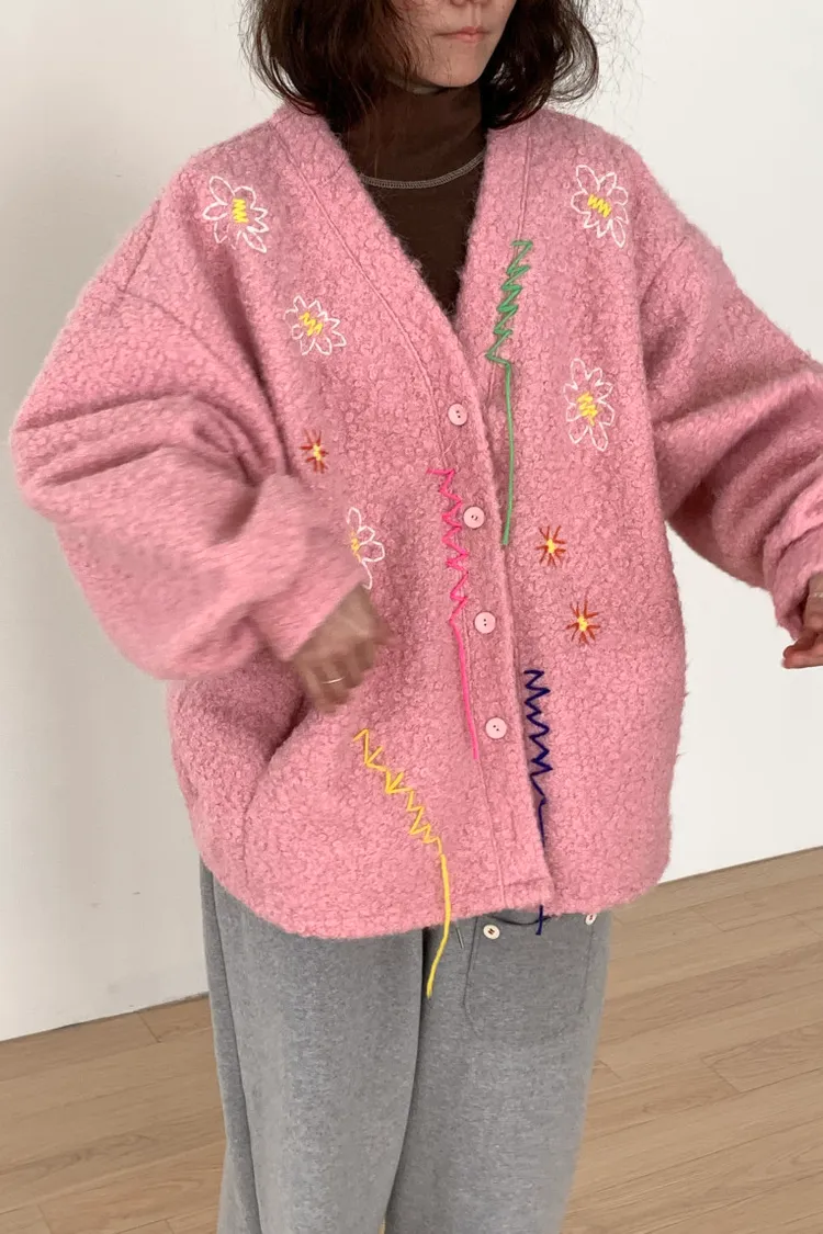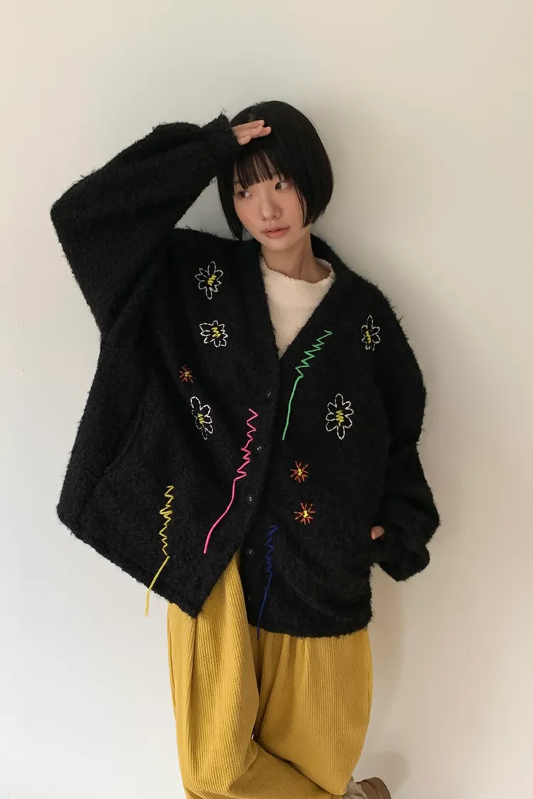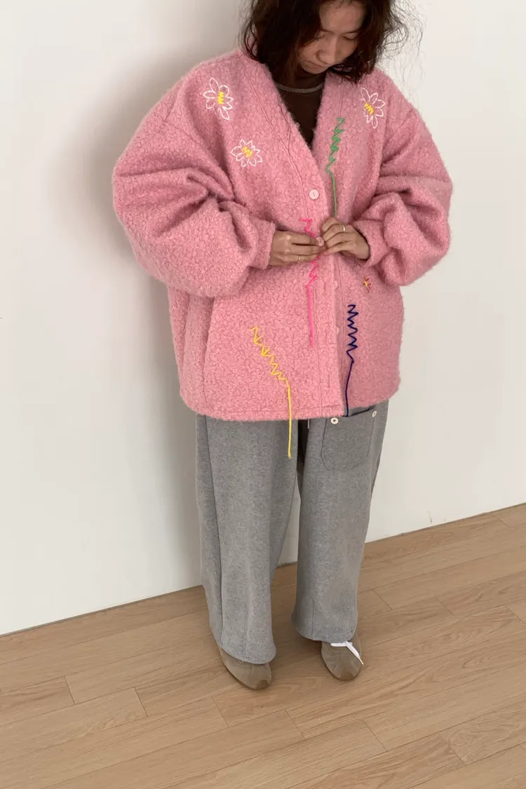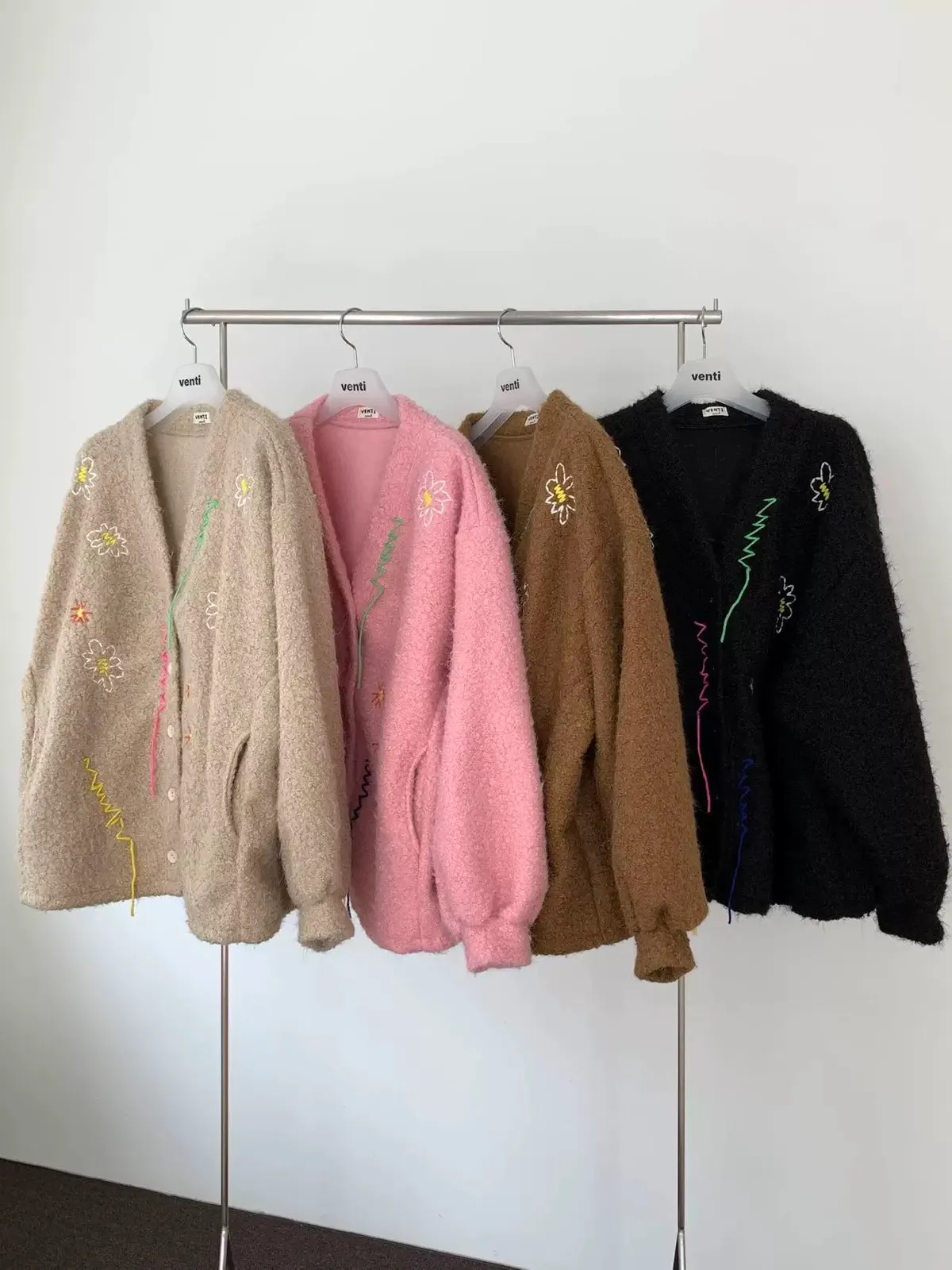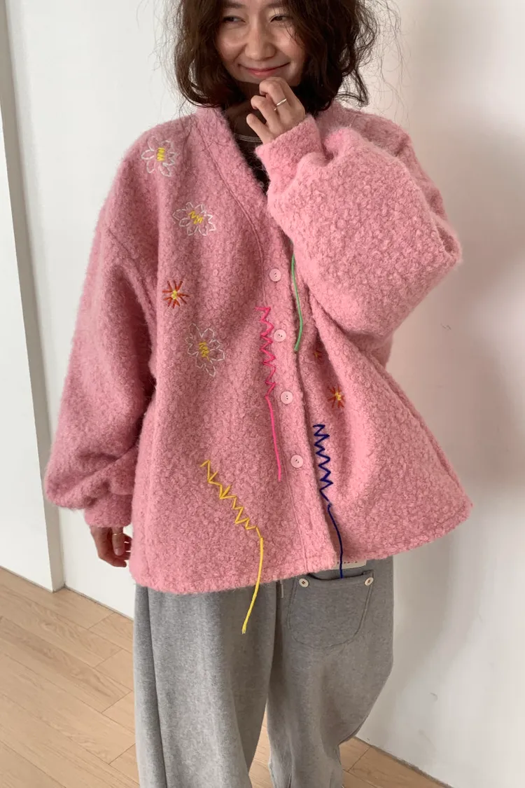 超級活潑甜美,每一朵花、每一條線都是手工縫製 撞色線條鮮明又俏皮,穿上立刻成為視覺焦點 羊毛10%柔軟保暖 落肩寬鬆蓋臀版型,S-XL妞都可以穿 有口袋,隨便搭都能打造少女感十足的亮眼造型 韓國熱銷色是粉