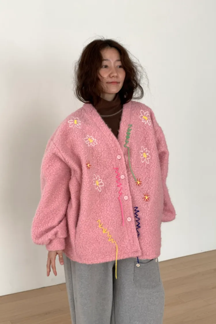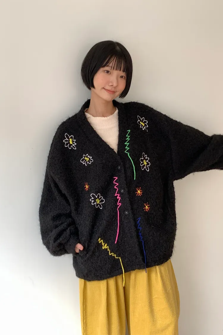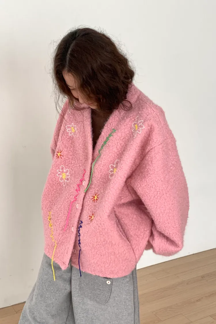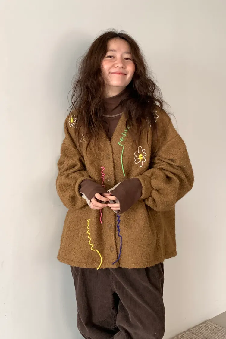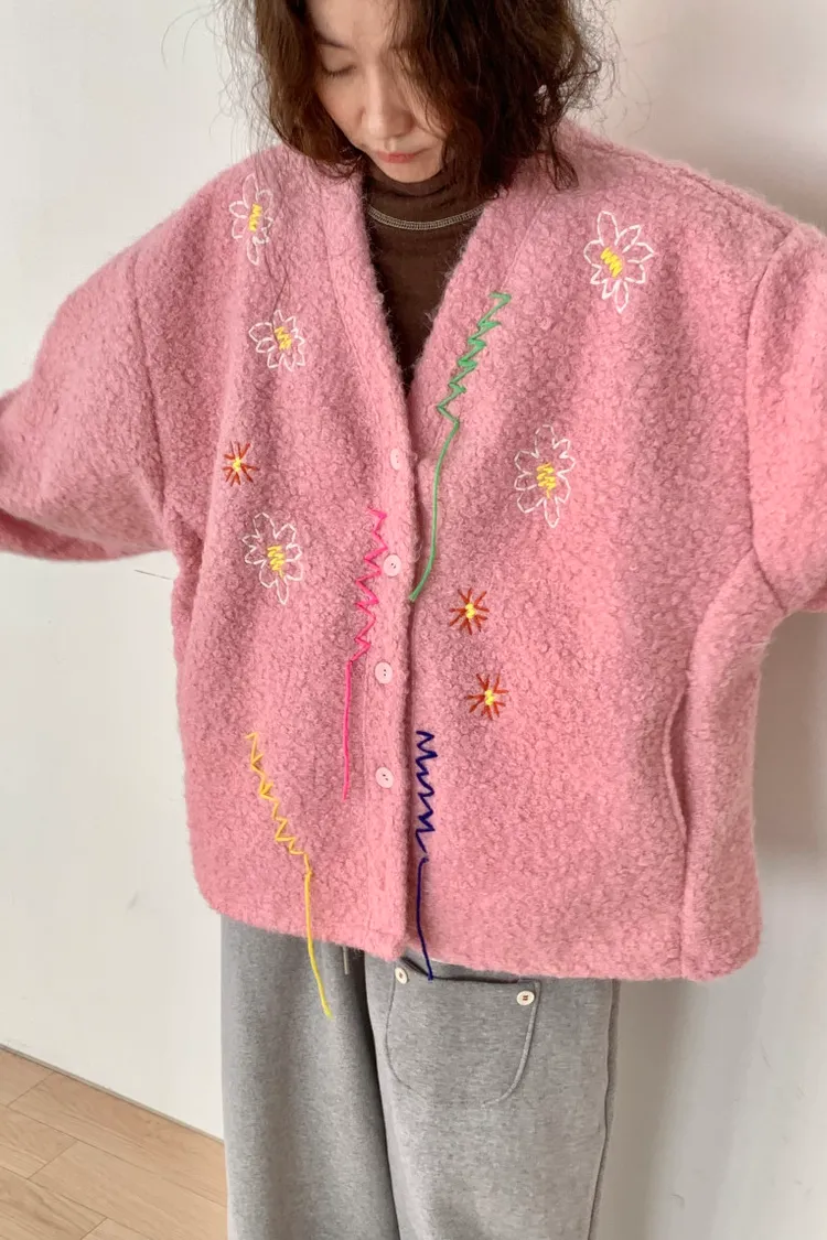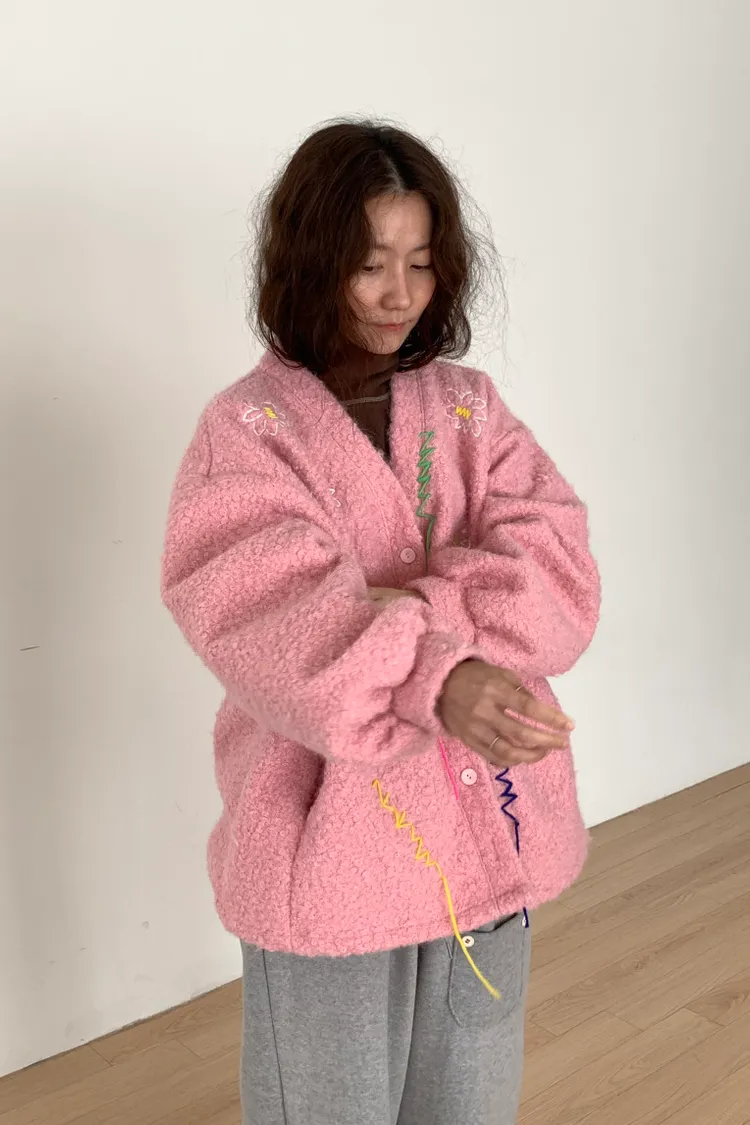 超級活潑甜美,每一朵花、每一條線都是手工縫製 撞色線條鮮明又俏皮,穿上立刻成為視覺焦點 羊毛10%柔軟保暖 落肩寬鬆蓋臀版型,S-XL妞都可以穿 有口袋,隨便搭都能打造少女感十足的亮眼造型 韓國熱銷色是粉