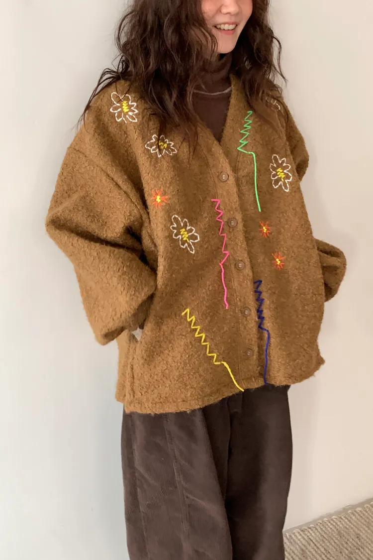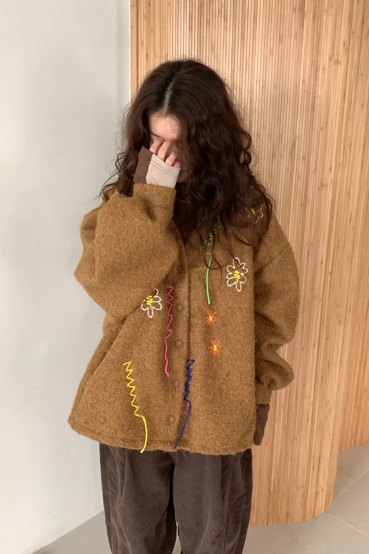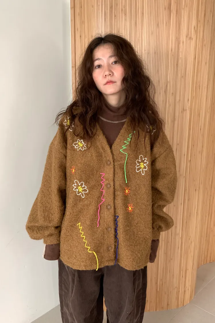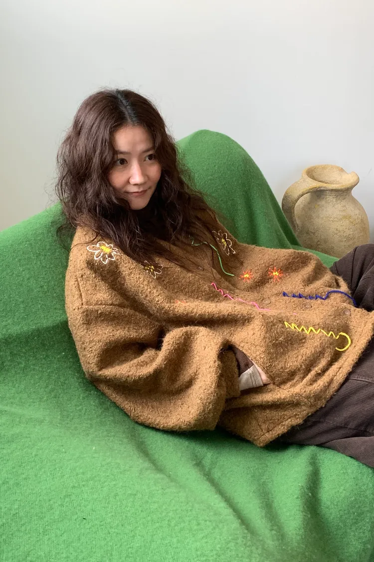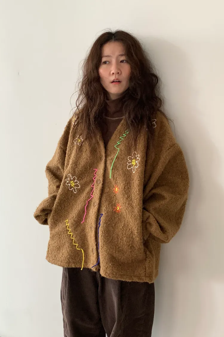 超級活潑甜美,每一朵花、每一條線都是手工縫製 撞色線條鮮明又俏皮,穿上立刻成為視覺焦點 羊毛10%柔軟保暖 落肩寬鬆蓋臀版型,S-XL妞都可以穿 有口袋,隨便搭都能打造少女感十足的亮眼造型 韓國熱銷色是粉