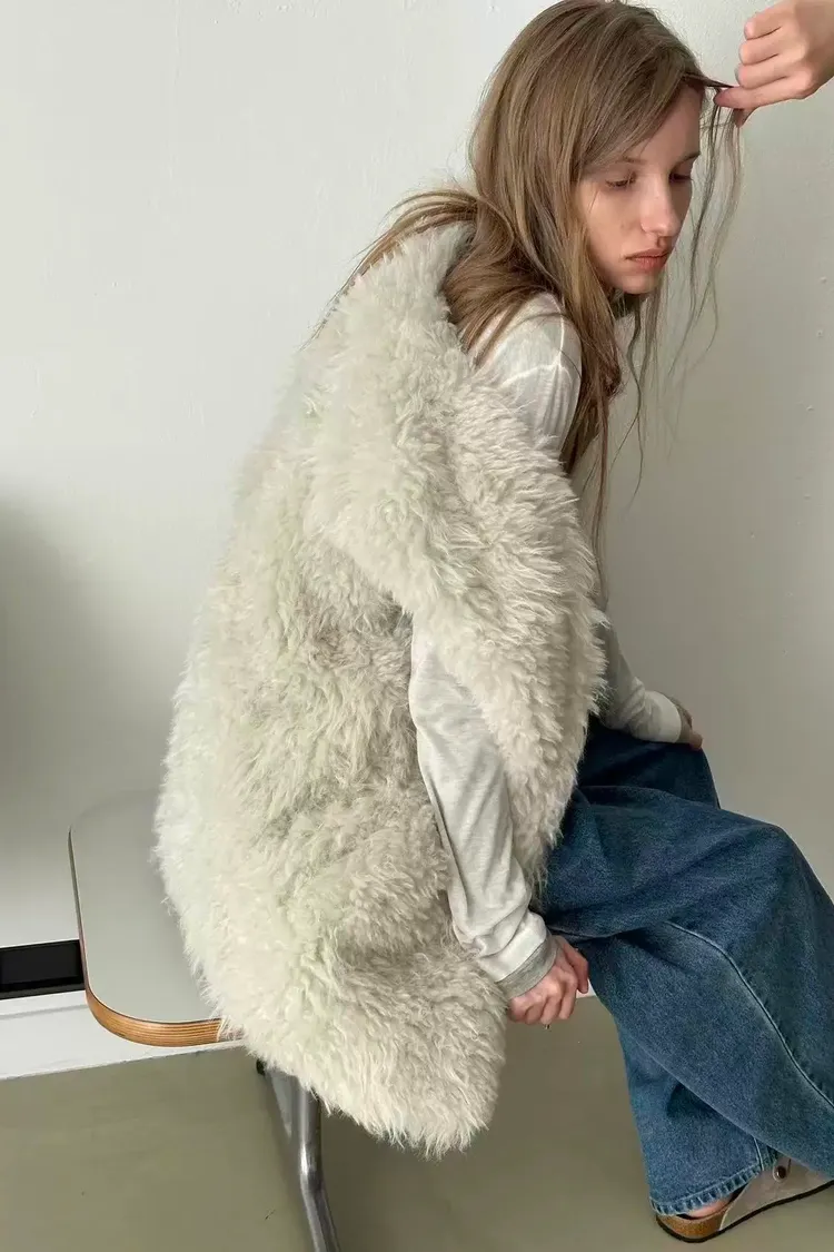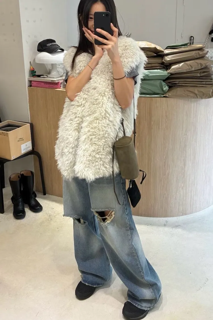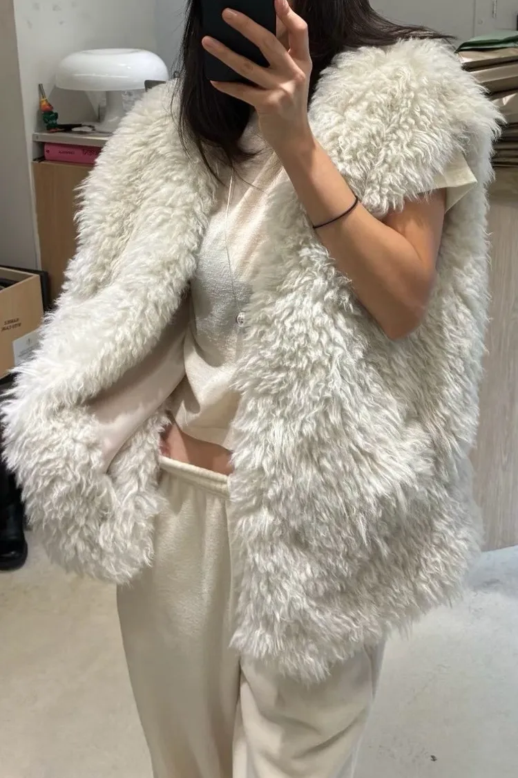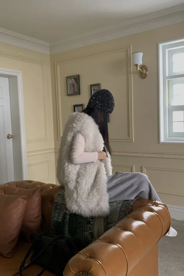 前幾年有款類似的毛背心,斷貨後一直有妞來問來找 還有妞想扒走艾蜜自留的XD 艾蜜找半天終於又找到這款不短能蓋臀,版型棒的小貴婦毛毛背心! 環保皮草面料、寬鬆蓋臀版型超修飾,S-XL妞都可以穿 手感很舒服~有內襯、有口袋 質感與可愛兼具