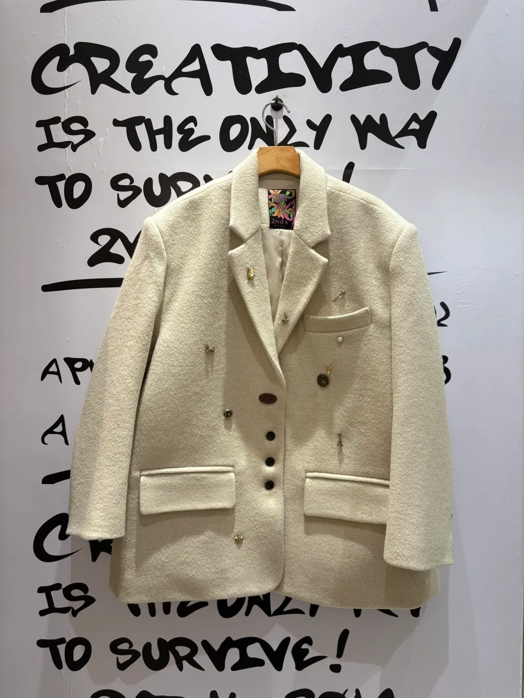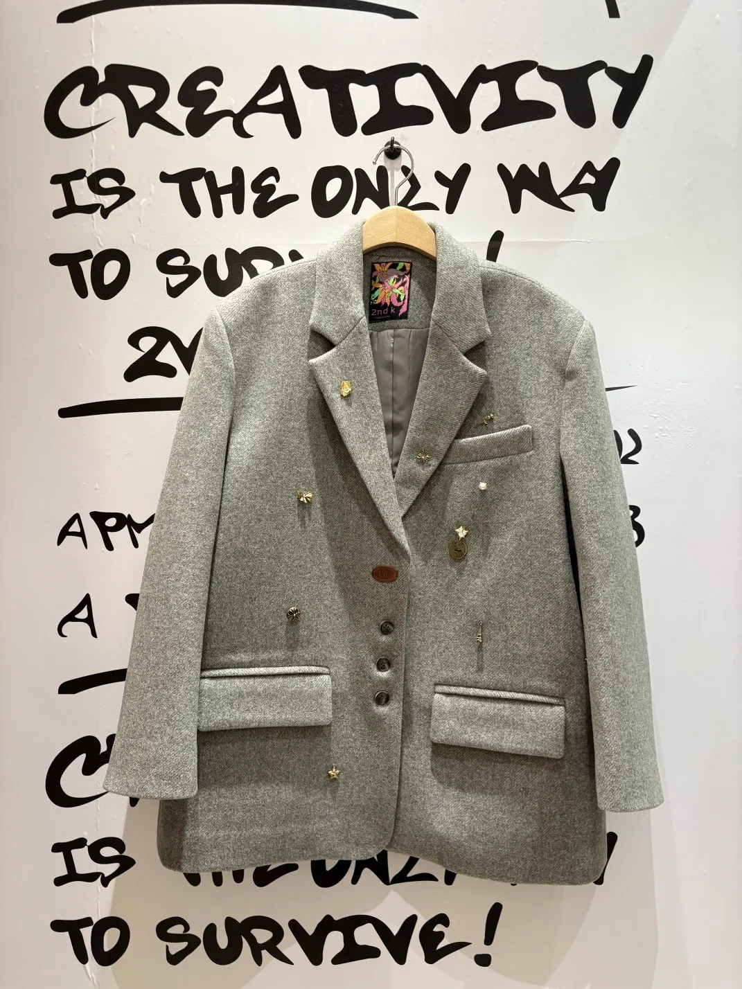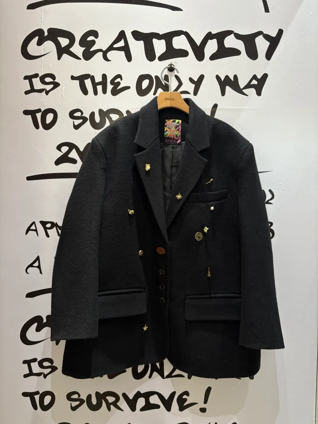 外套上車縫著各種社長歐膩精選的金屬小吊飾